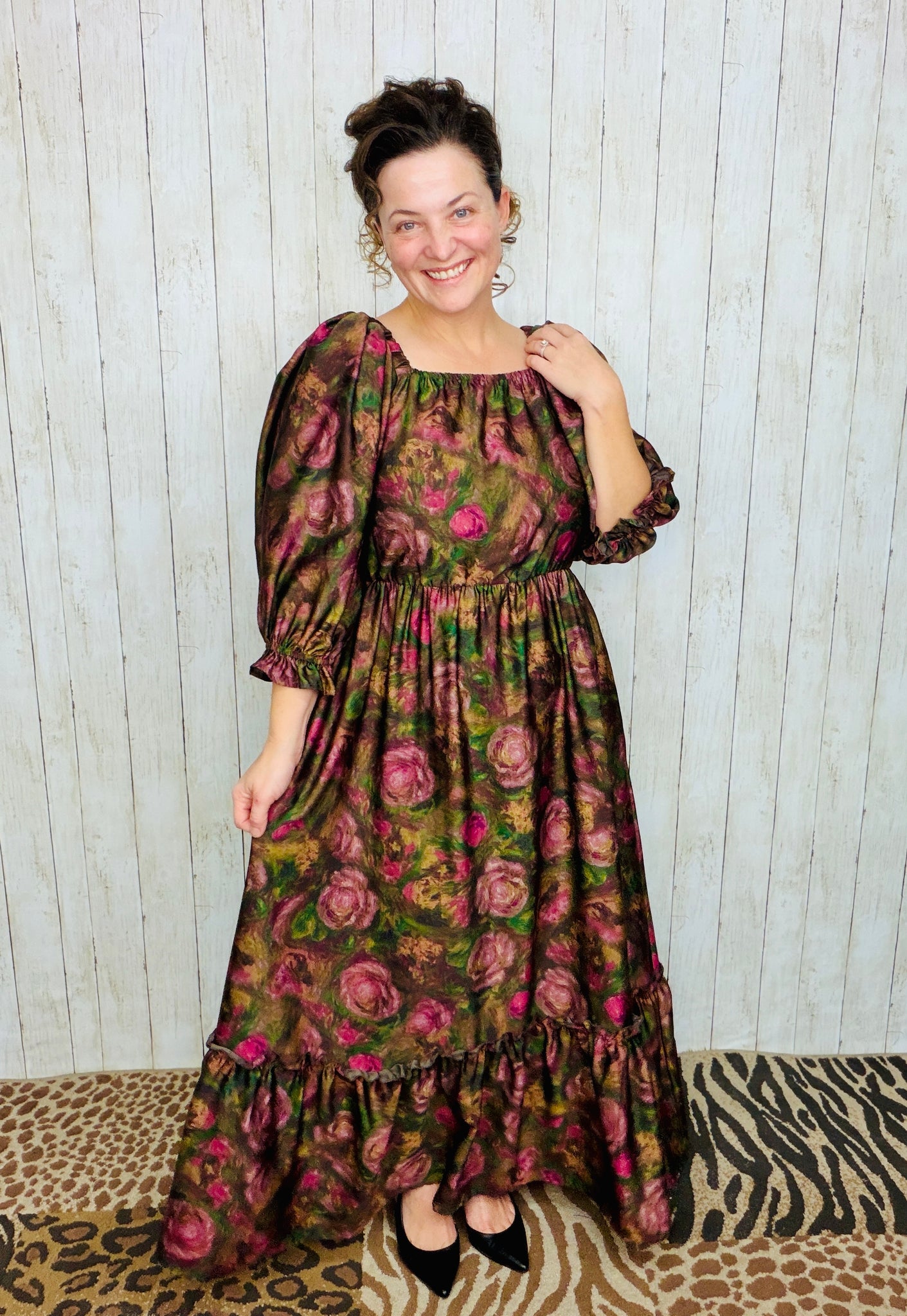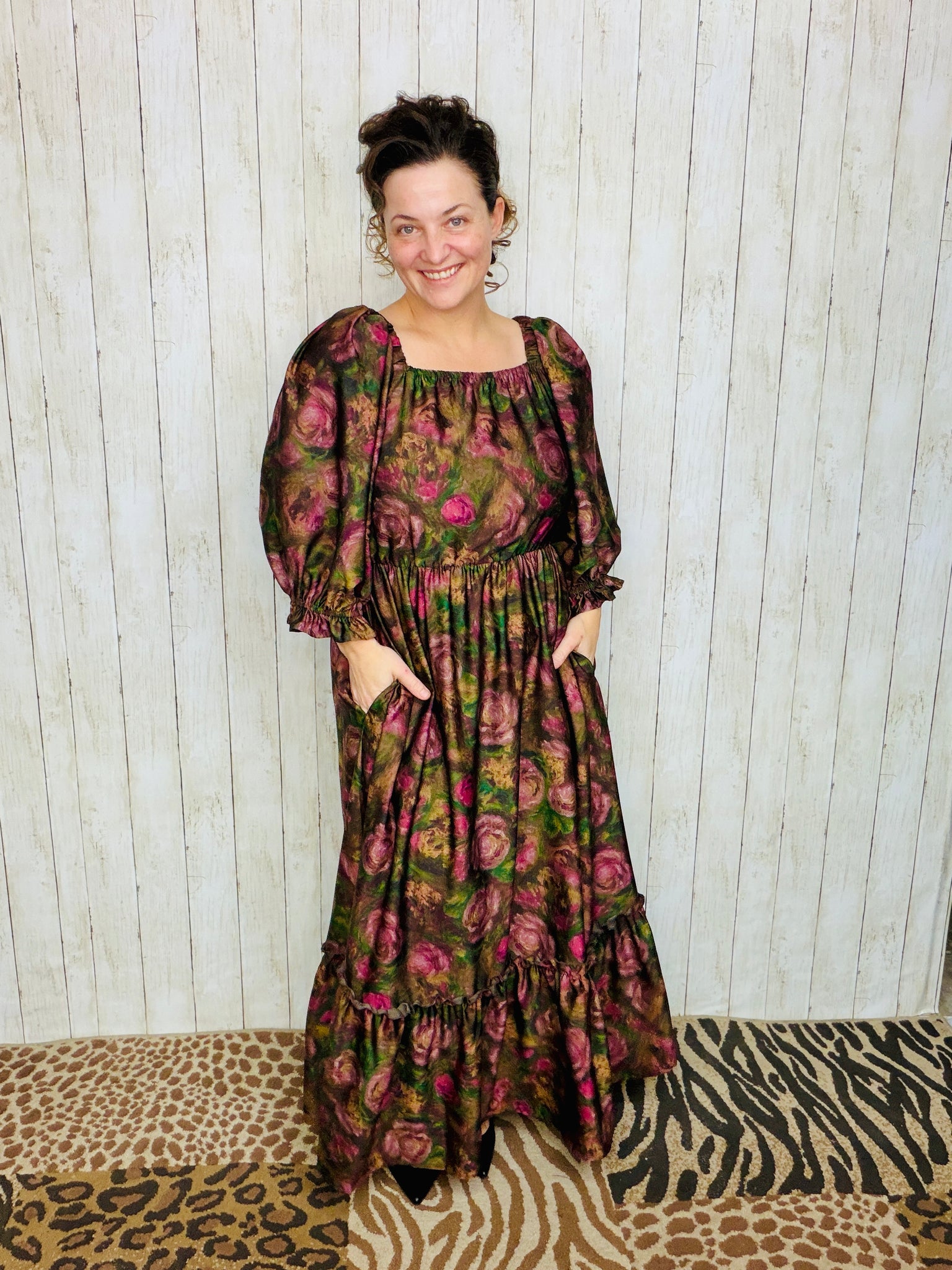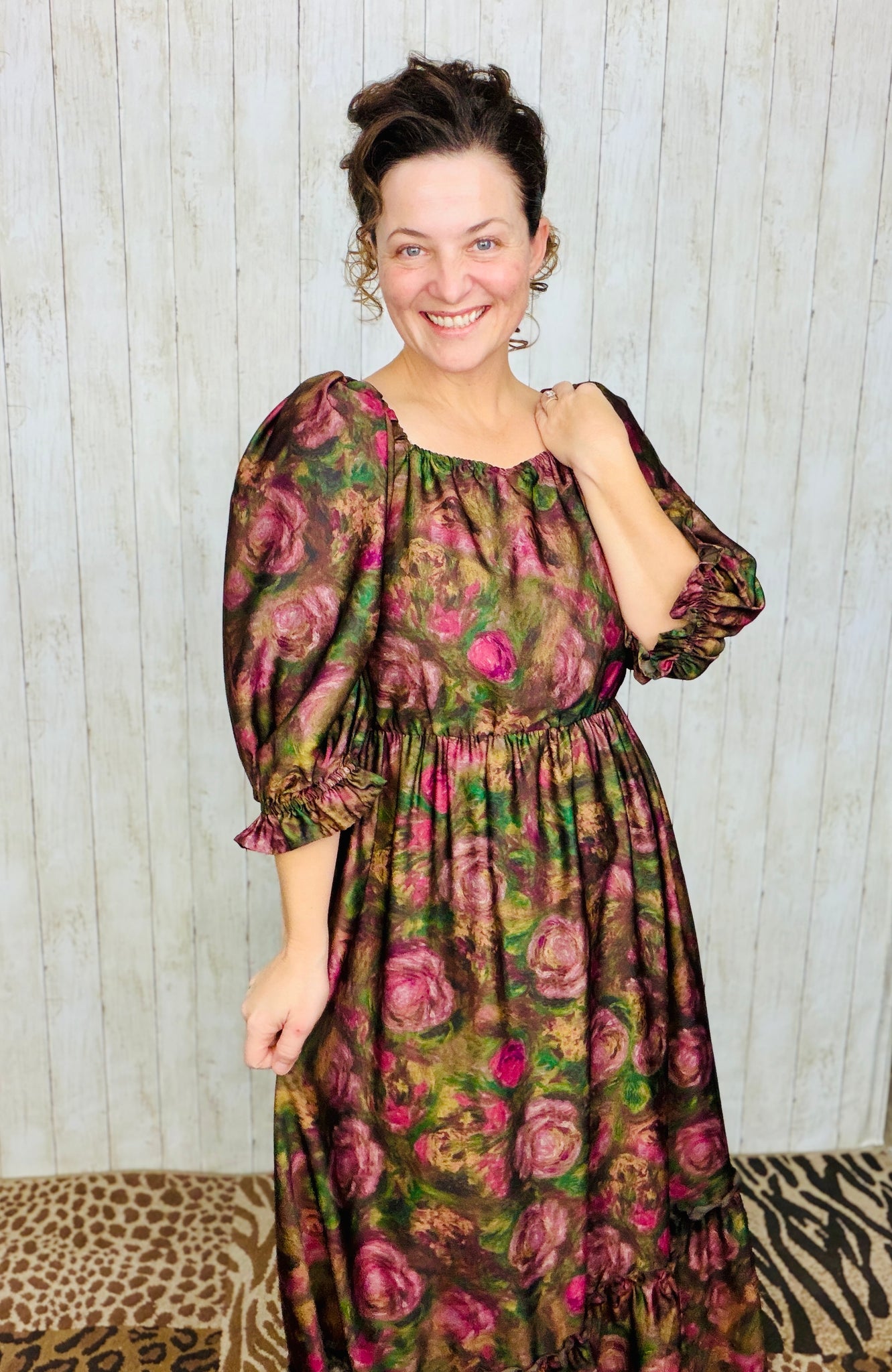 Elevate your wardrobe with this elegant midi dress featuring a refined square neckline and dramatic puff sleeves. The flowing tiered skirt creates graceful movement, while the silky fabric offers a luxurious drape that complements any setting. Perfect for occasions where understated sophistication is key.