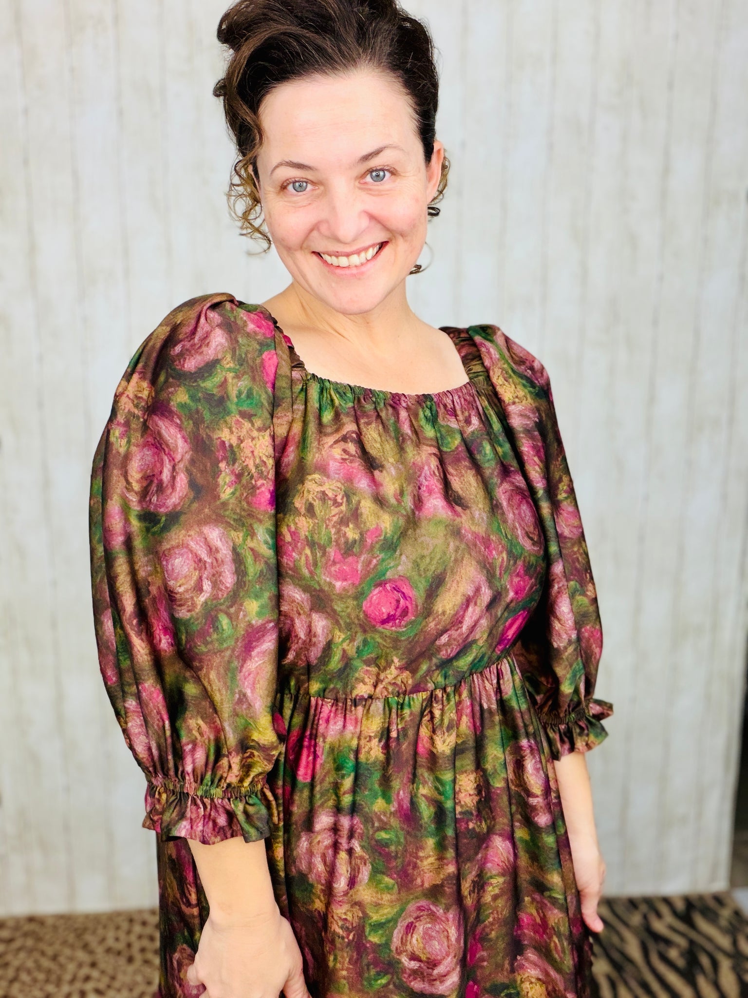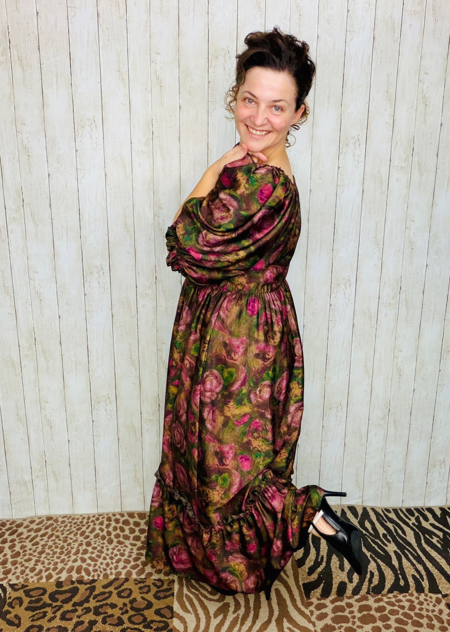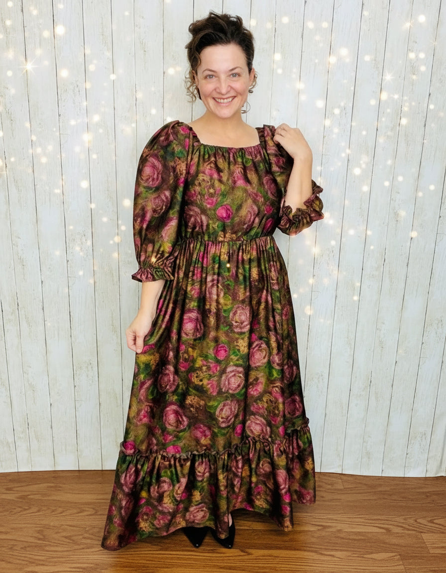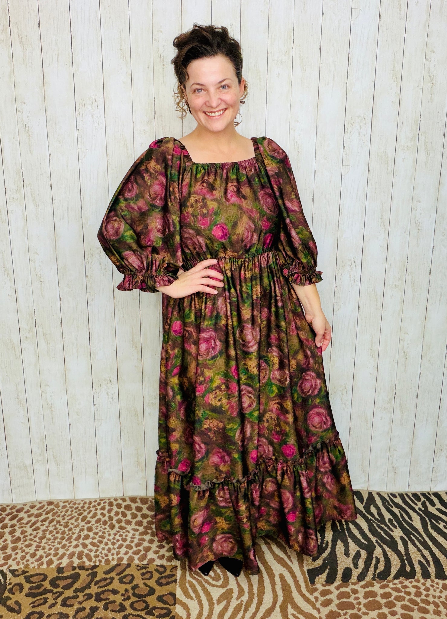 Elevate your wardrobe with this elegant midi dress featuring a refined square neckline and dramatic puff sleeves. The flowing tiered skirt creates graceful movement, while the silky fabric offers a luxurious drape that complements any setting. Perfect for occasions where understated sophistication is key.
