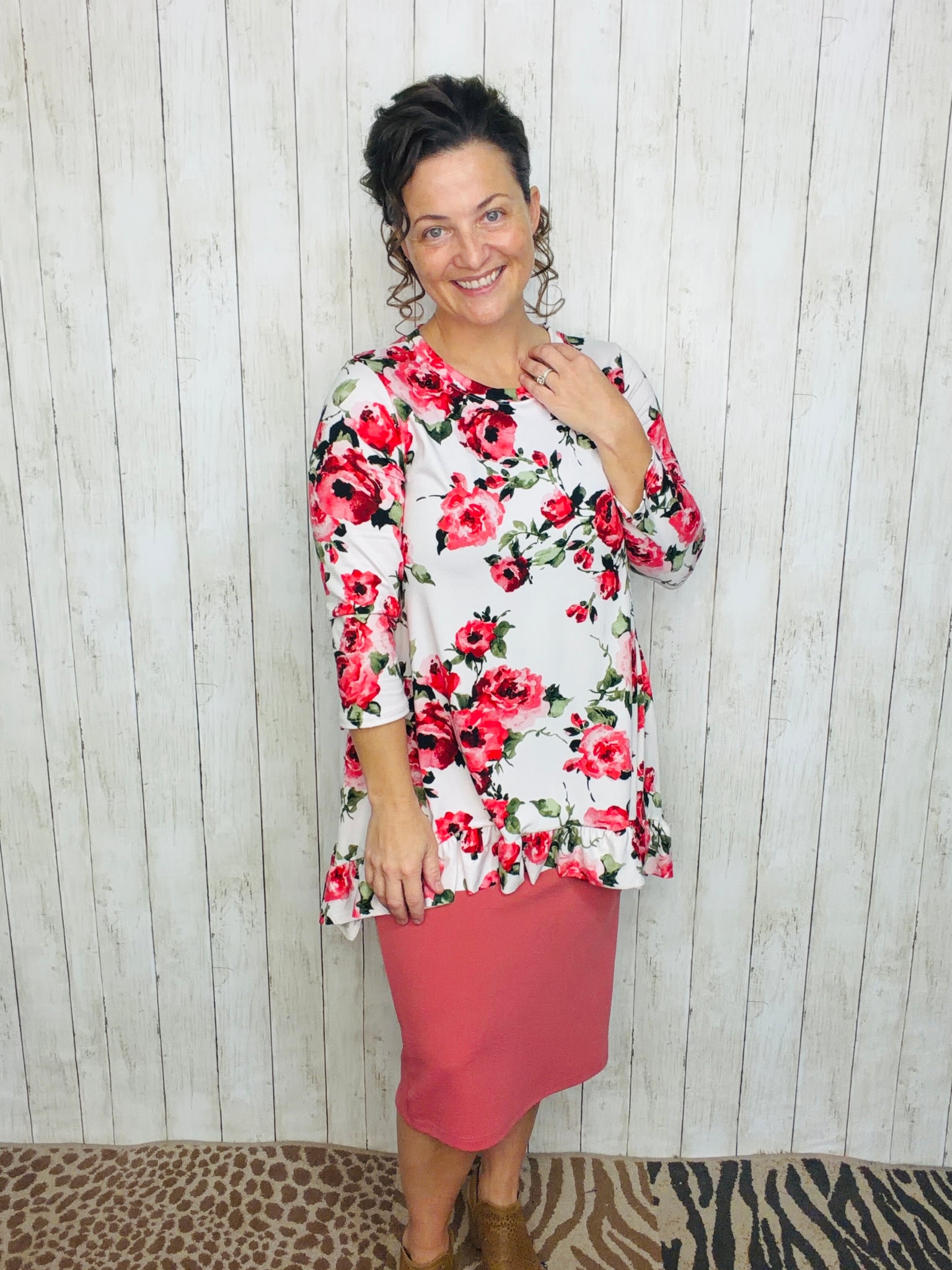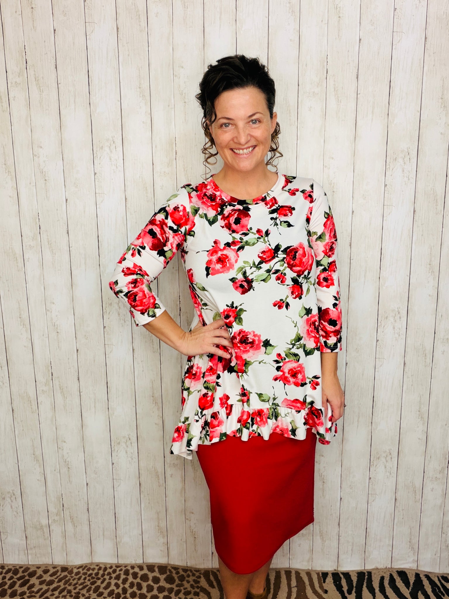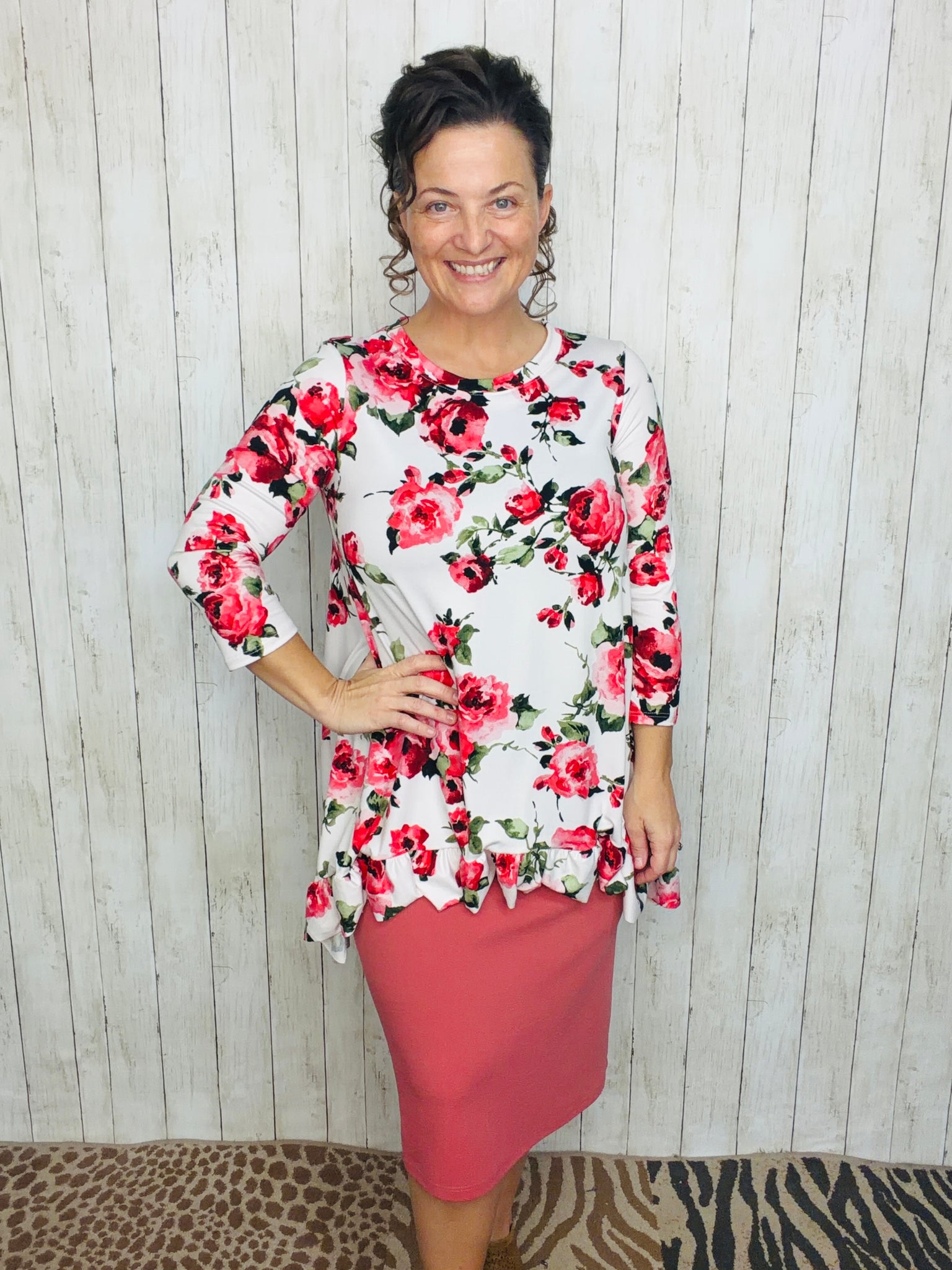 Samantha Ruffle High Low Tunic-Ivory Rose