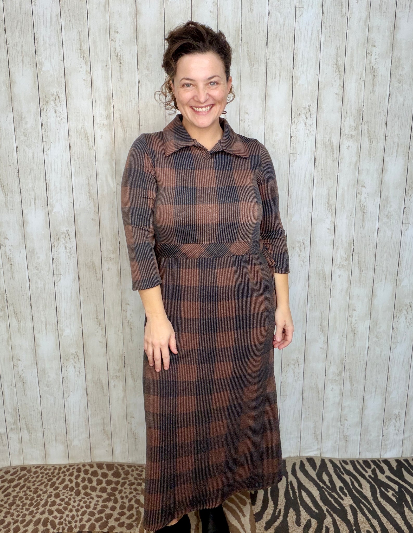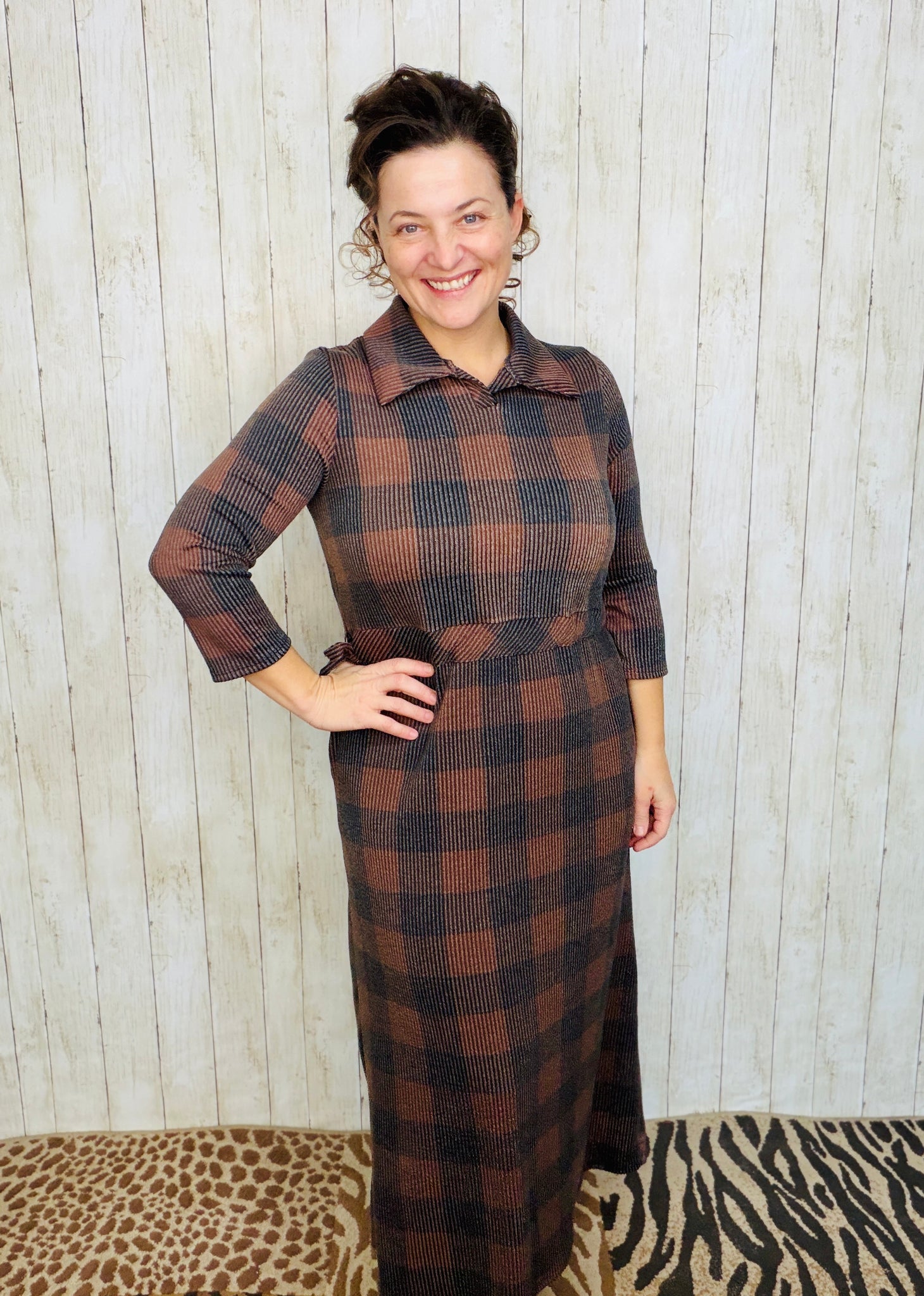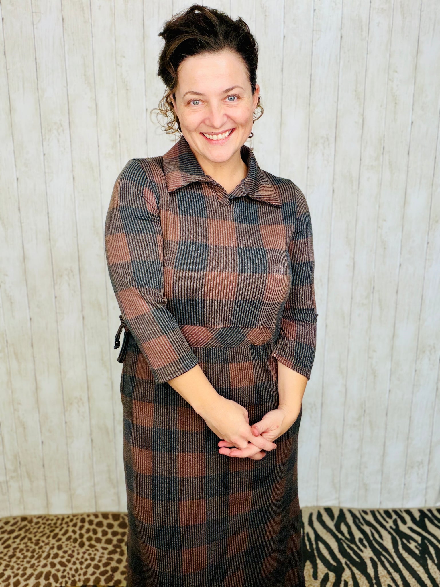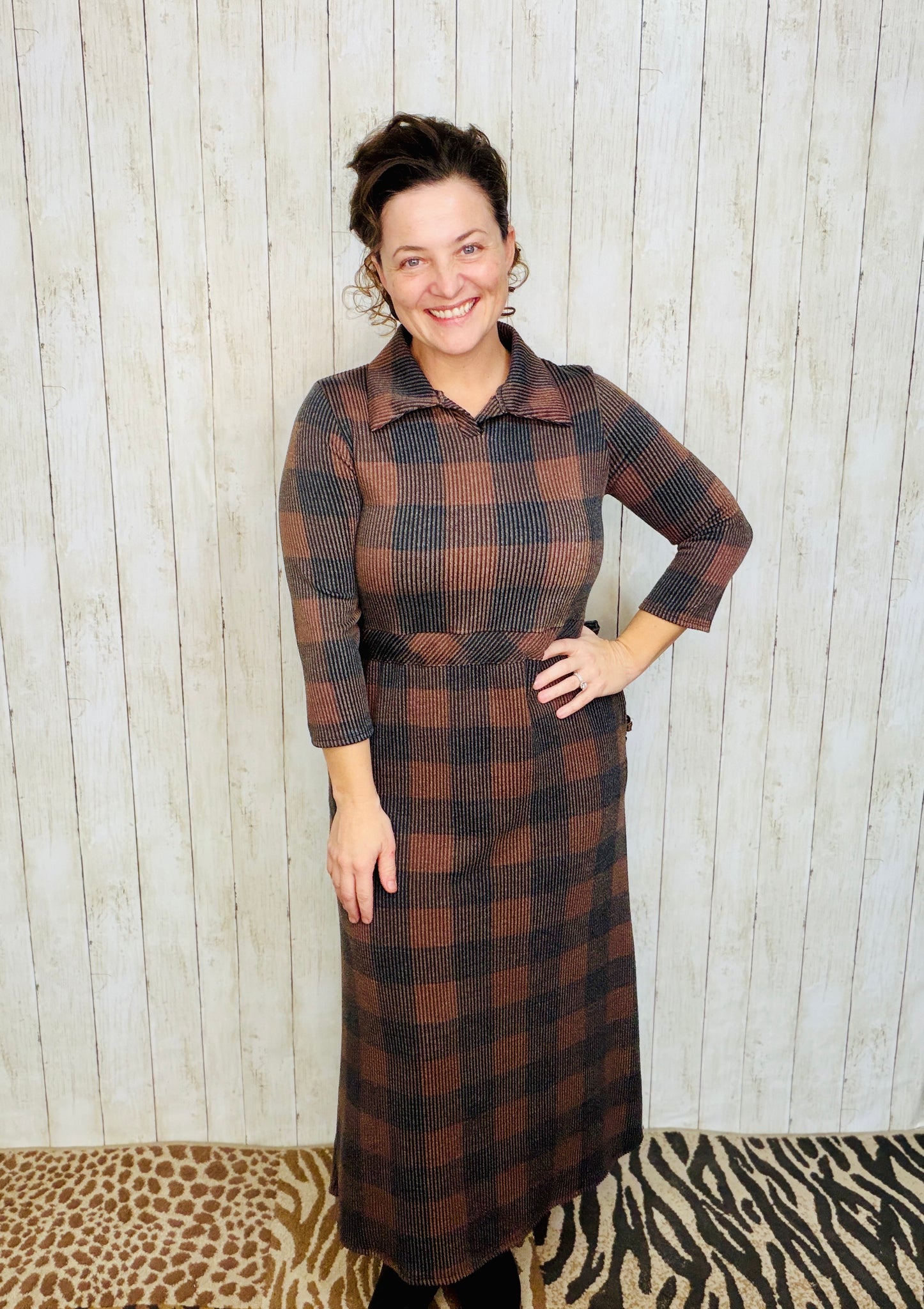 Effortlessly chic and undeniably comfortable, this buffalo plaid lounge dress combines timeless style with everyday practicality. The classic polo collar adds a polished touch, while strategically placed side pockets keep your essentials within reach. Adjustable waist ties let you customize the fit to your preference, creating a flattering silhouette that moves with you. Crafted from soft, breathable fabric, this relaxed dress transitions seamlessly from lounging at home to casual outings. Whether you're running errands or settling in for the day, this versatile piece delivers the perfect balance of style and comfort that makes getting dressed feel effortless.