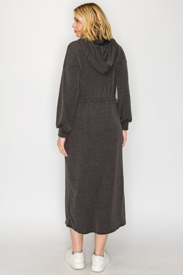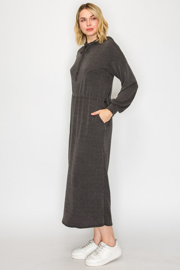Cozy On Up Ribbed Lounge Dress- Charcoal Black