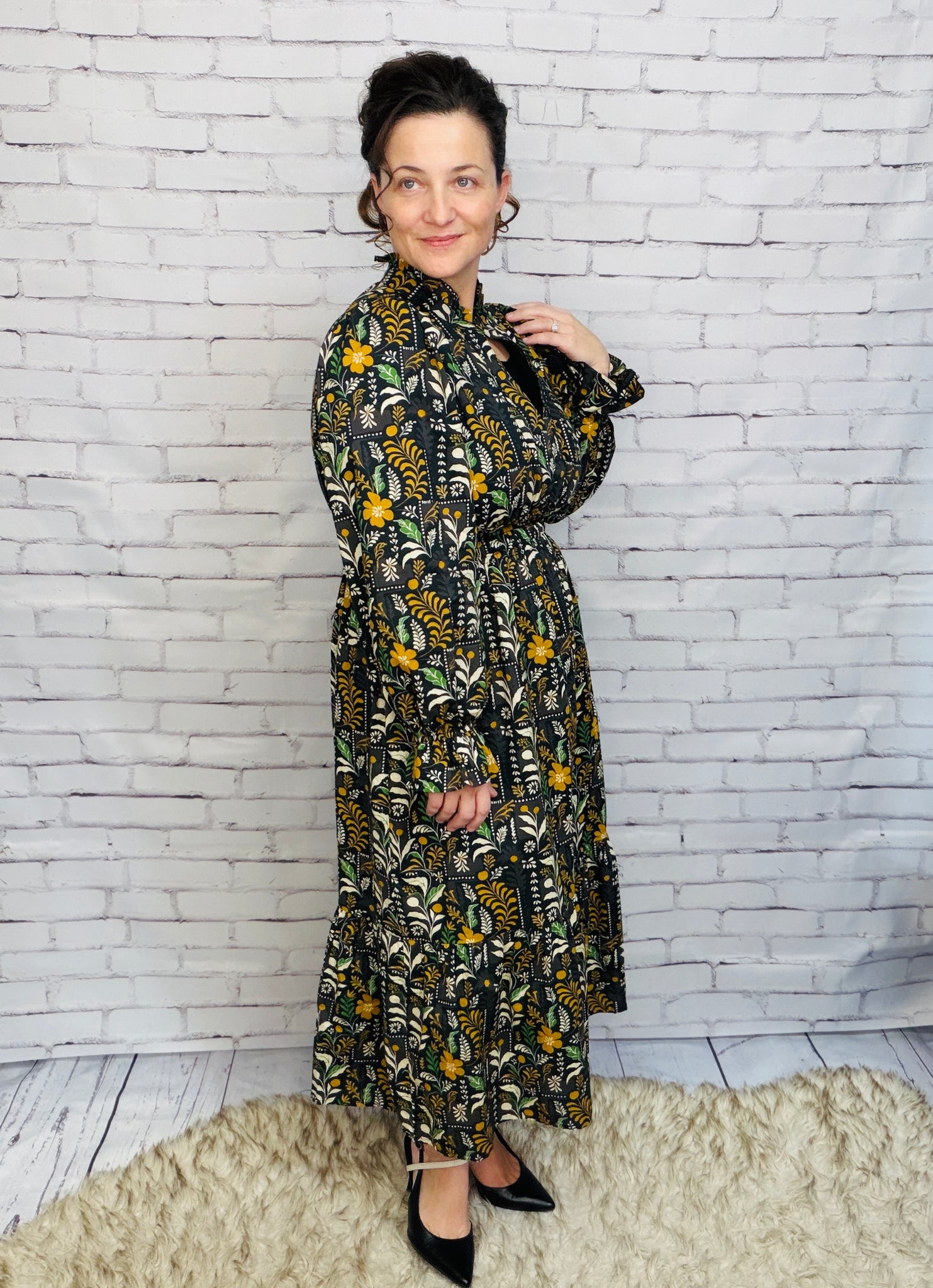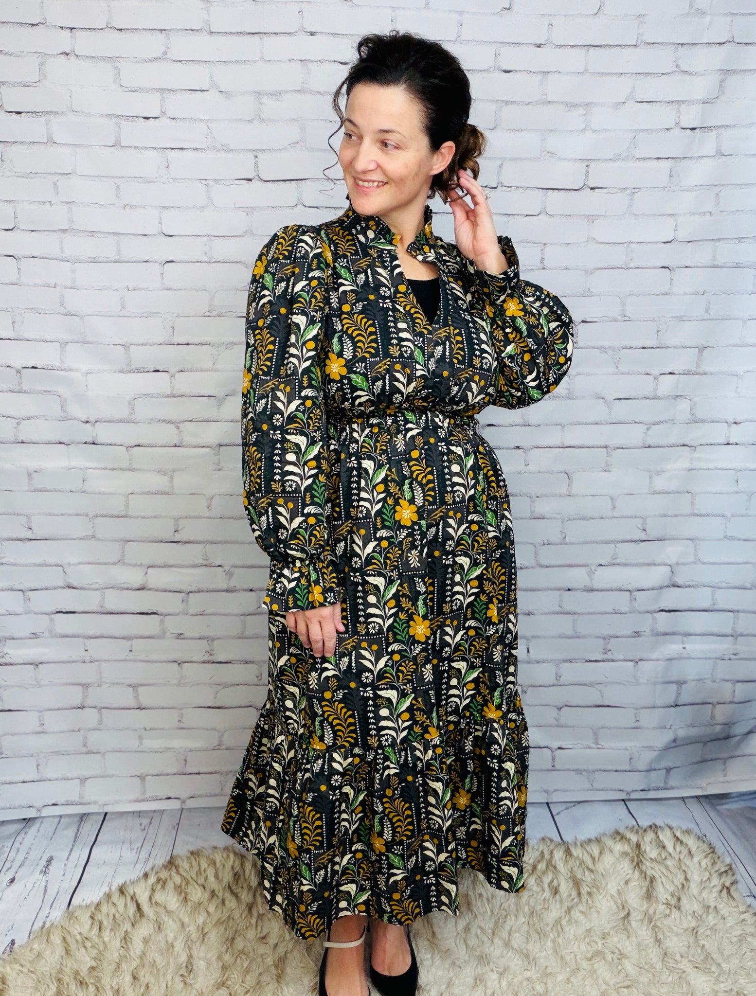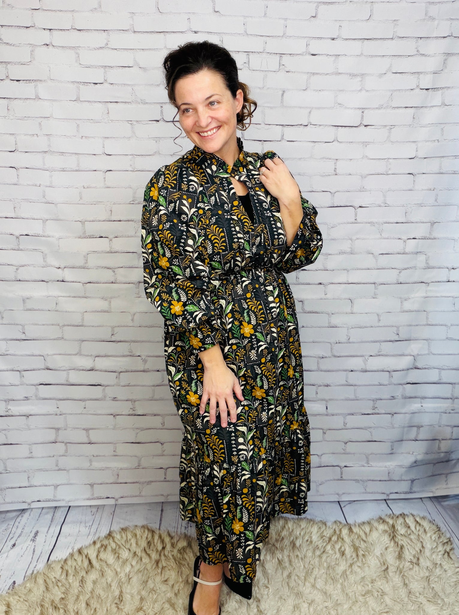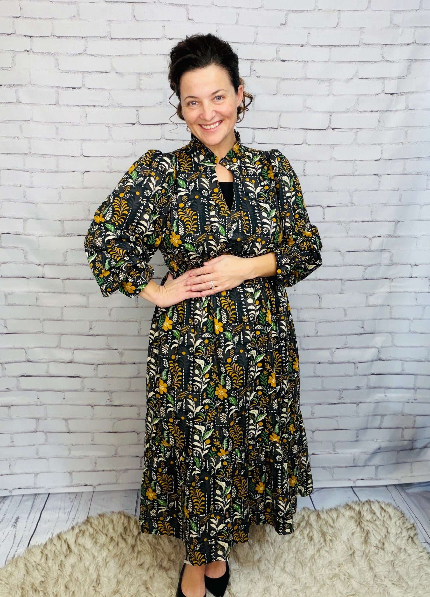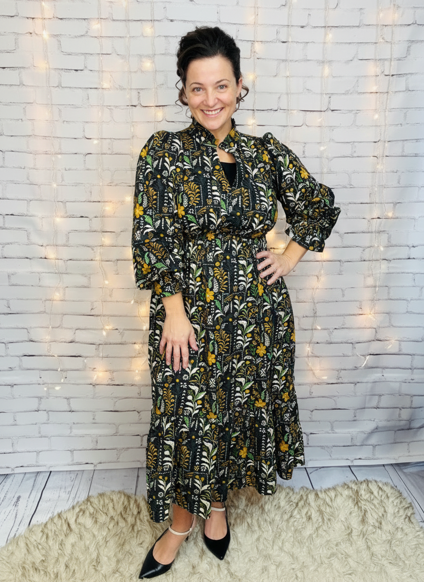 Floral Midi Dress with Smocked Waist