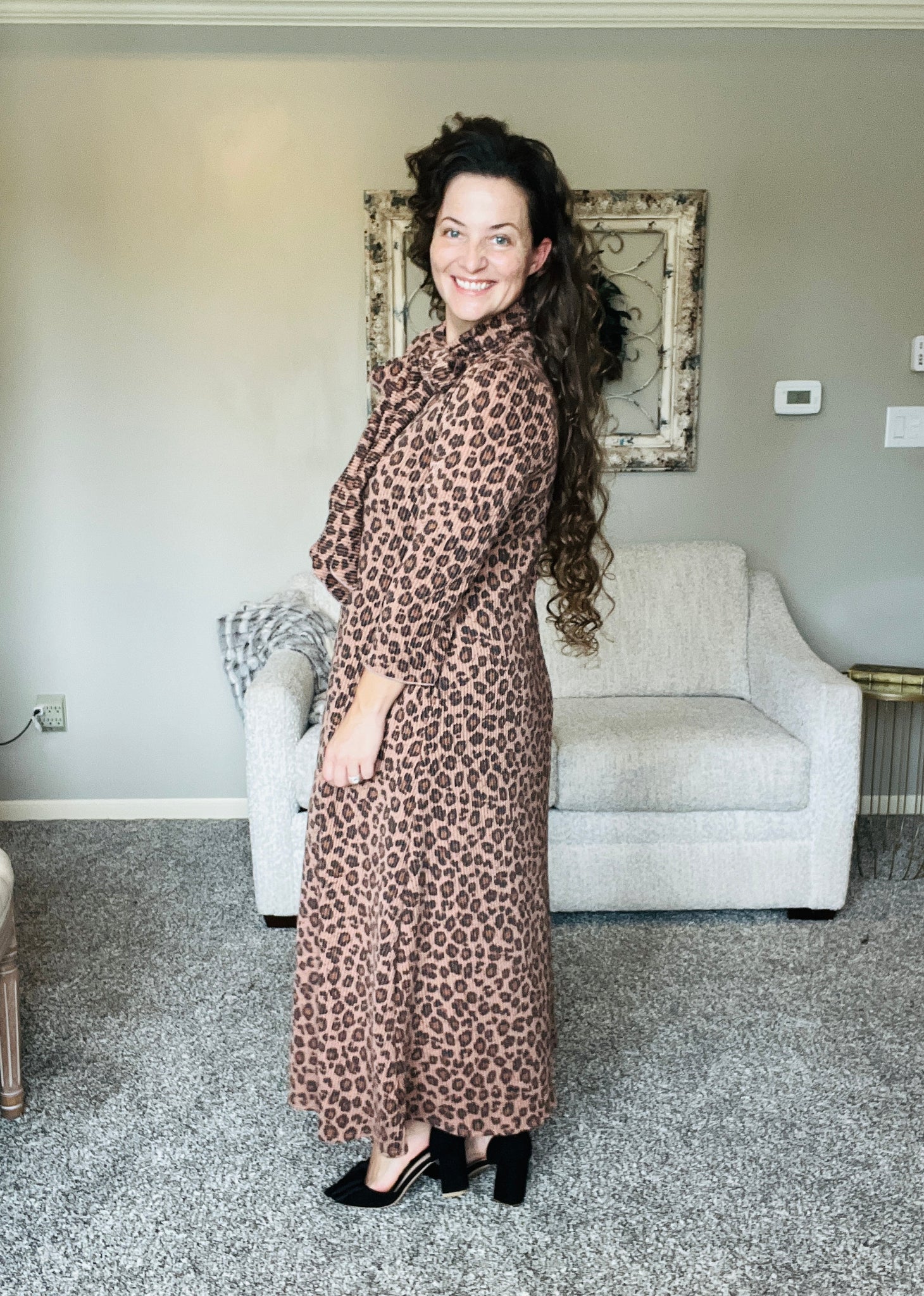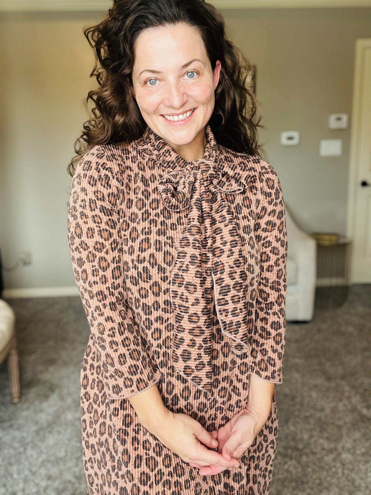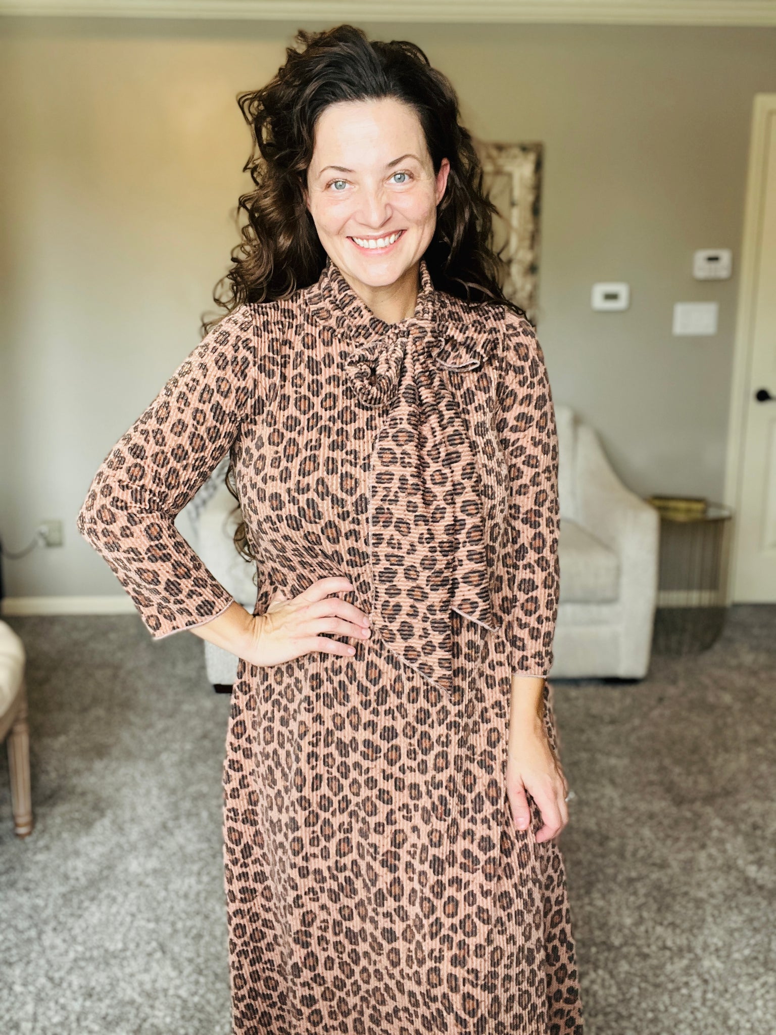 This adorable dress features ribbed material, along with 3/4 sleeves and an neckline with a bow. Made of polyester and spandex ribbed material blend, this dress offers a comfortable fit while making a trendy statement.