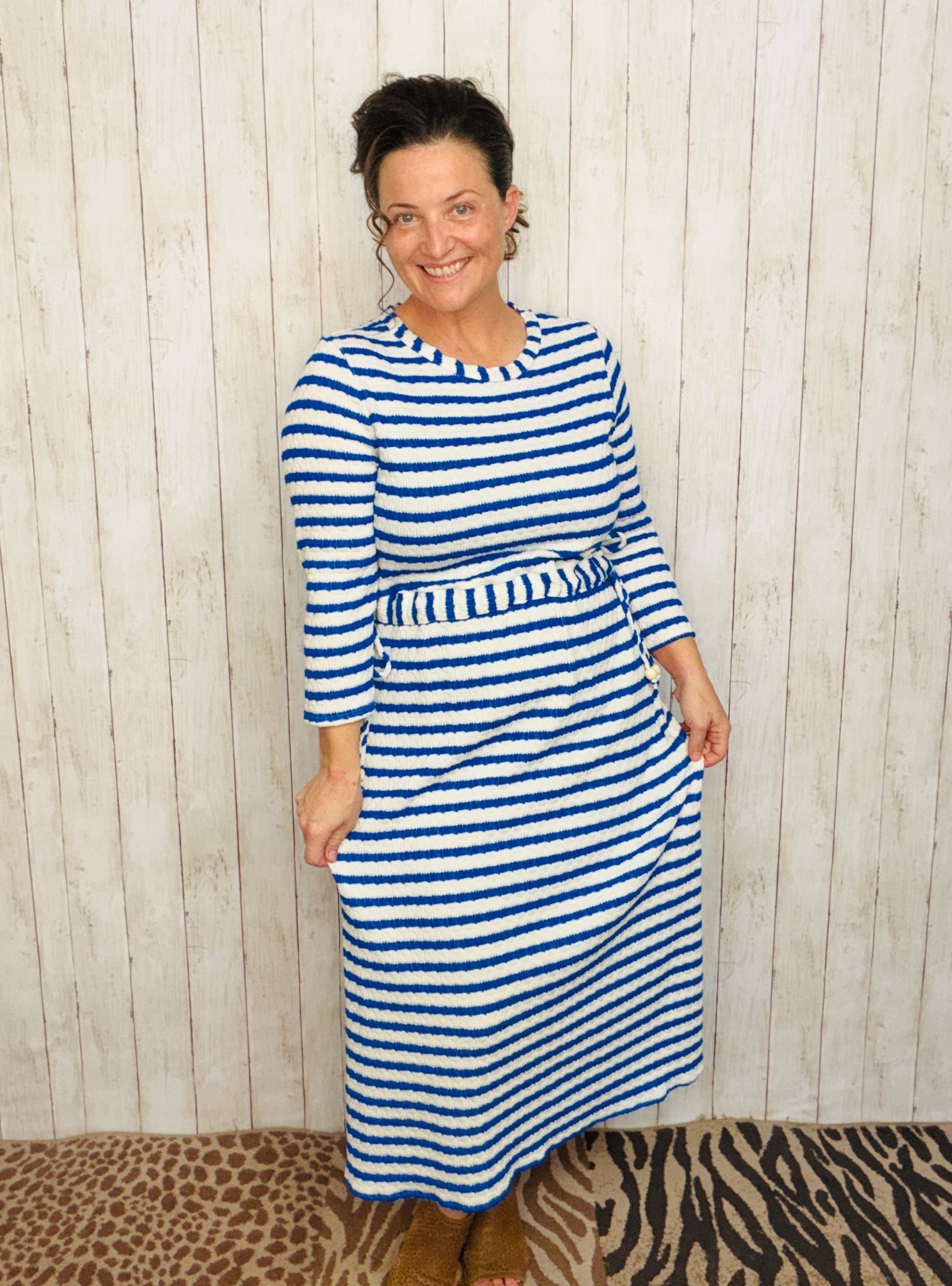 Experience comfort and style with the Ribbed Lounge Dress. Crafted from a stretchy blend of polyester, rayon, and spandex, this dress offers a flattering fit with its ribbed texture and adjustable drawstring waist. The 3/4 length sleeves add a touch of elegance, making it perfect for relaxing at home or stepping out with confidence. Versatile and effortlessly chic, this dress adapts to your day with ease.
