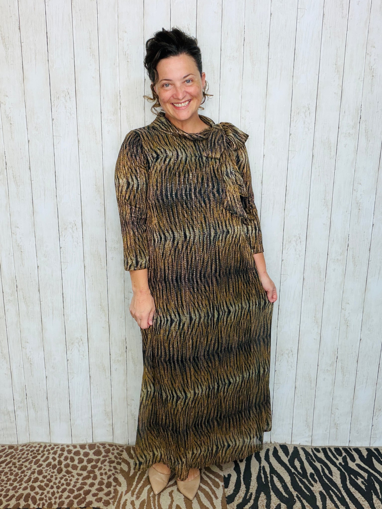 Animal Print & Sequin Overlay Dress