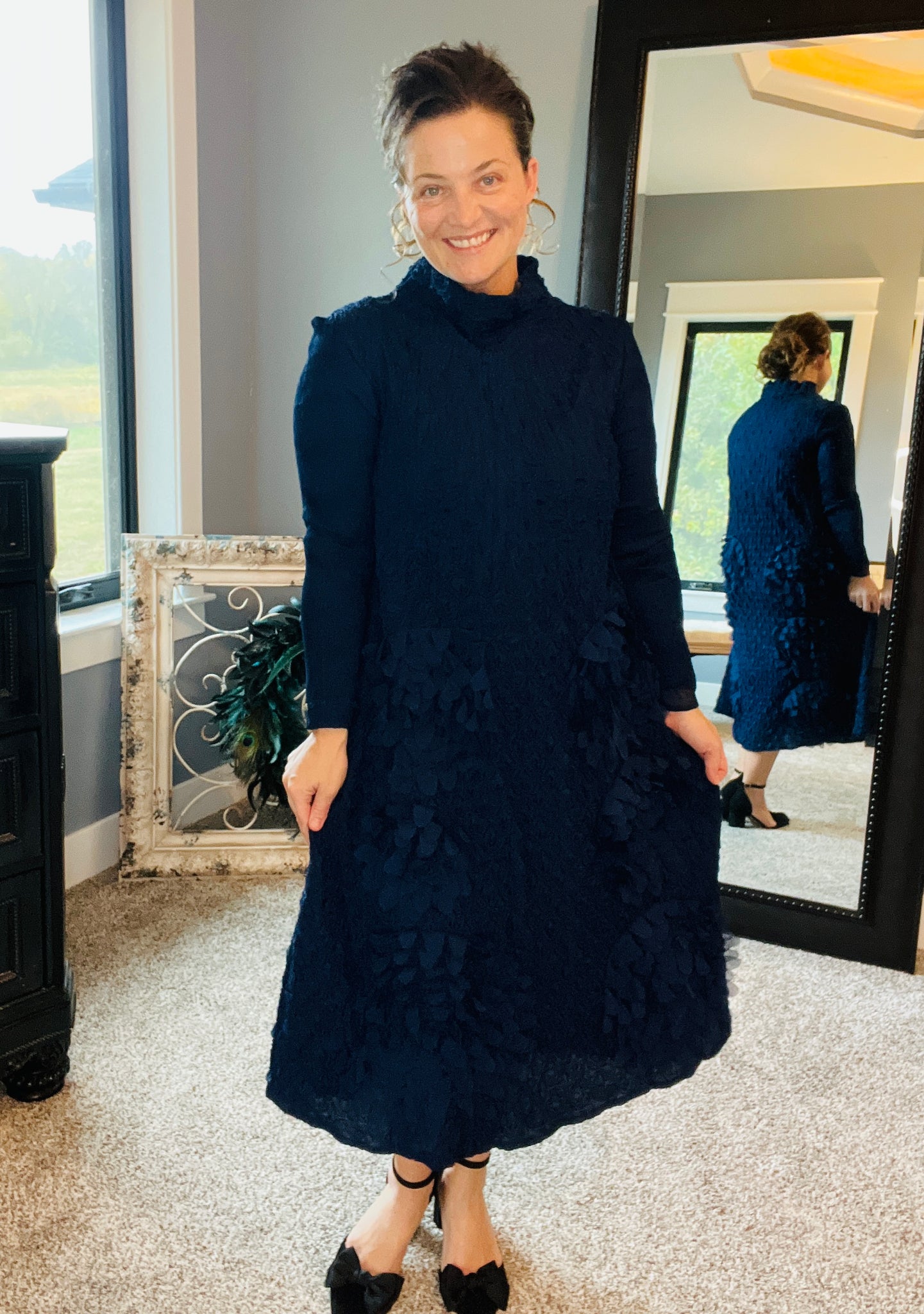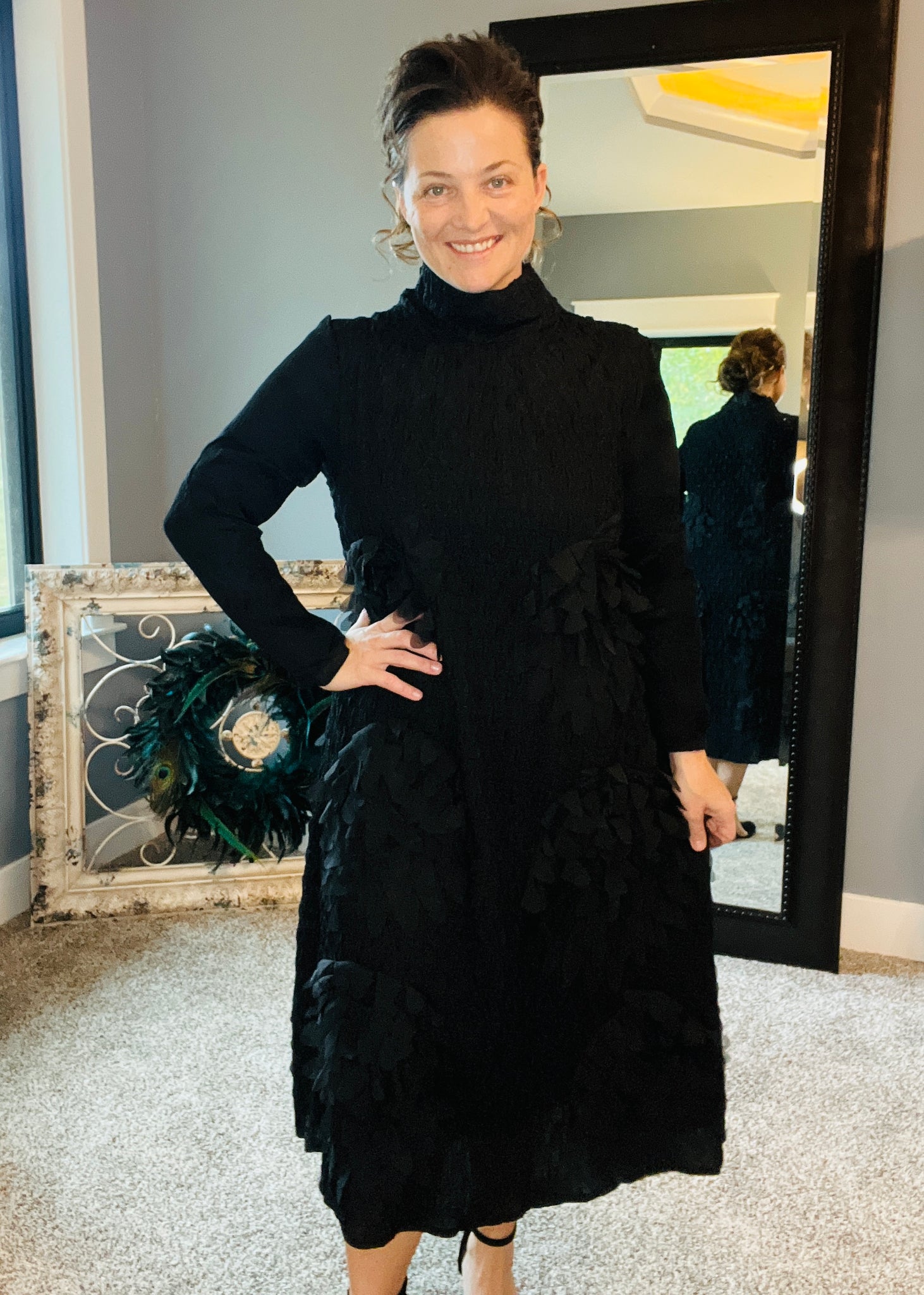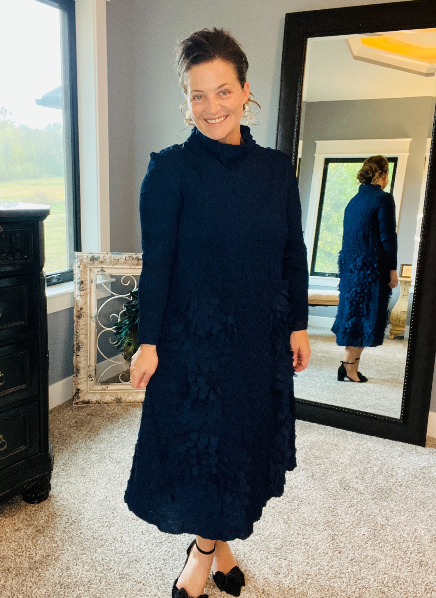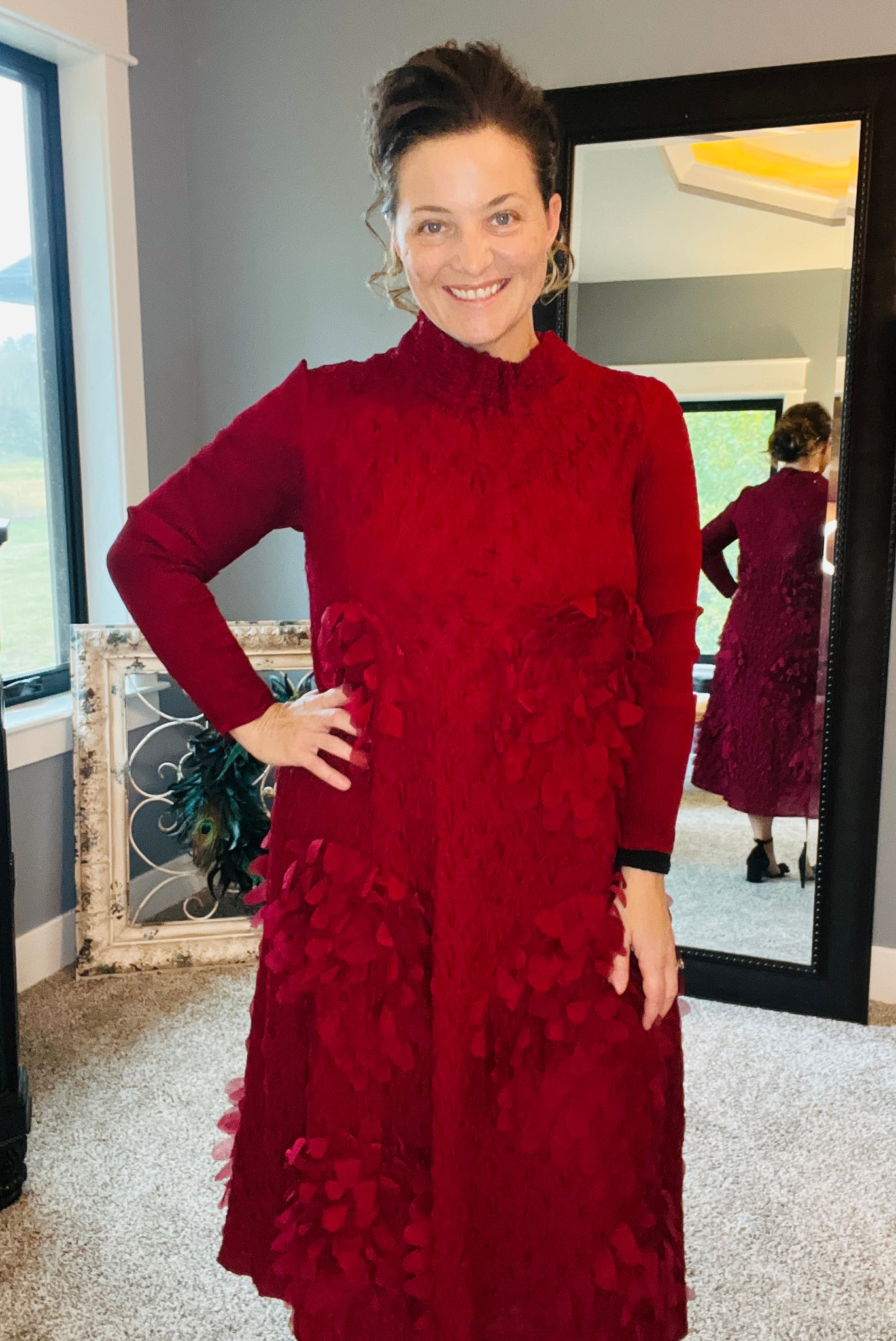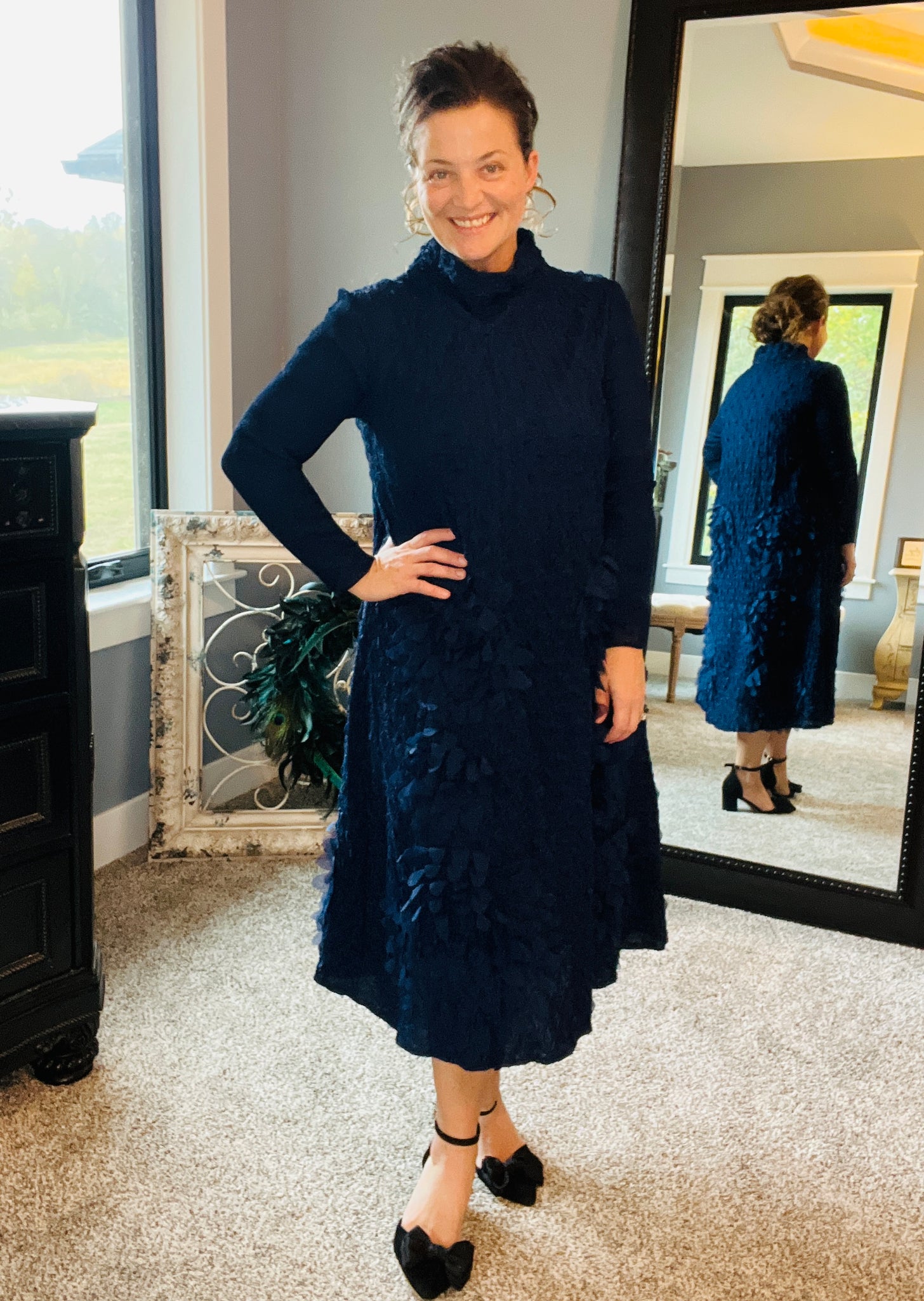 Elevate your wardrobe with our newest classy one size dress!. This dress exudes class with its long sleeves and high-quality stretchy polyester material. The flouncy textured material has lots of stretch from top to bottom, made from polyester and spandex, adds a touch of elegance. Embrace the gorgeous style and feel confident in its forgiving fit.