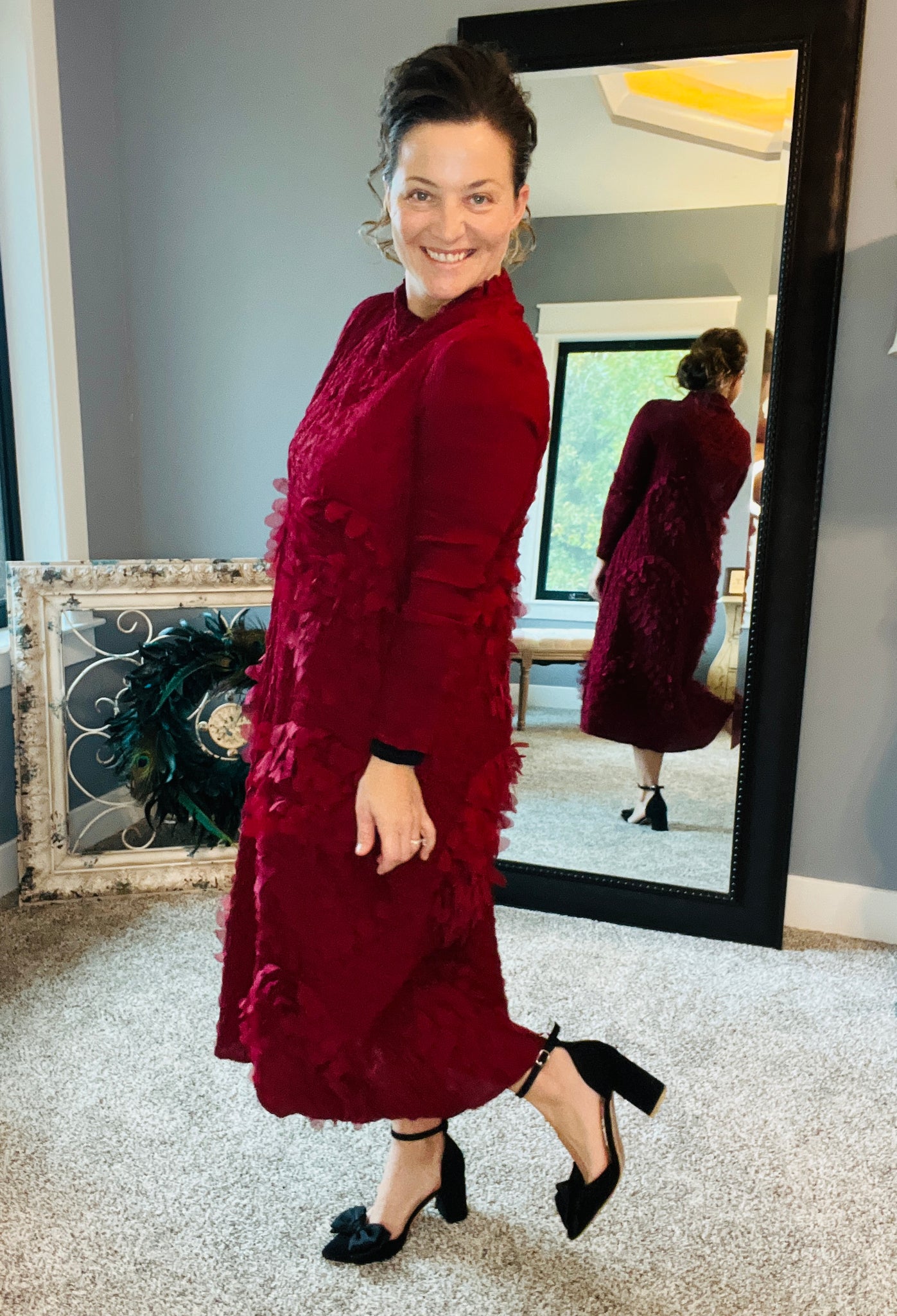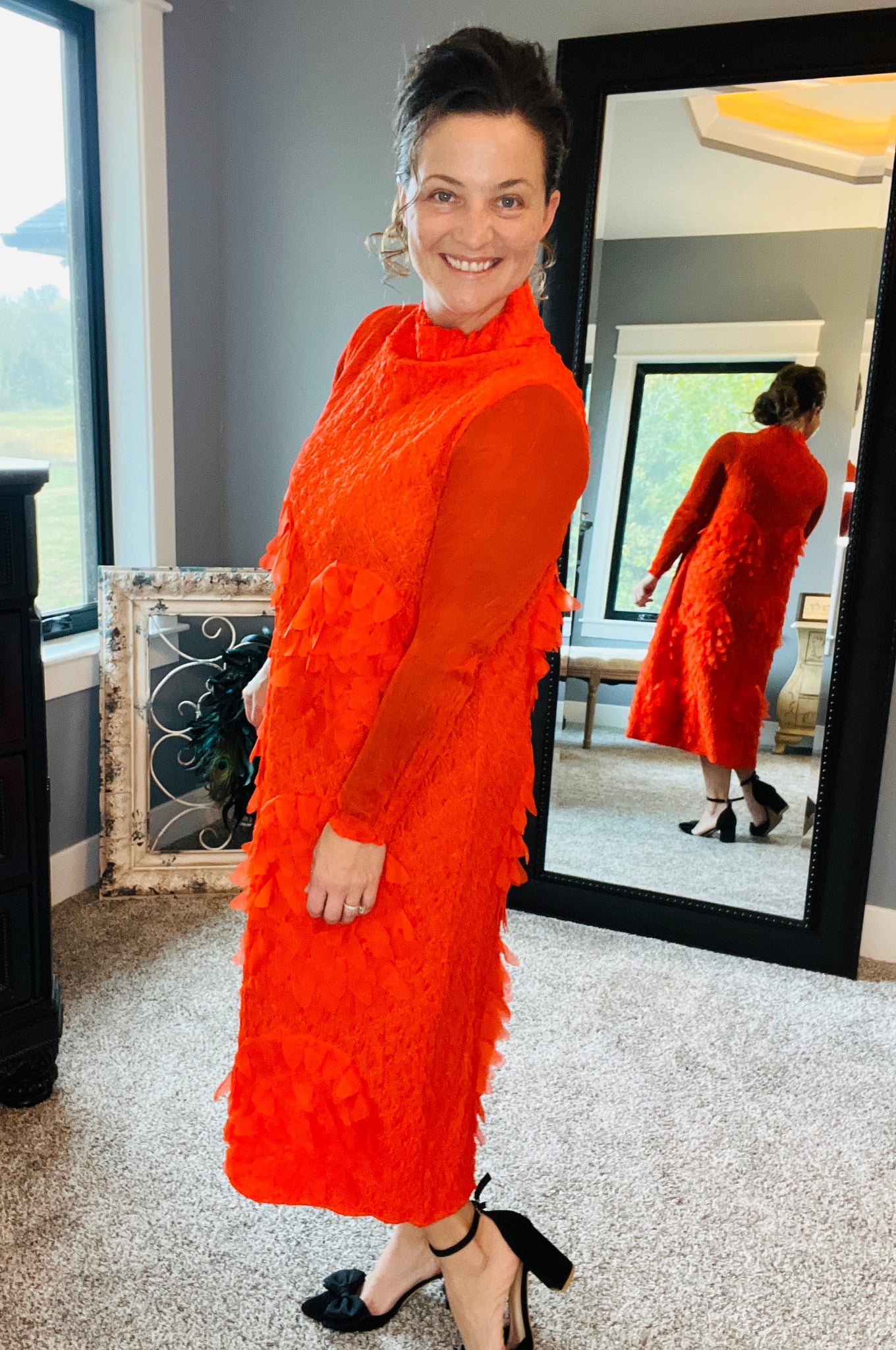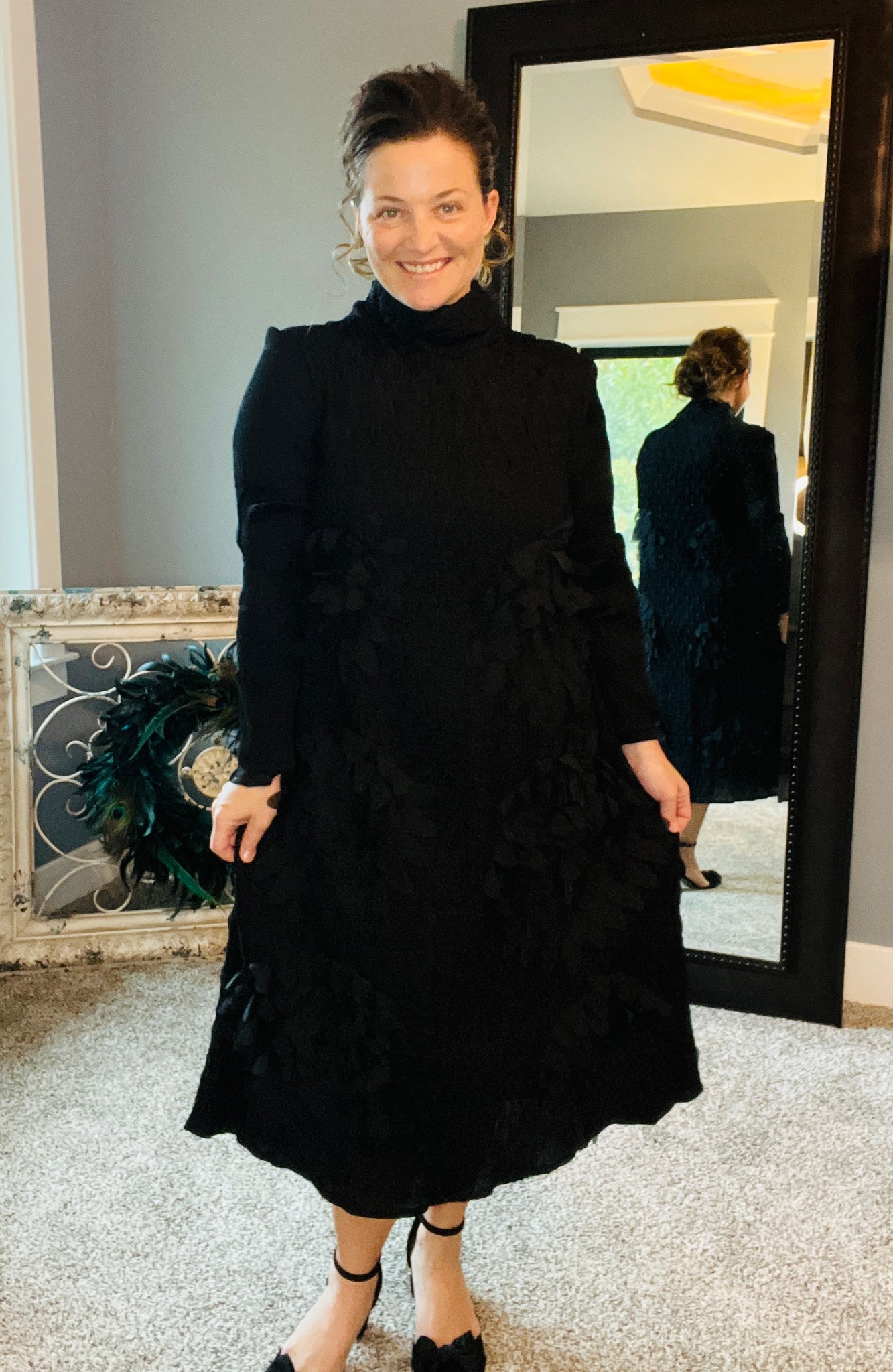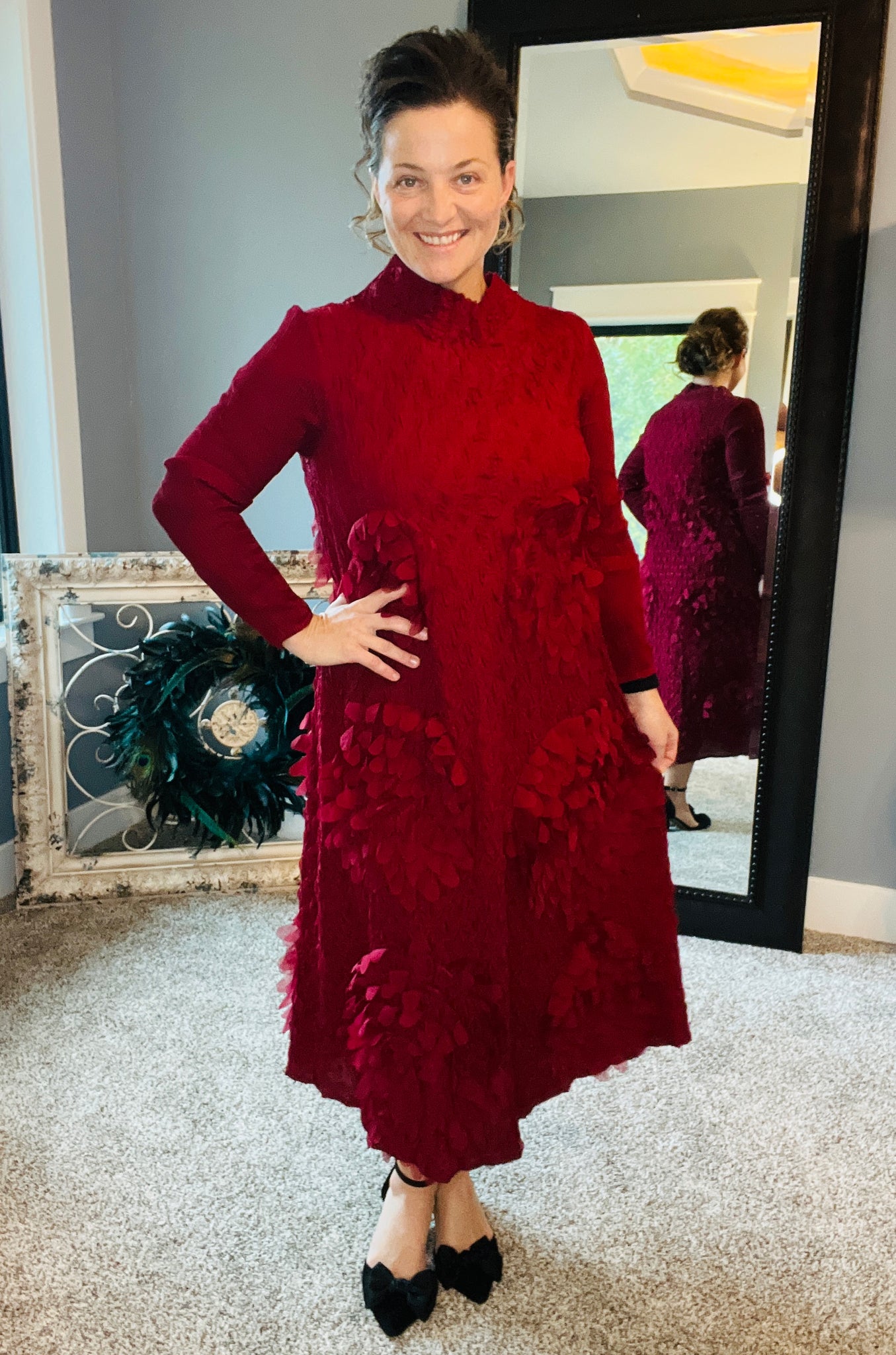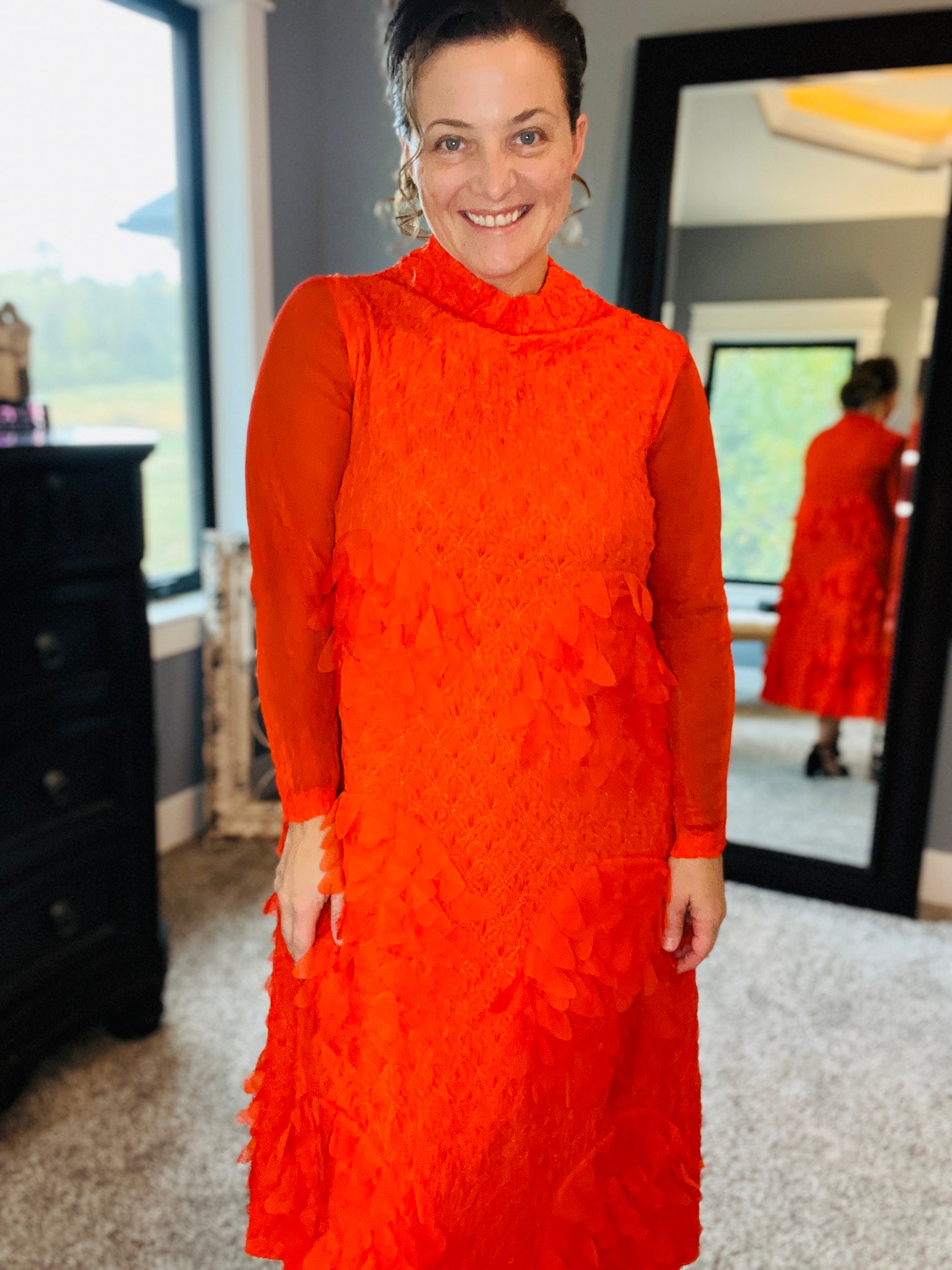 Elevate your wardrobe with our newest classy one size dress!. This dress exudes class with its long sleeves and high-quality stretchy polyester material. The flouncy textured material has lots of stretch from top to bottom, made from polyester and spandex, adds a touch of elegance. Embrace the gorgeous style and feel confident in its forgiving fit.