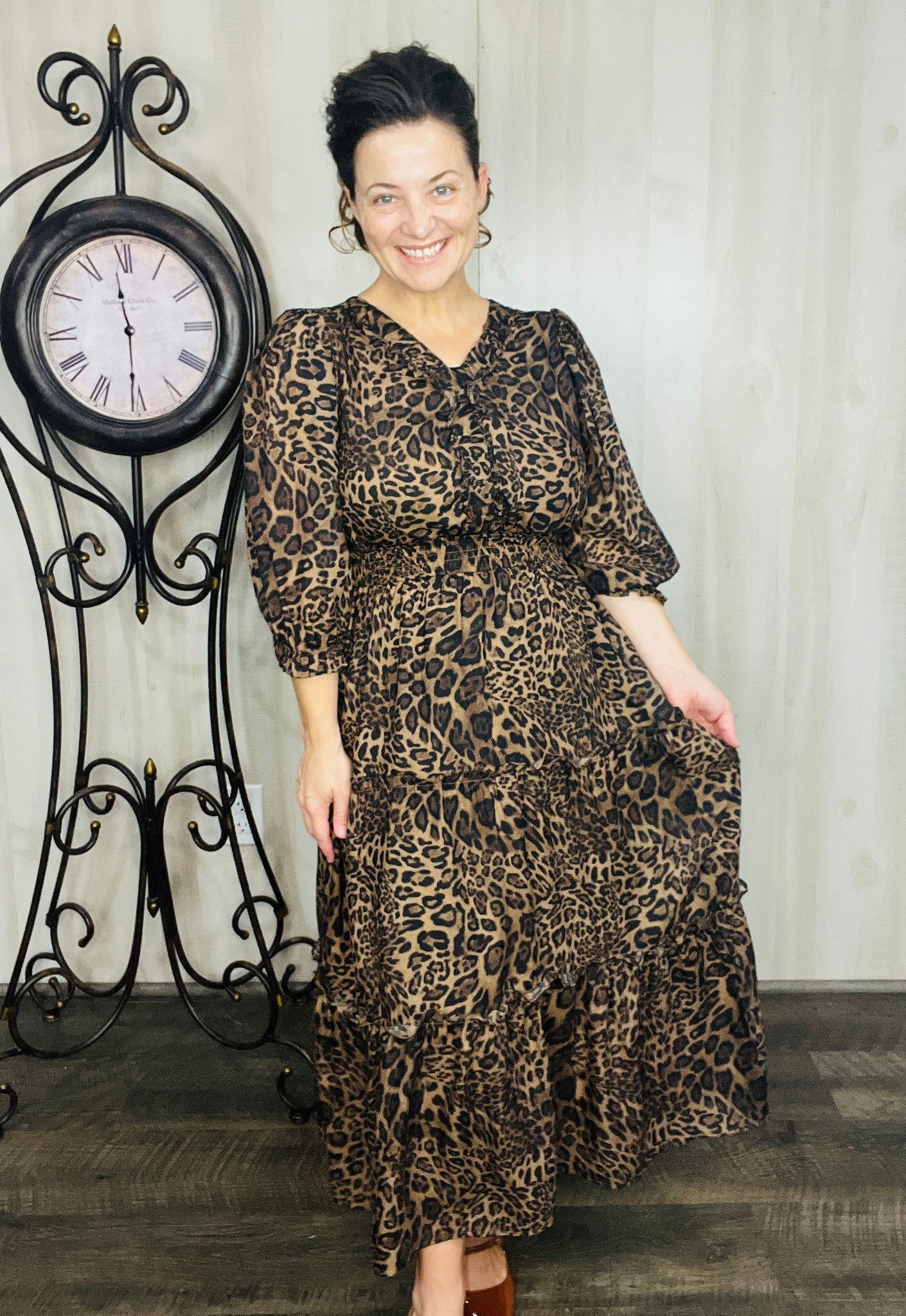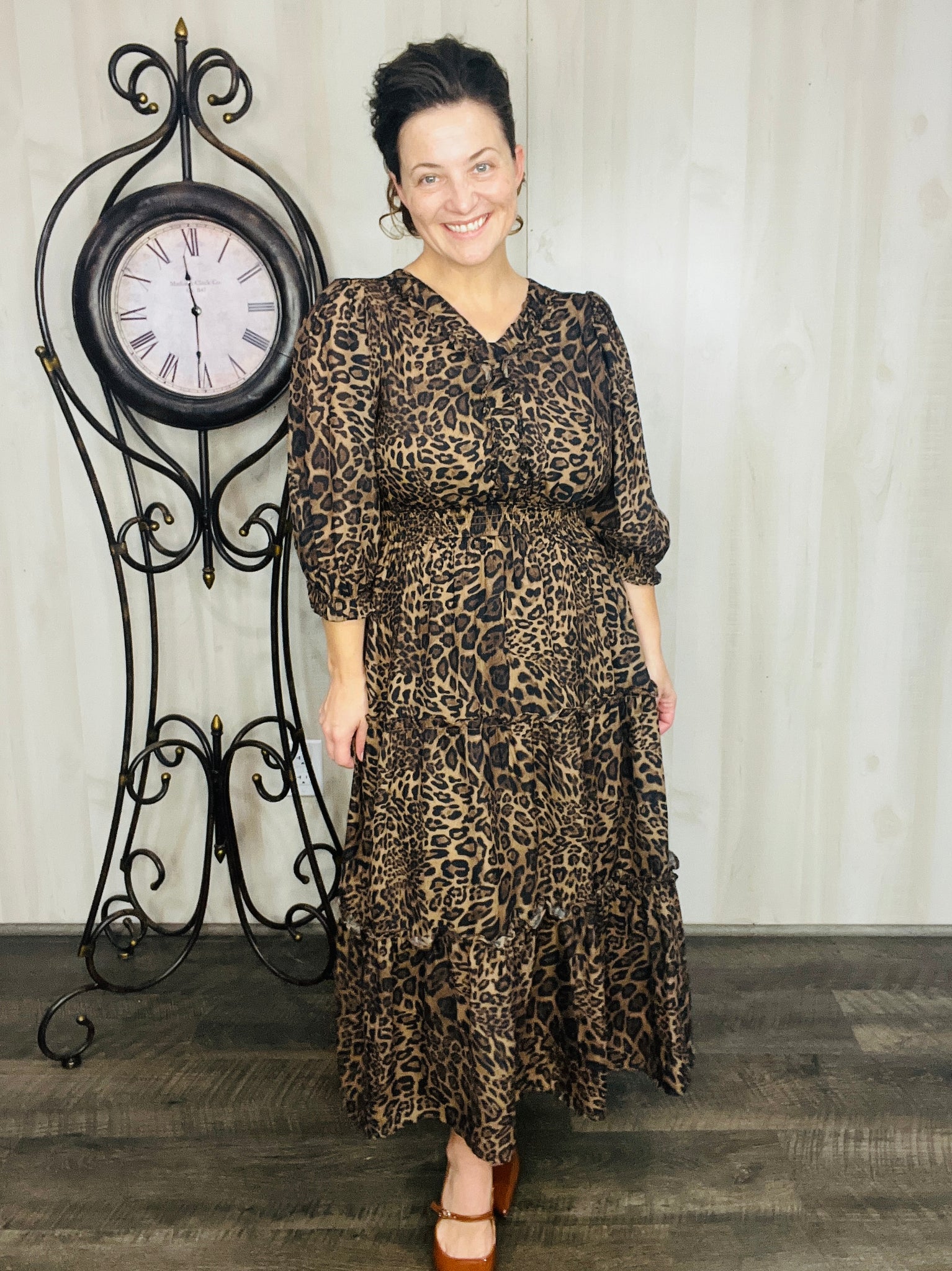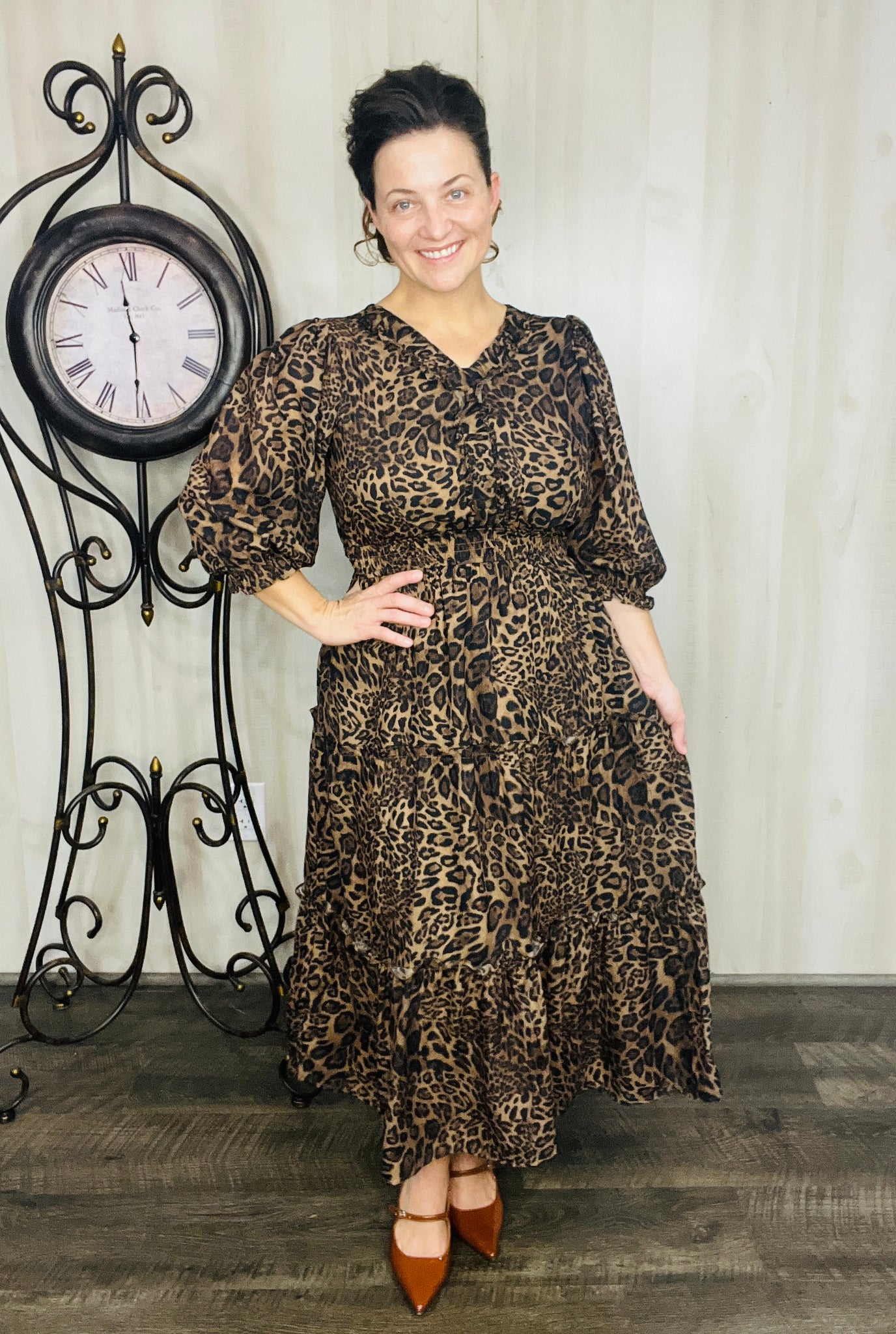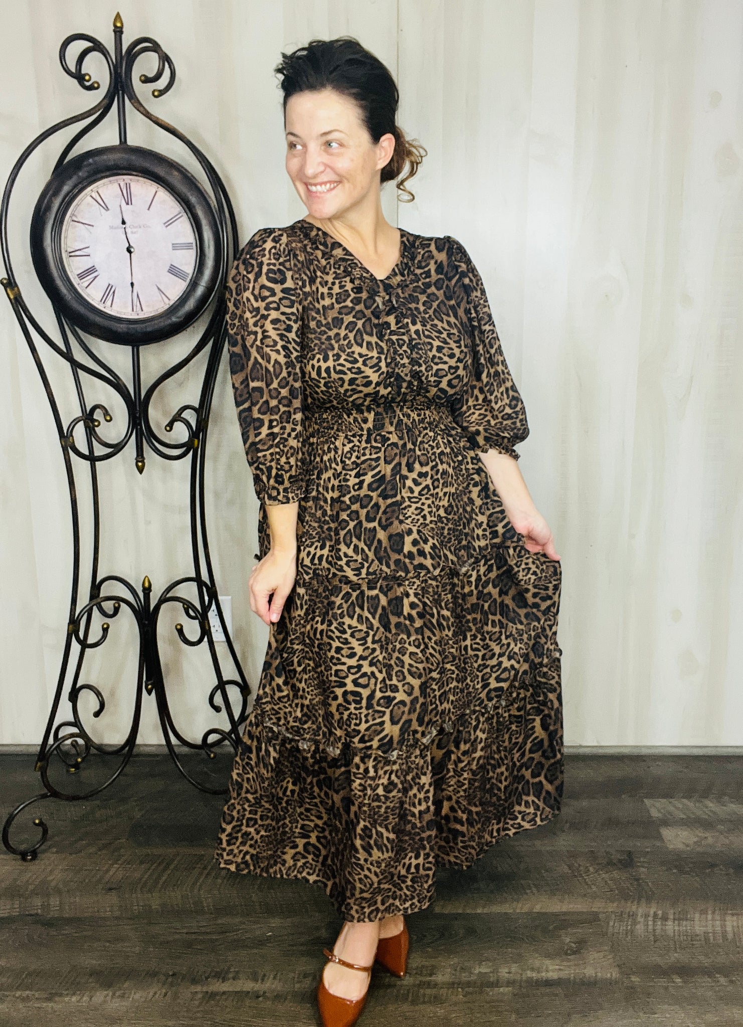 Step into charm with this adorable dress! This playful midi features a flattering smocked waist that adds shape and comfort. Crafted from a soft polyester blend, it flows effortlessly and includes handy pockets for a touch of practical style. Perfect for twirling through your day with ease and fun. Fully lined. Notched v neckline. Tiered Style.