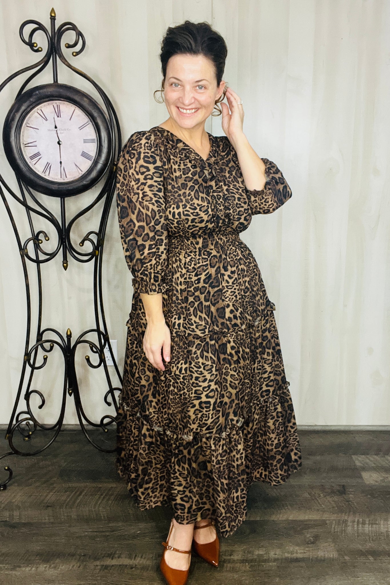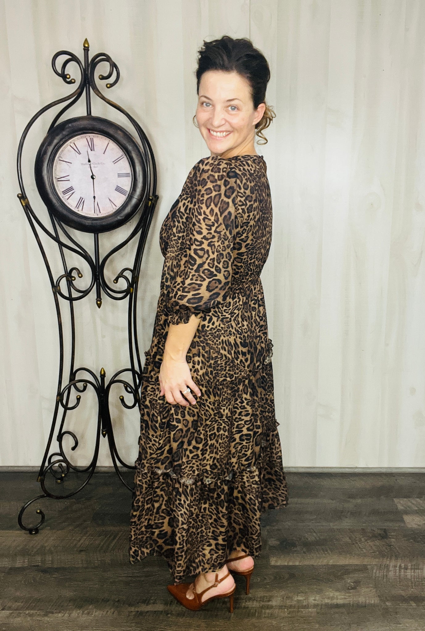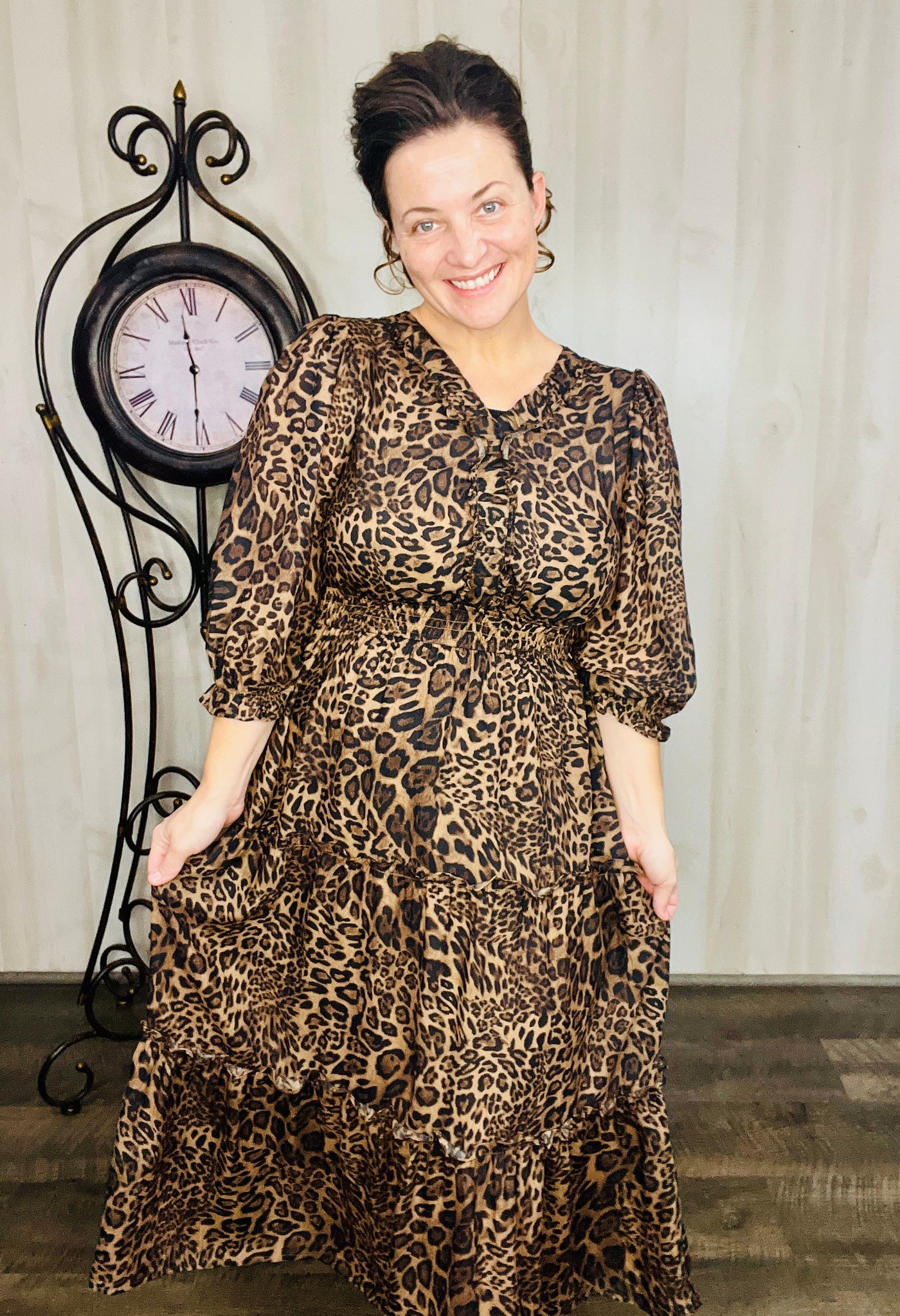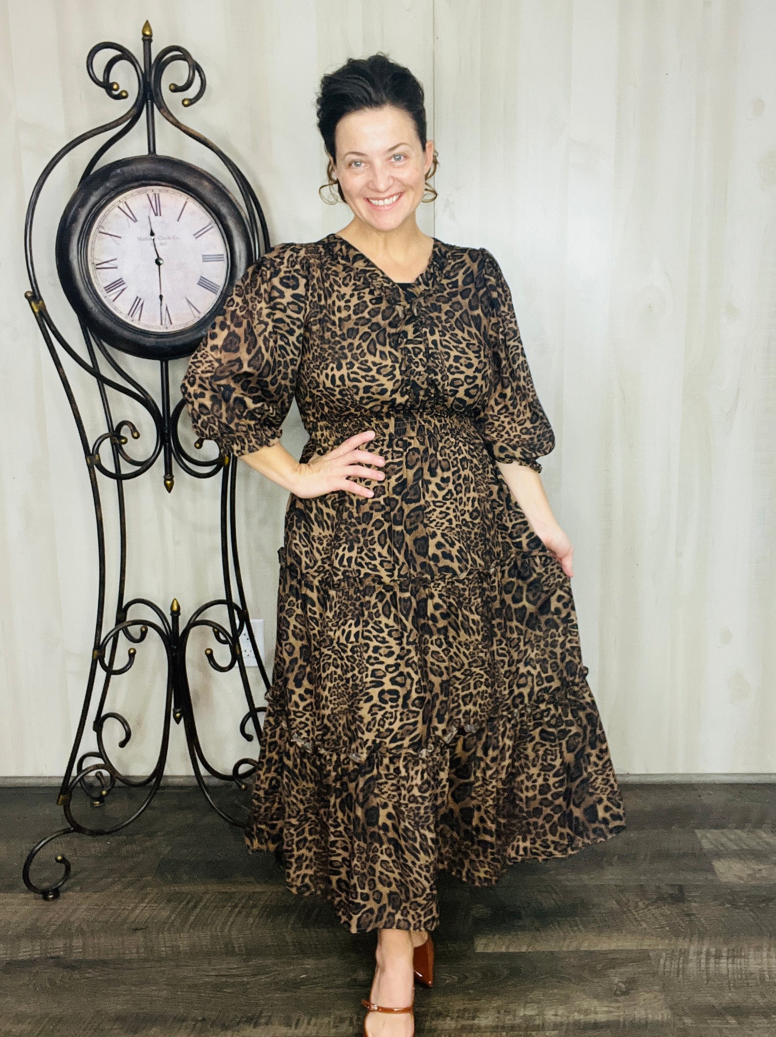 Step into charm with this adorable dress! This playful midi features a flattering smocked waist that adds shape and comfort. Crafted from a soft polyester blend, it flows effortlessly and includes handy pockets for a touch of practical style. Perfect for twirling through your day with ease and fun. Fully lined. Notched v neckline. Tiered Style.