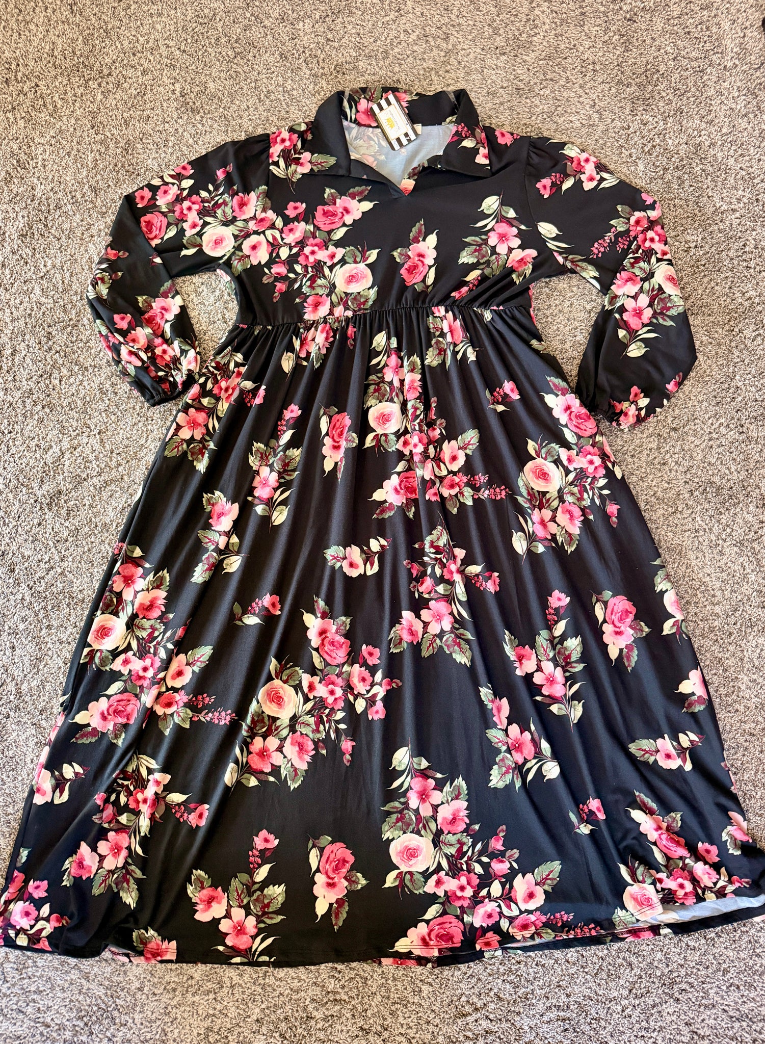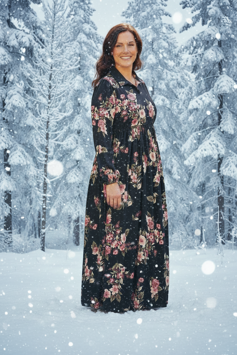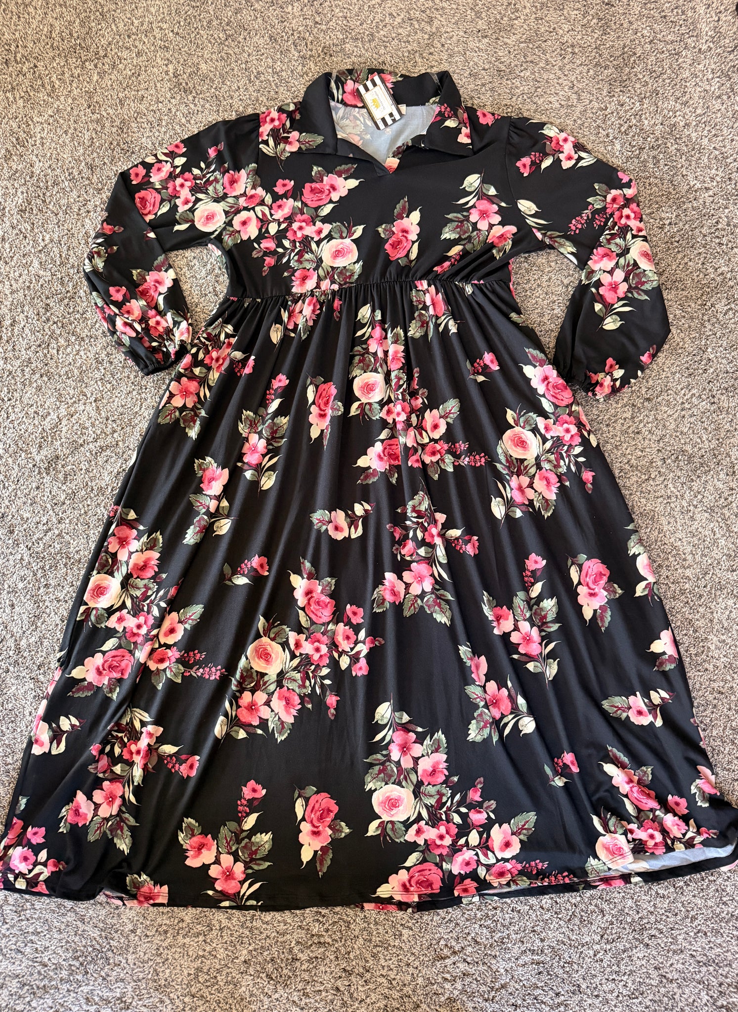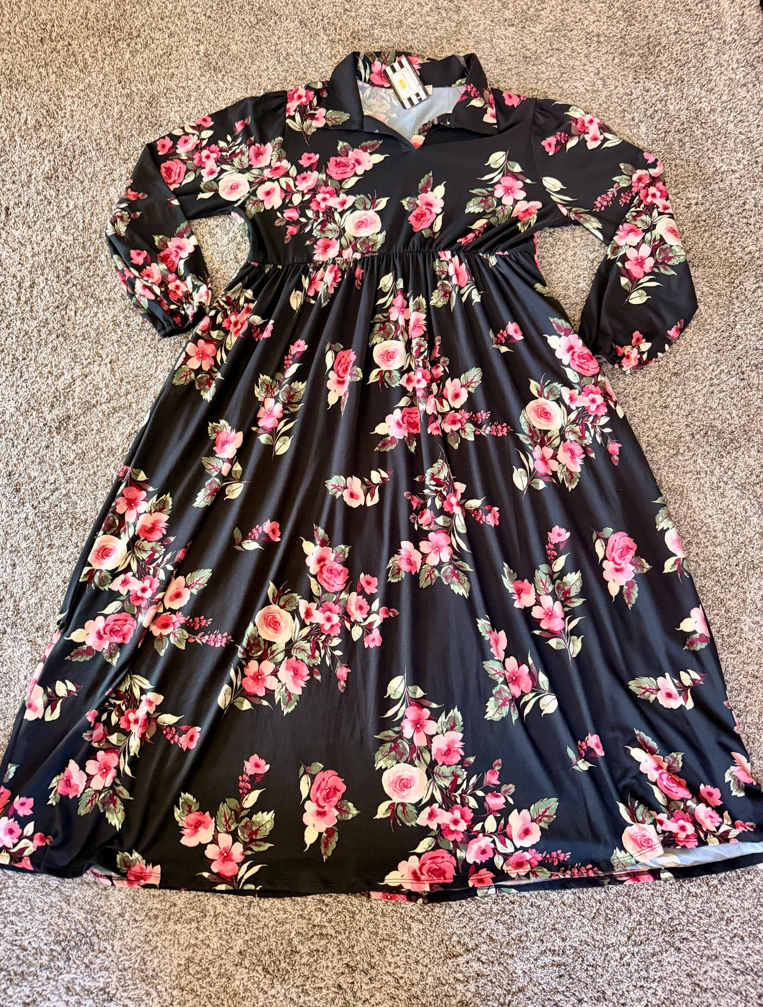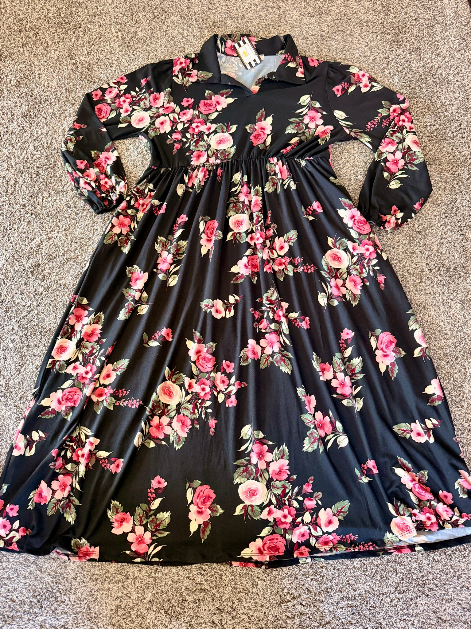 The Kaylee Collared Dress features a refined collar with a notched neckline that frames the face elegantly. Its babydoll fit and flare silhouette, complemented by voluminous bubble sleeves, creates a graceful and feminine look. Maxi length adds sophistication, while the stretchy, anti-wrinkle fabric blend ensures comfort and effortless style throughout the day. This dress perfectly combines polished design with practical wearability.