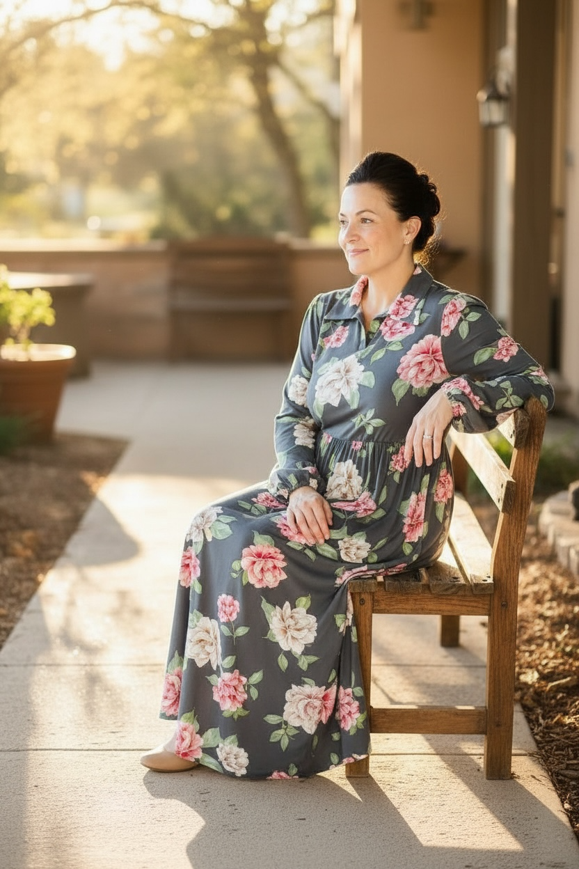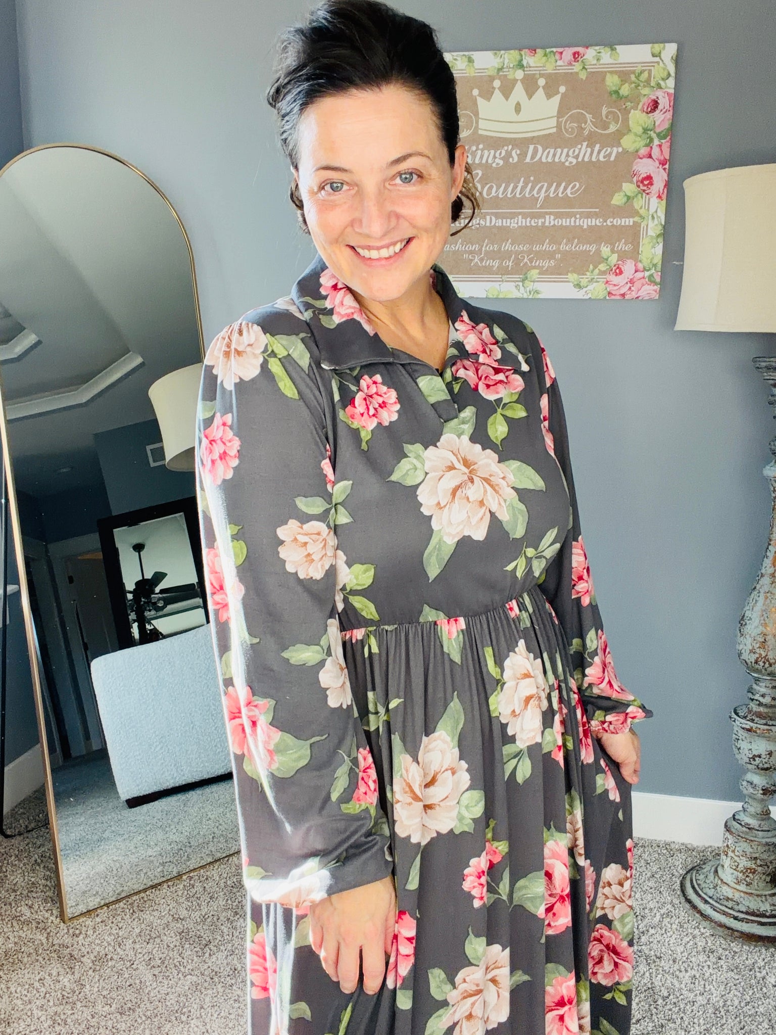 The Kaylee Collared Dress features a refined collar with a notched neckline that frames the face elegantly. Its babydoll fit and flare silhouette, complemented by voluminous bubble sleeves, creates a graceful and feminine look. Maxi length adds sophistication, while the stretchy, anti-wrinkle fabric blend ensures comfort and effortless style throughout the day. This dress perfectly combines polished design with practical wearability.