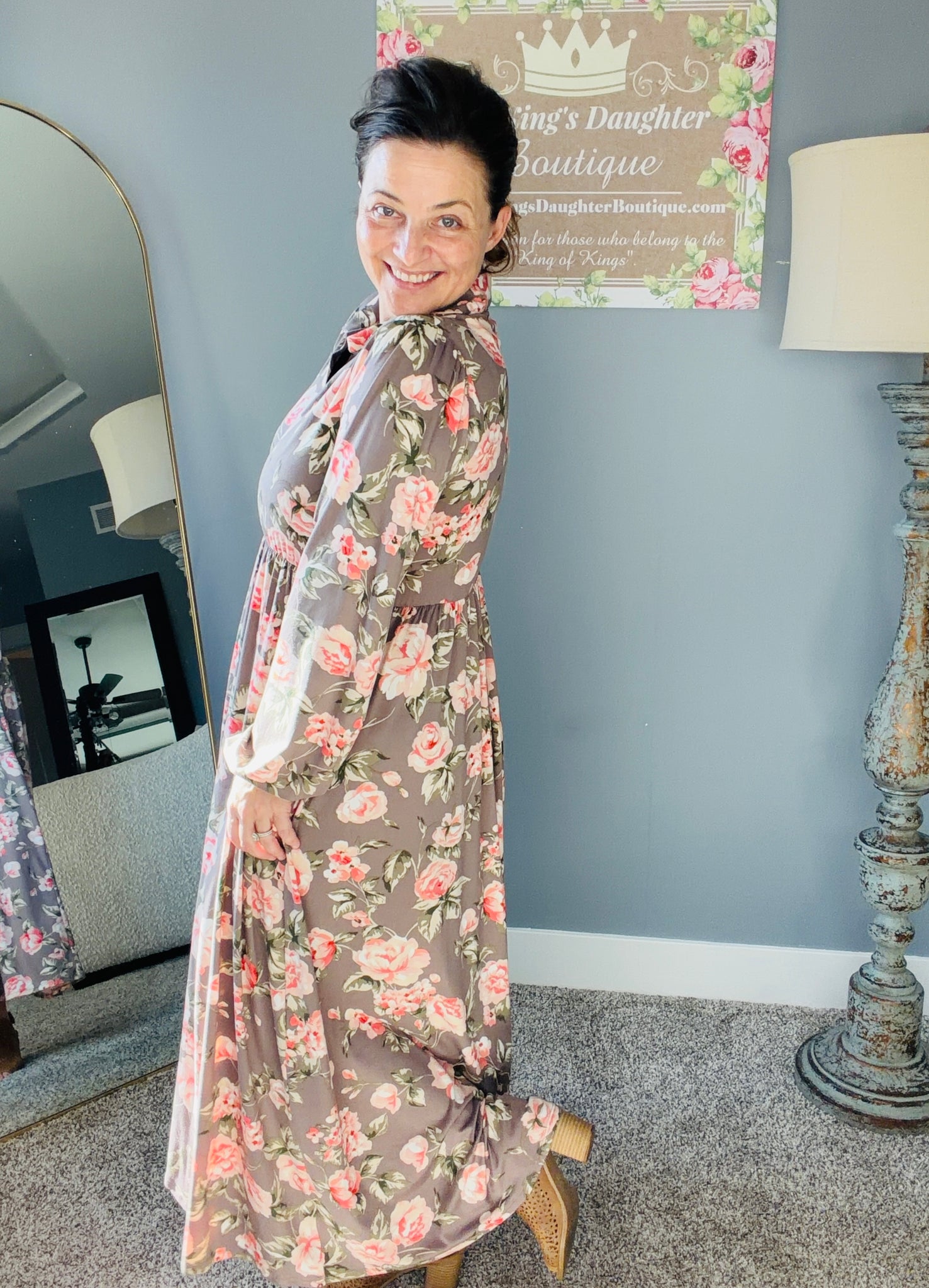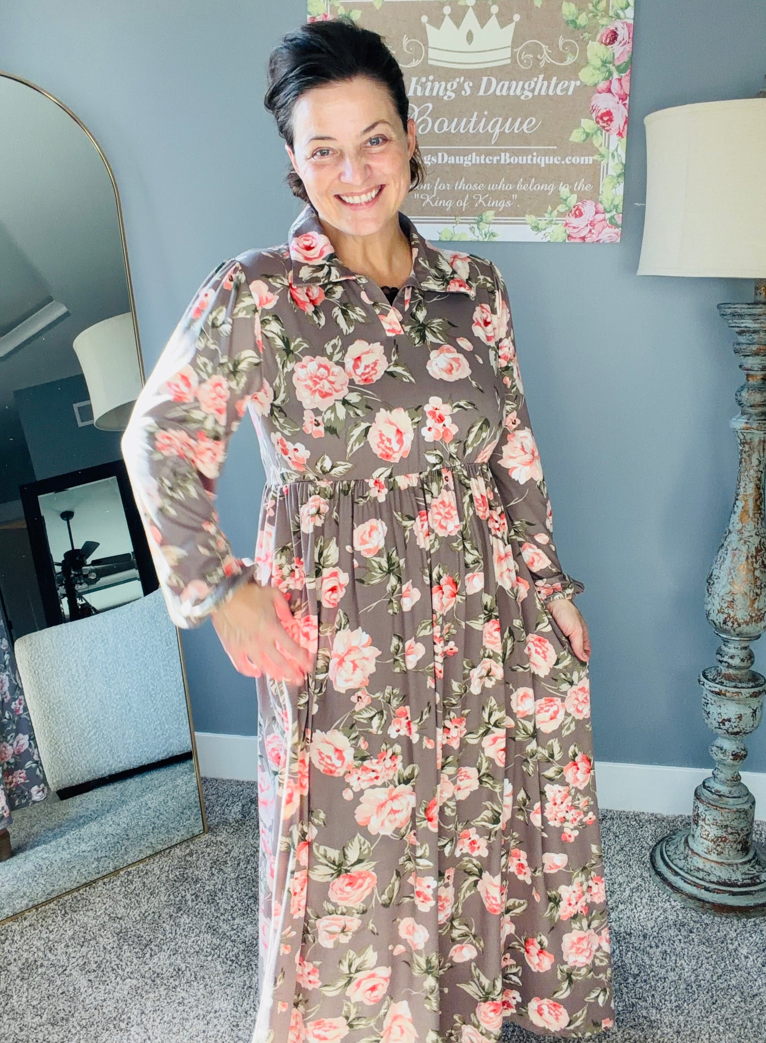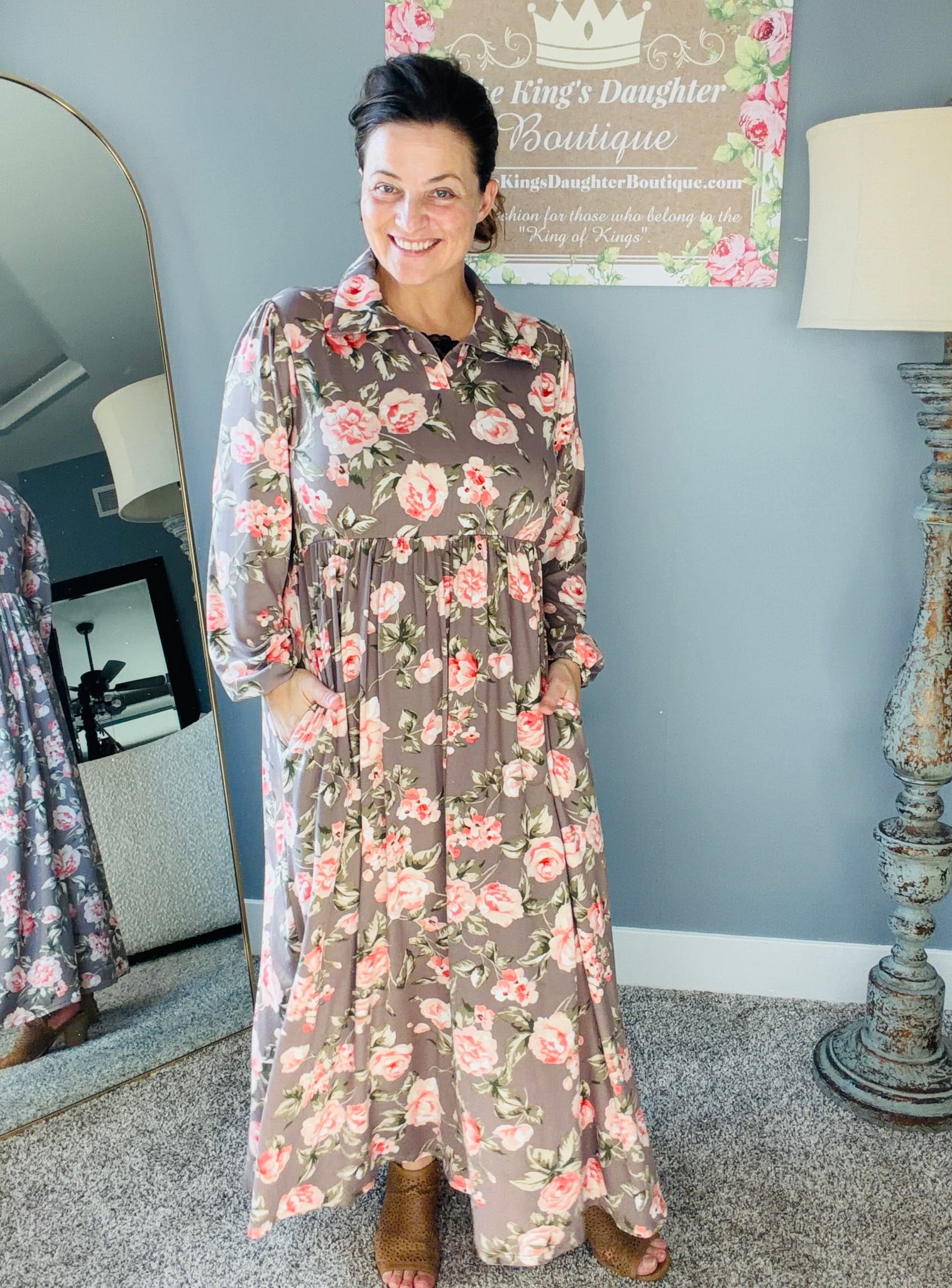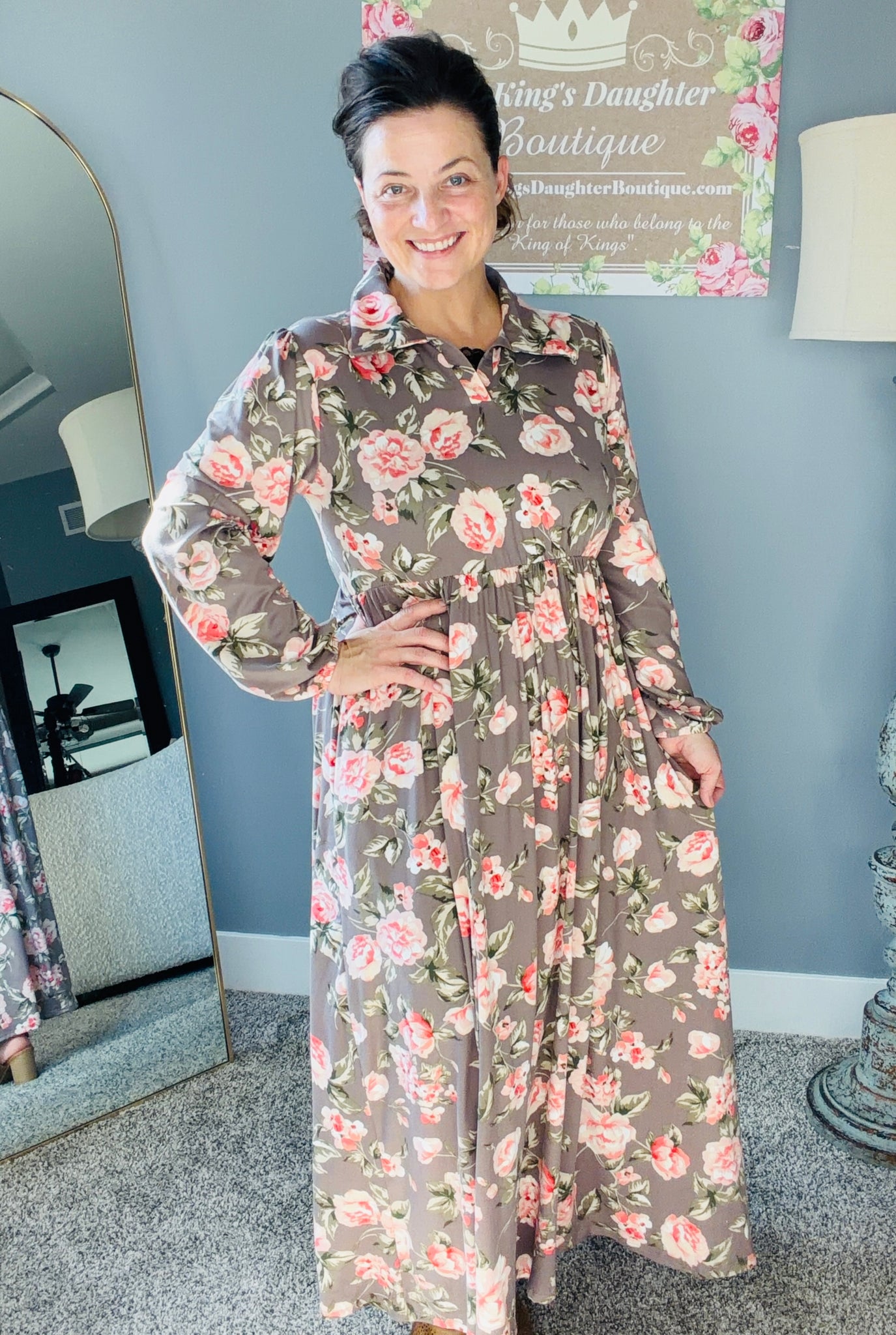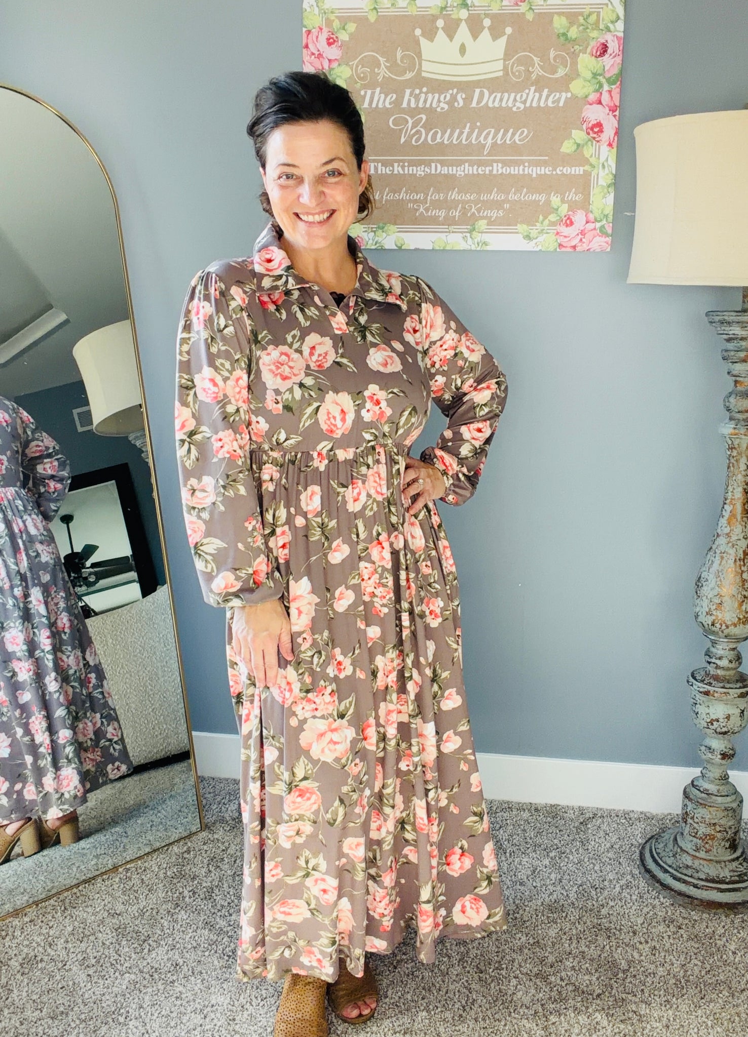 The Kaylee Collared Dress features a refined collar with a notched neckline that frames the face elegantly. Its babydoll fit and flare silhouette, complemented by voluminous bubble sleeves, creates a graceful and feminine look. Maxi length adds sophistication, while the stretchy, anti-wrinkle fabric blend ensures comfort and effortless style throughout the day. This dress perfectly combines polished design with practical wearability.