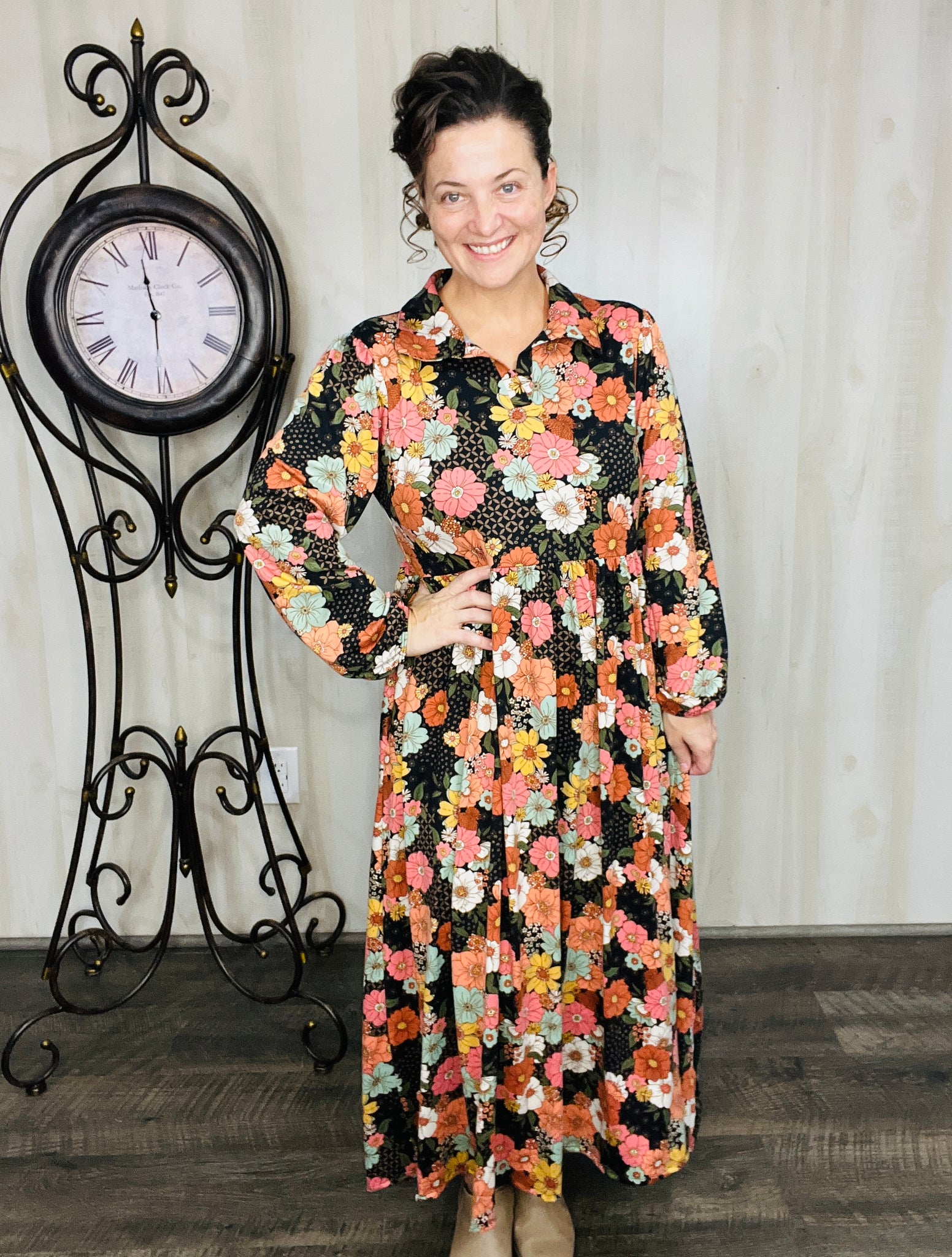 The Kaylee Collared Patchwork Dress features a refined collar with a notched neckline that frames the face elegantly. Its babydoll fit and flare silhouette, complemented by voluminous bubble sleeves, creates a graceful and feminine look. Maxi length adds sophistication, while the stretchy, anti-wrinkle fabric blend ensures comfort and effortless style throughout the day. This dress perfectly combines polished design with practical wearability.