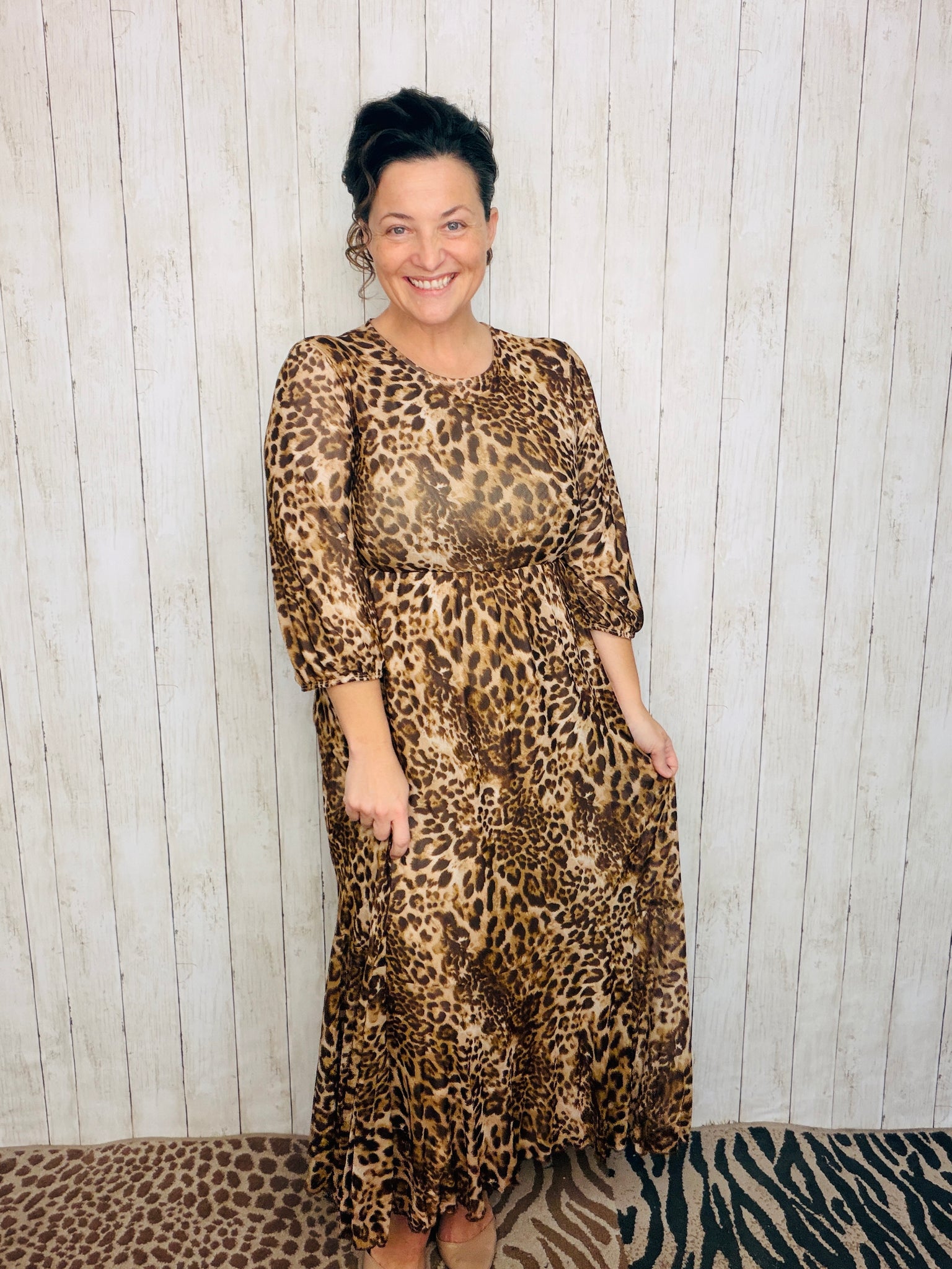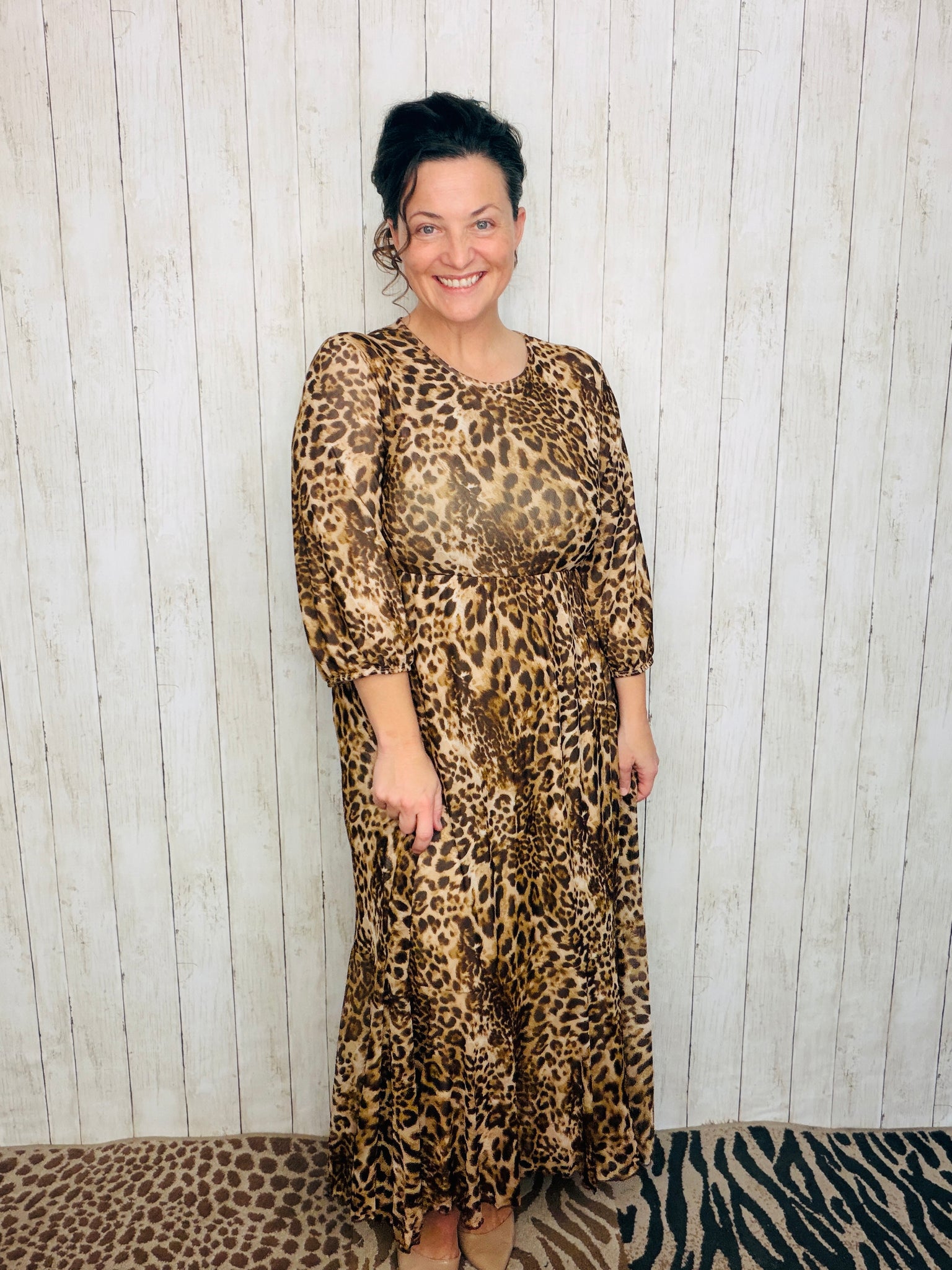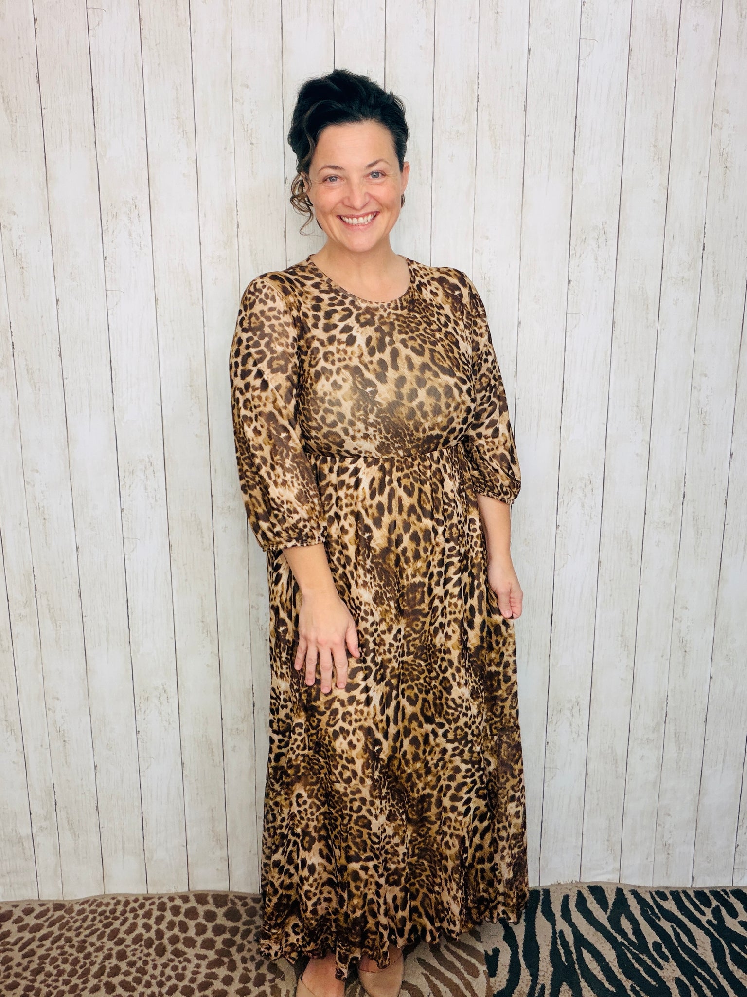 Embrace stunning style with our stunning mesh Overlay Dress. The delicate leopard lace mesh overlay adds a touch of elegance while the stretchy lining ensures a comfortable fit. With pockets and 3/4 length sleeves, this dress is not just beautiful but also practical. Complete the look with the charming ruffle along the hemline.