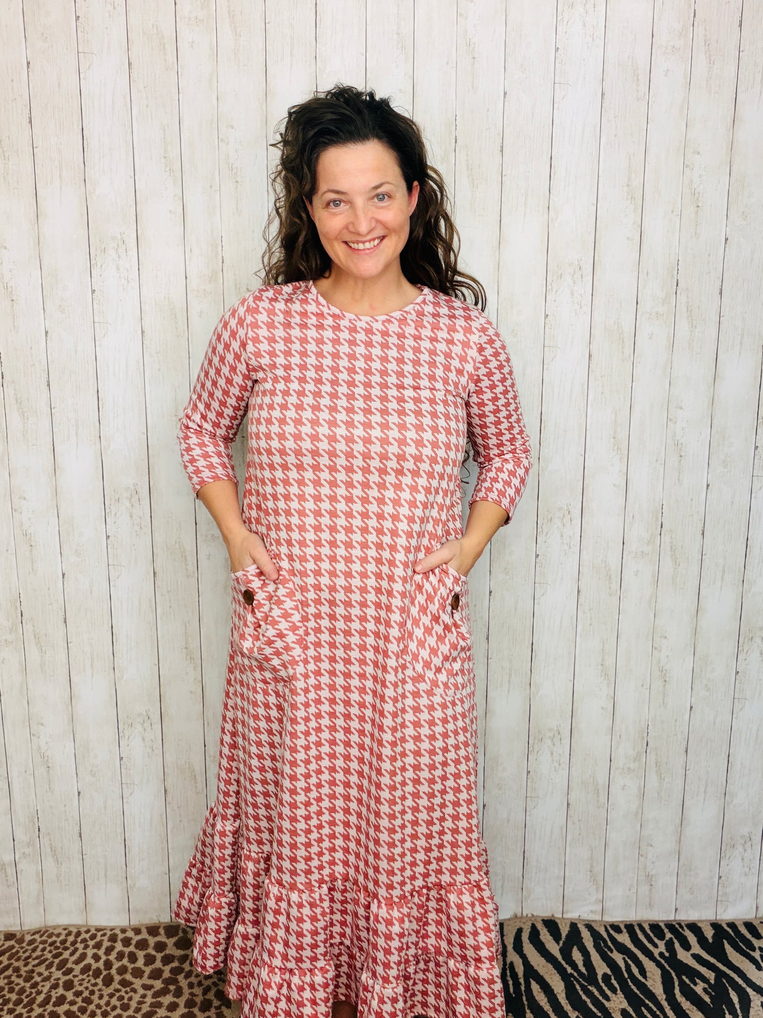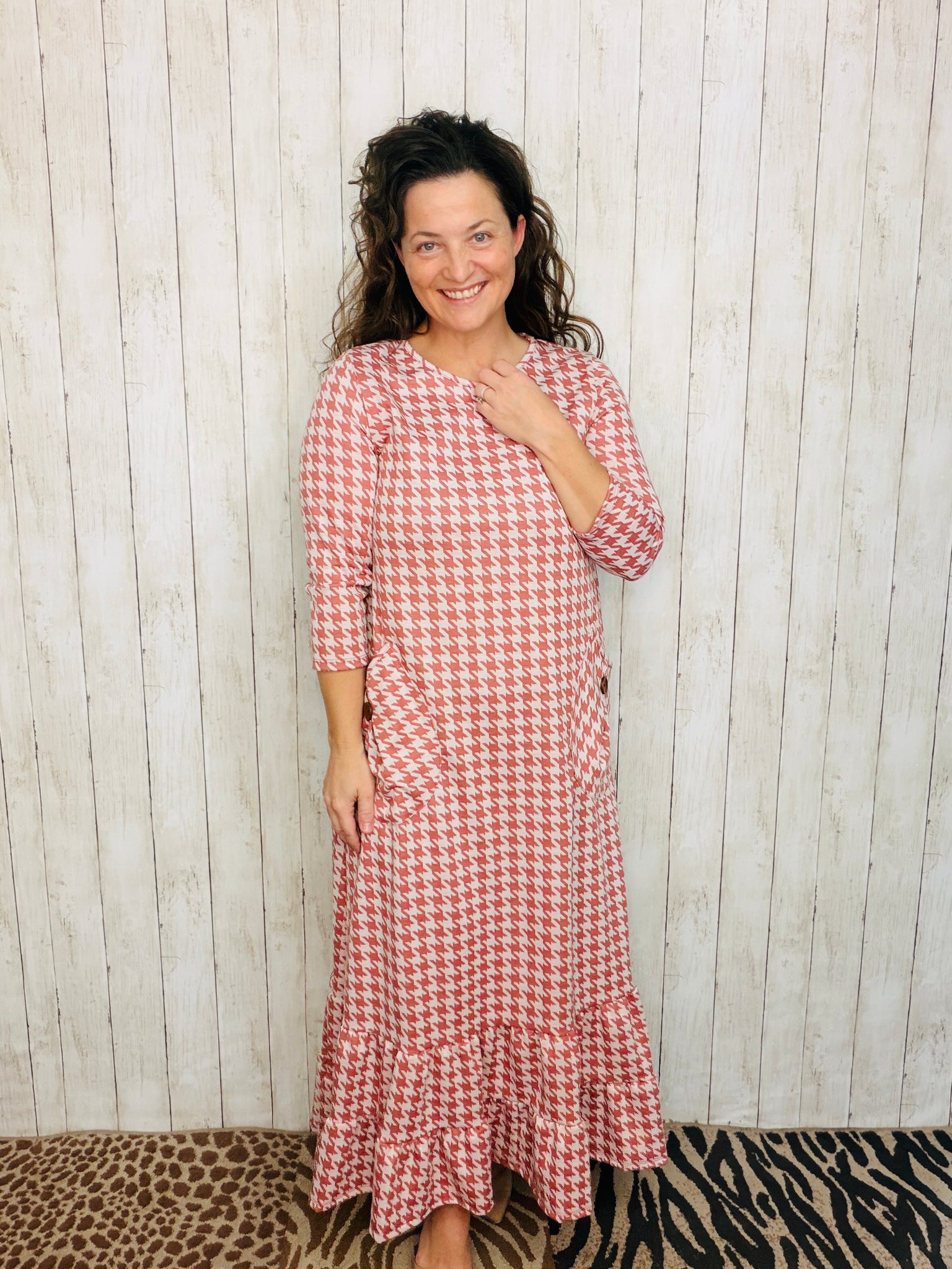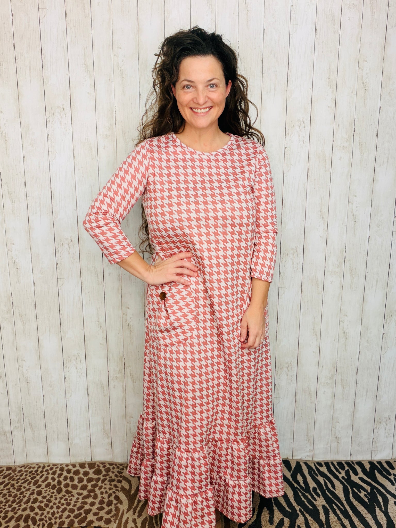 Stay in adorable style with this fashionable Misty Ruffle & Button Dress. Its flattering fit and 3/4 length sleeves make it both comfortable and stylish. The double ruffle hemline adds a fashionable touch that makes this dress stand out. Its classic look and flattering fit make you look your best.