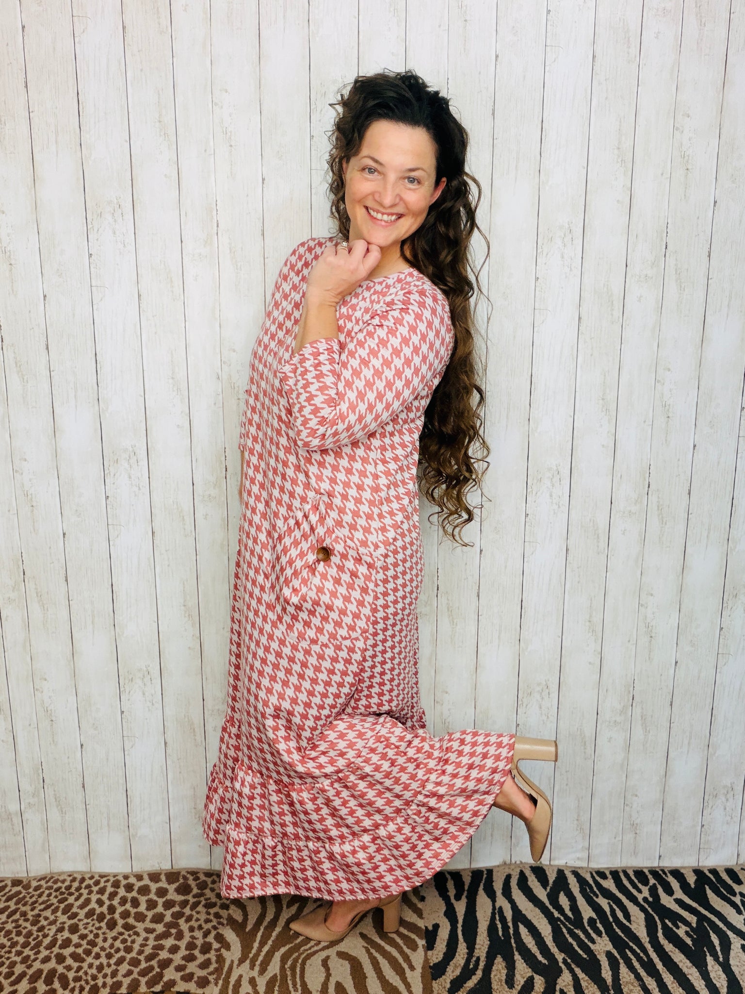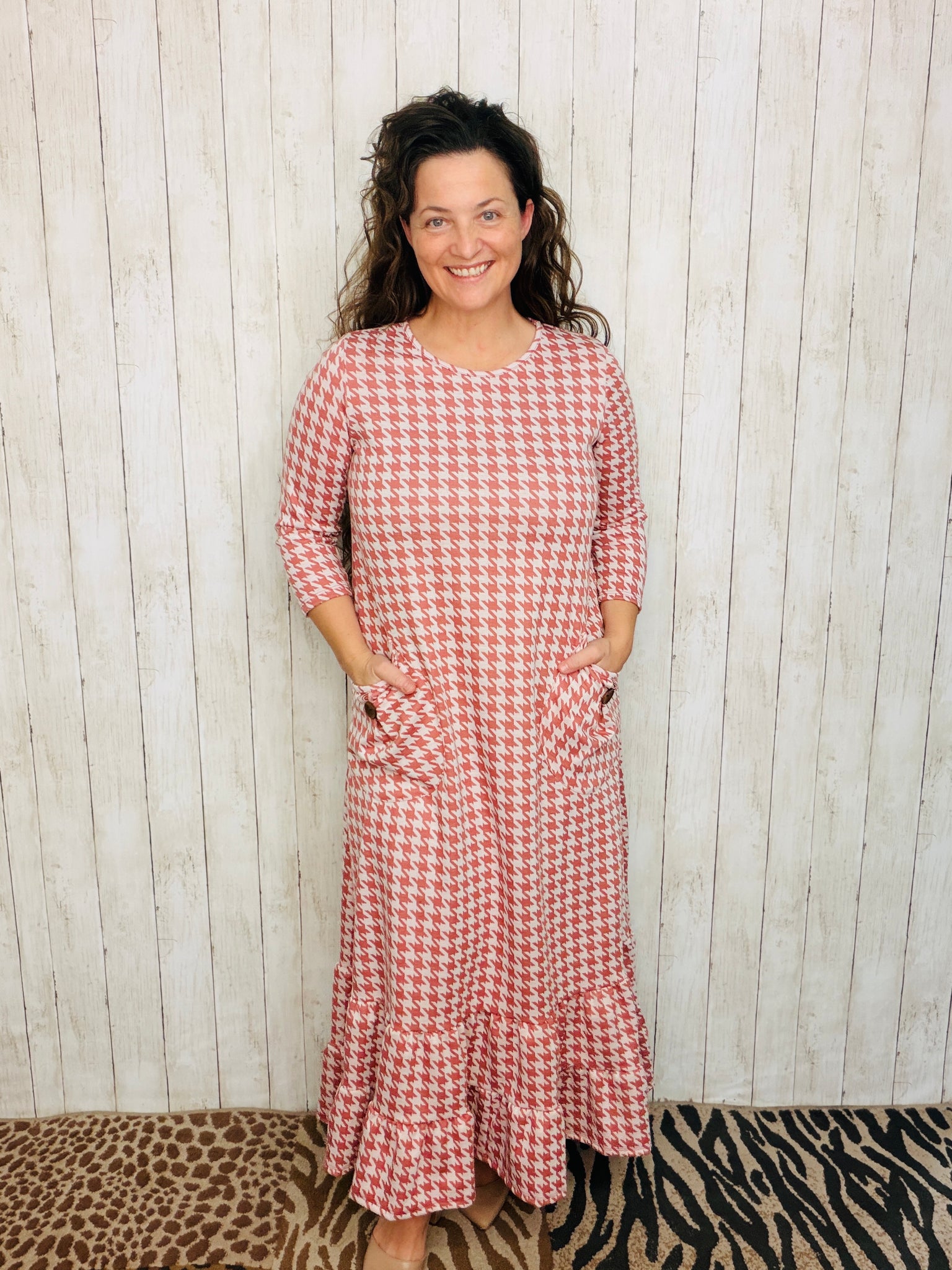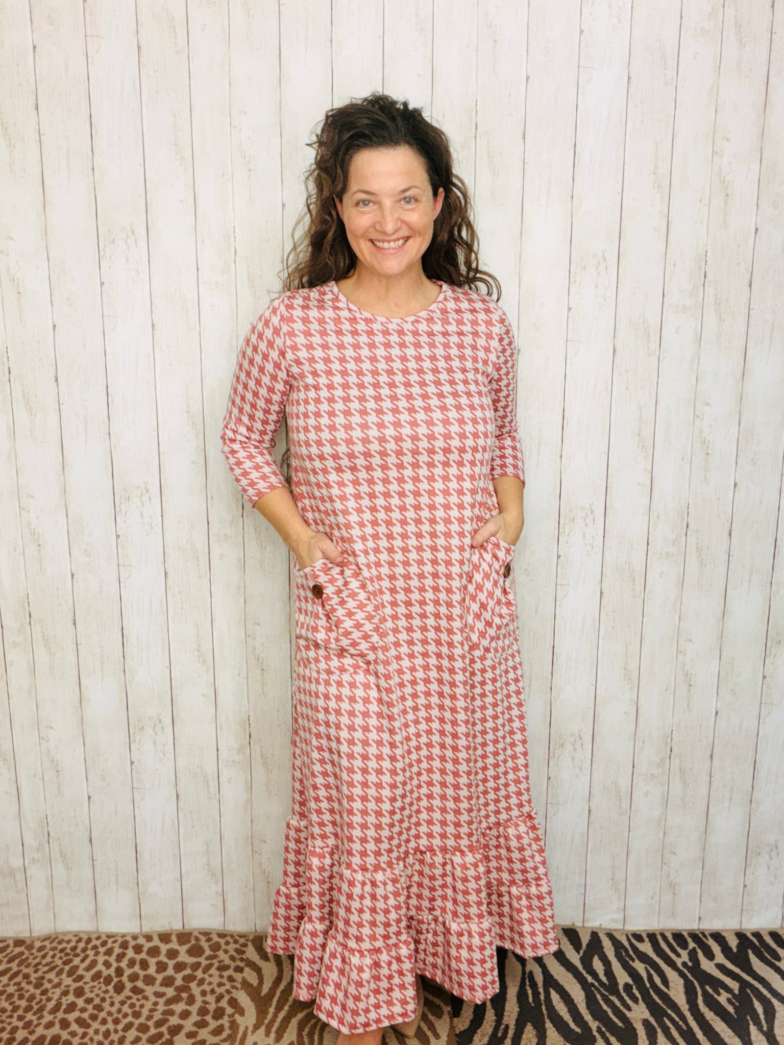 Stay in adorable style with this fashionable Misty Ruffle & Button Dress. Its flattering fit and 3/4 length sleeves make it both comfortable and stylish. The double ruffle hemline adds a fashionable touch that makes this dress stand out. Its classic look and flattering fit make you look your best.