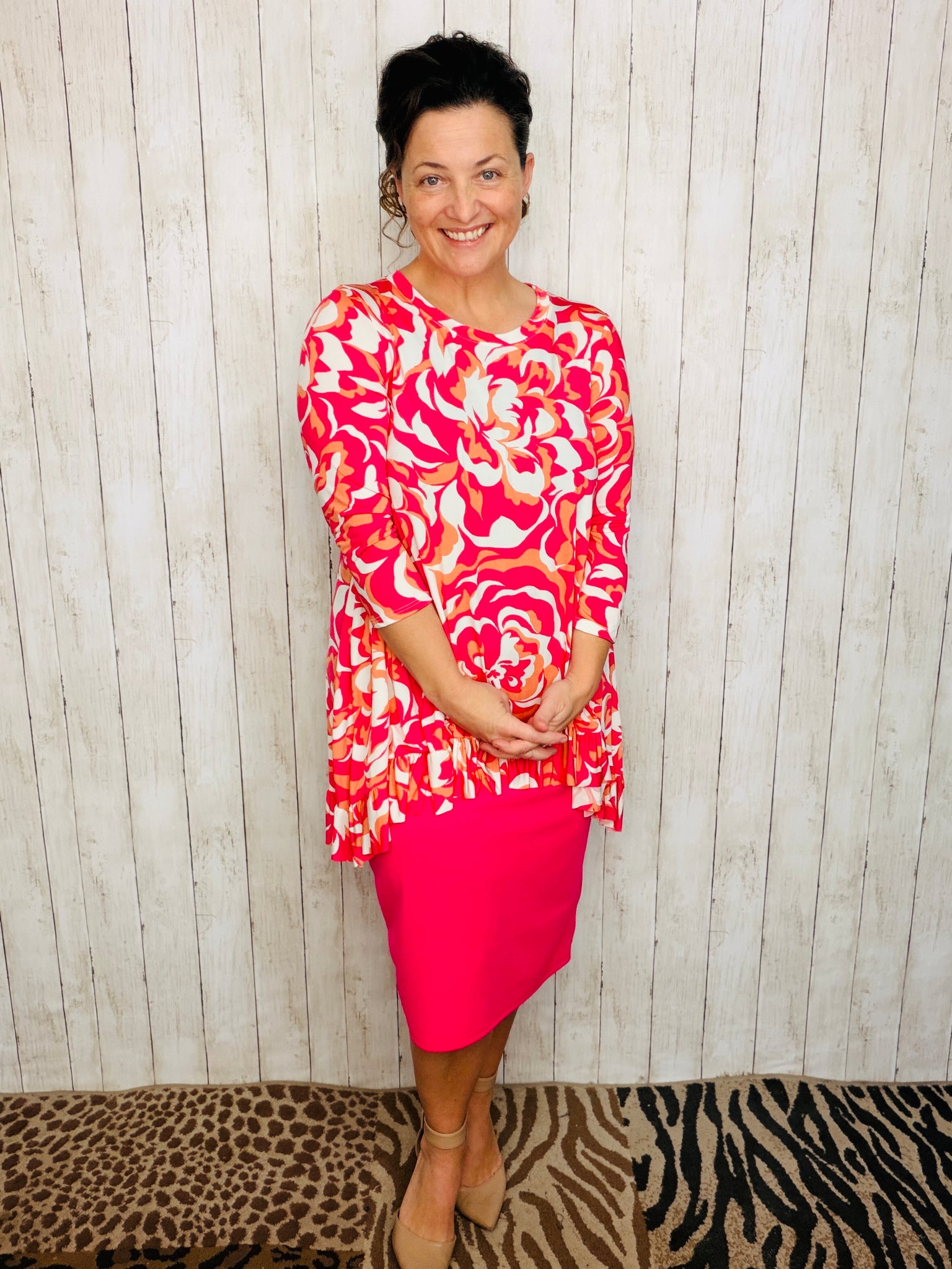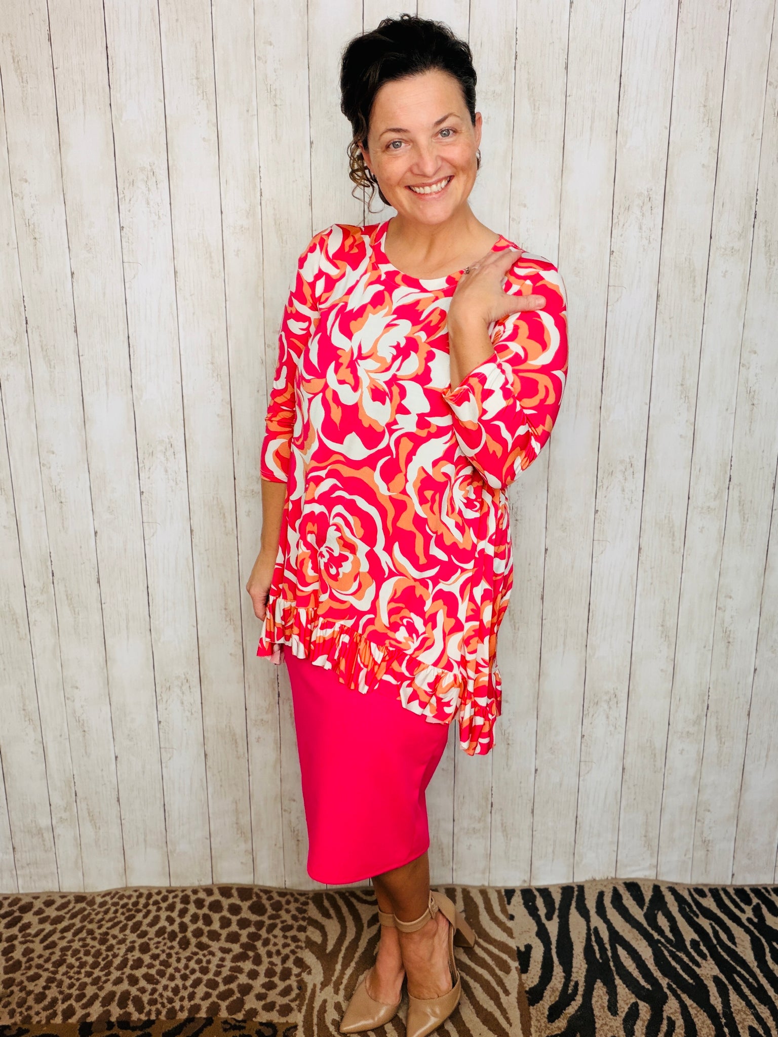 Samantha Ruffle High Low Tunic-Fuchsia Floral