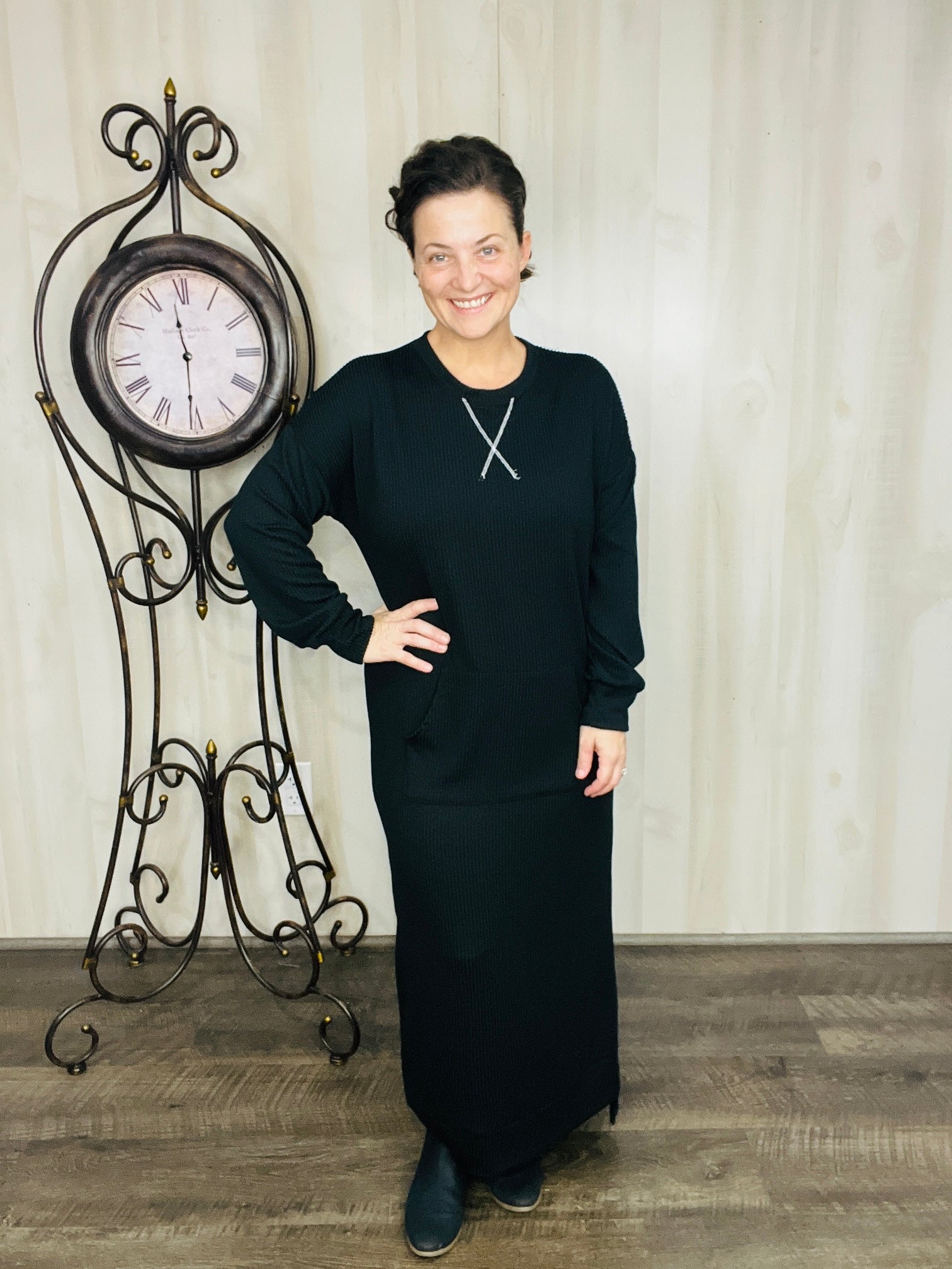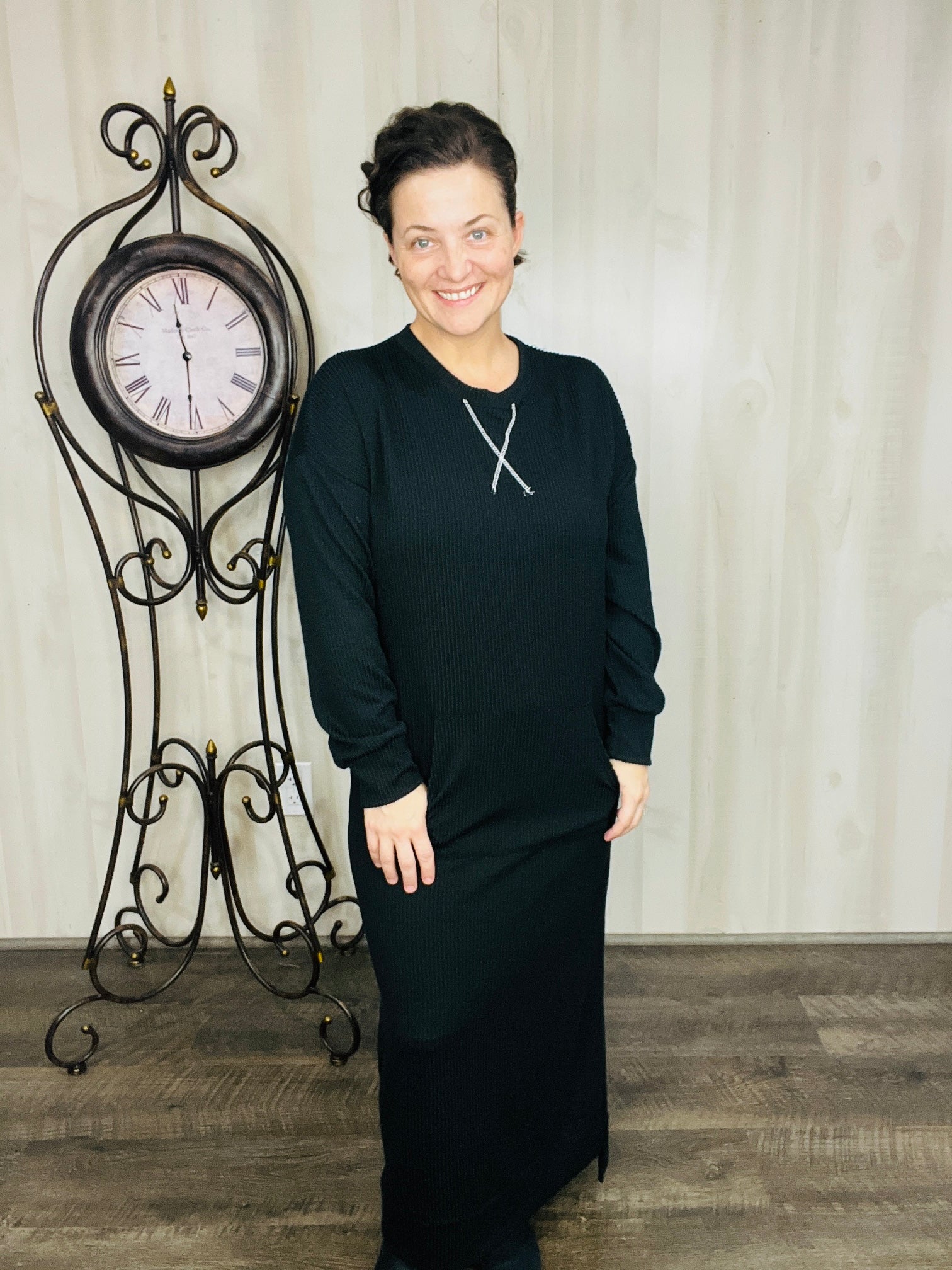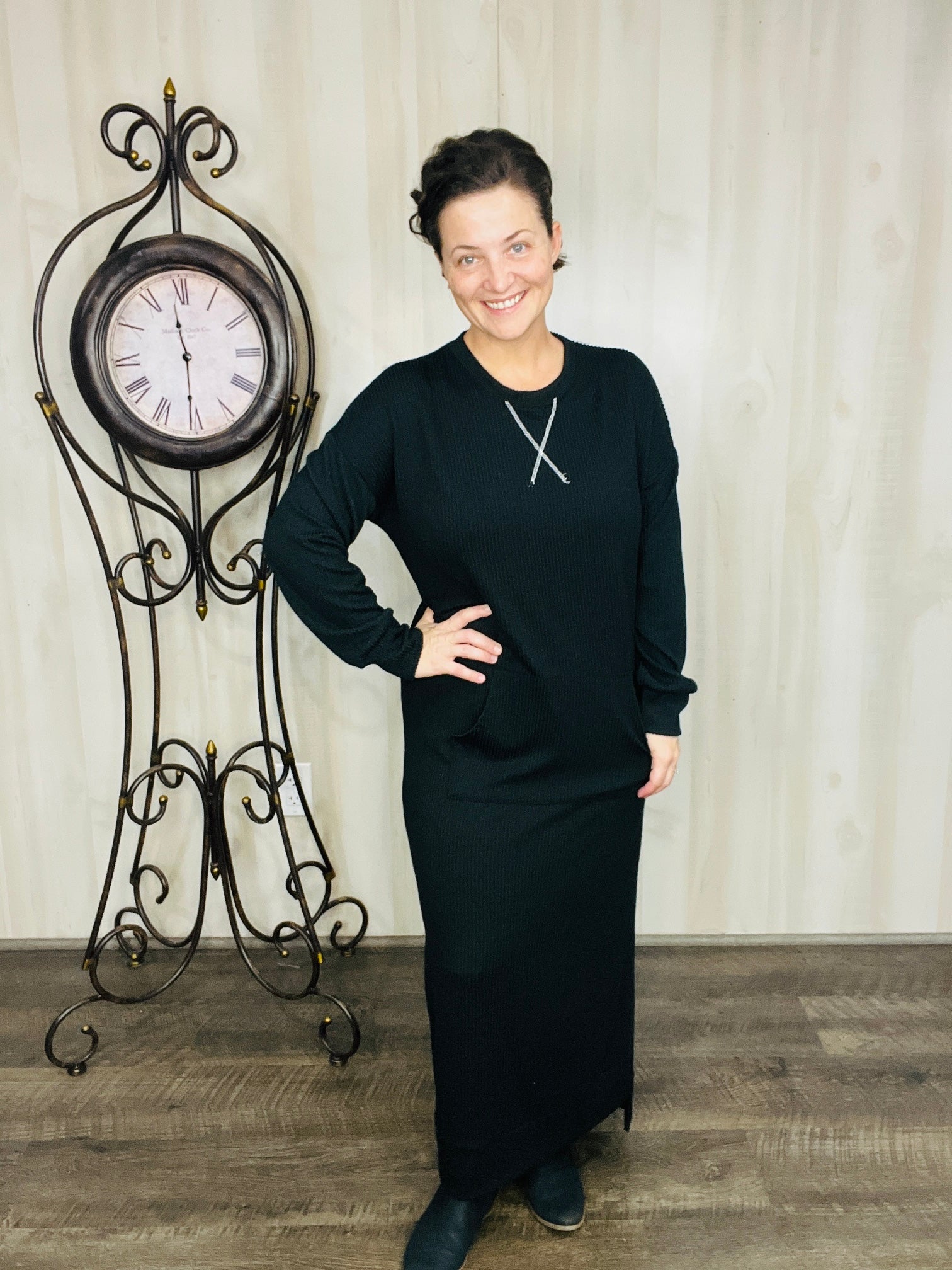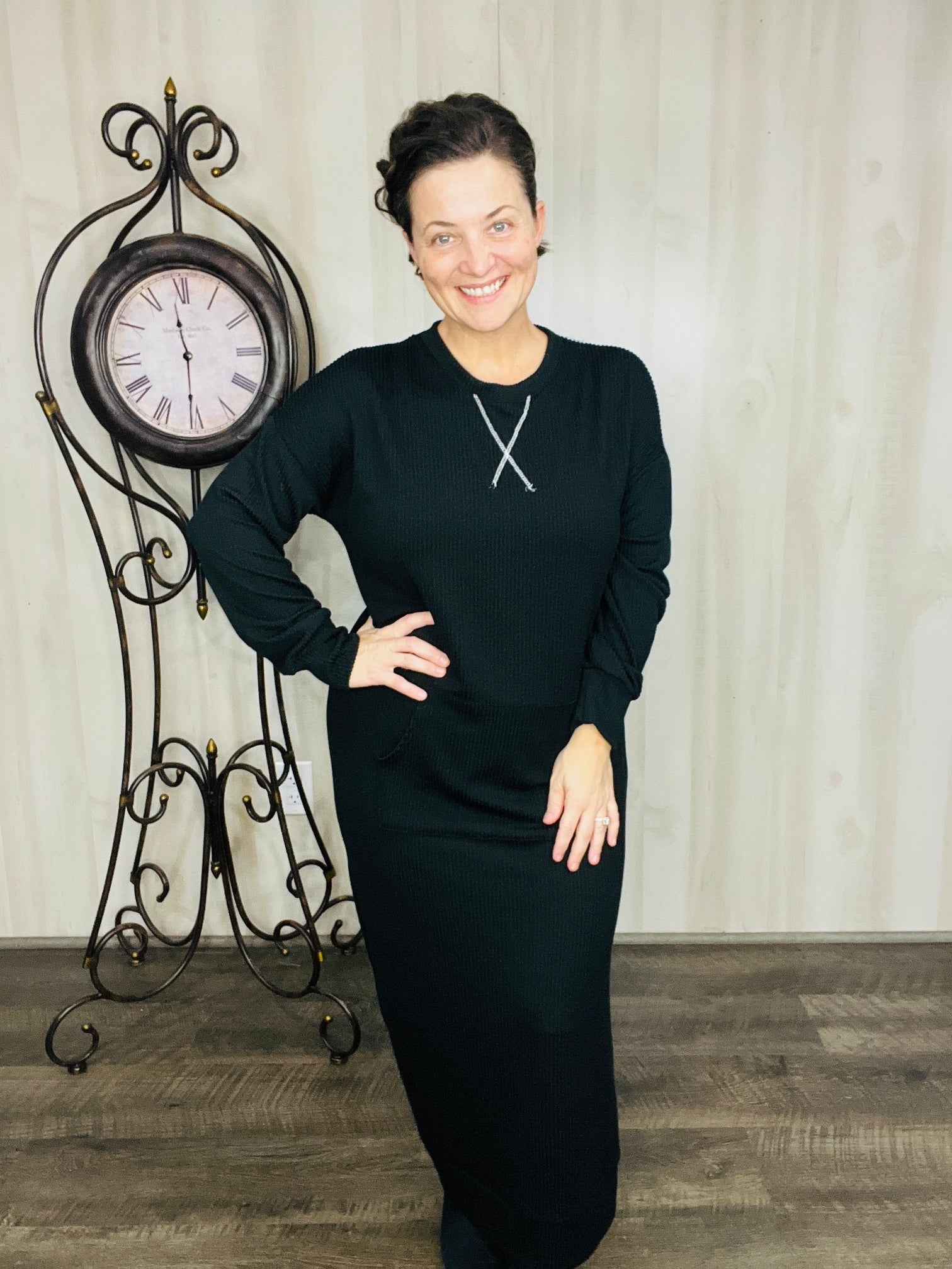 Introducing the Sophia Sweatshirt Dress - the perfect combination of cute and comfortable. Made with a light ribbed material blend of polyester, rayon, and spandex, this dress will keep you cozy without overheating. The stretchy material is easy to wear, and the front pocket adds a practical touch.