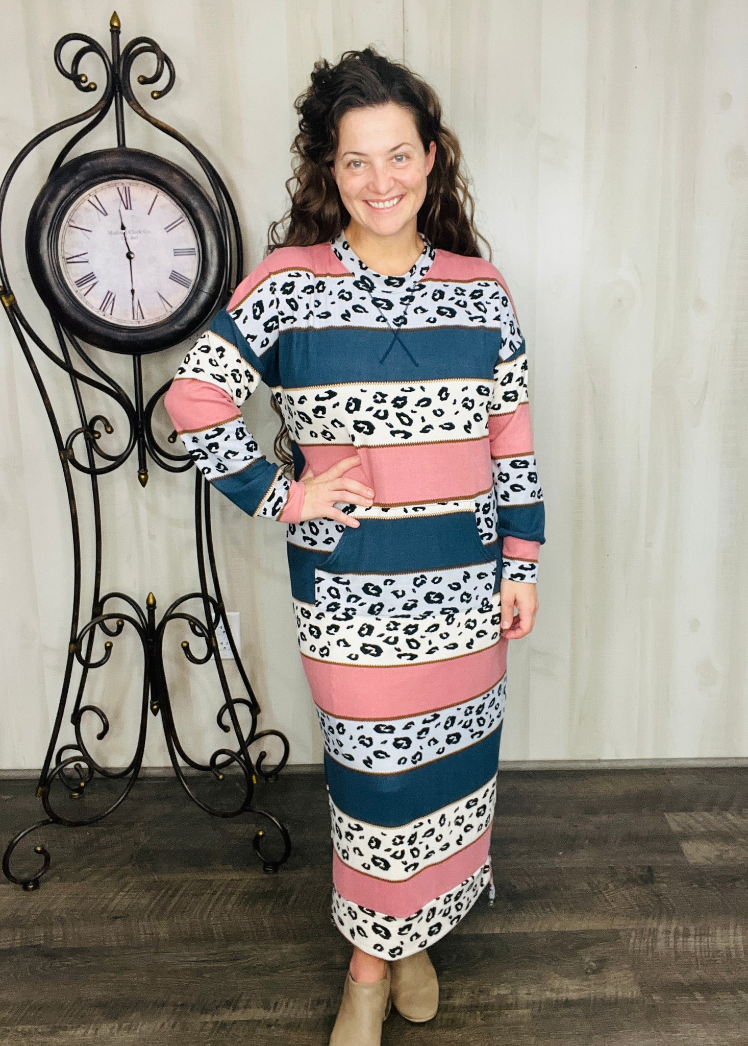 Introducing the Sophia Sweatshirt Dress - the perfect combination of cute and comfortable. Made with a light blend of polyester, rayon, and spandex, this dress will keep you cozy without overheating. The stretchy material is easy to wear, and the front pocket adds a practical touch.