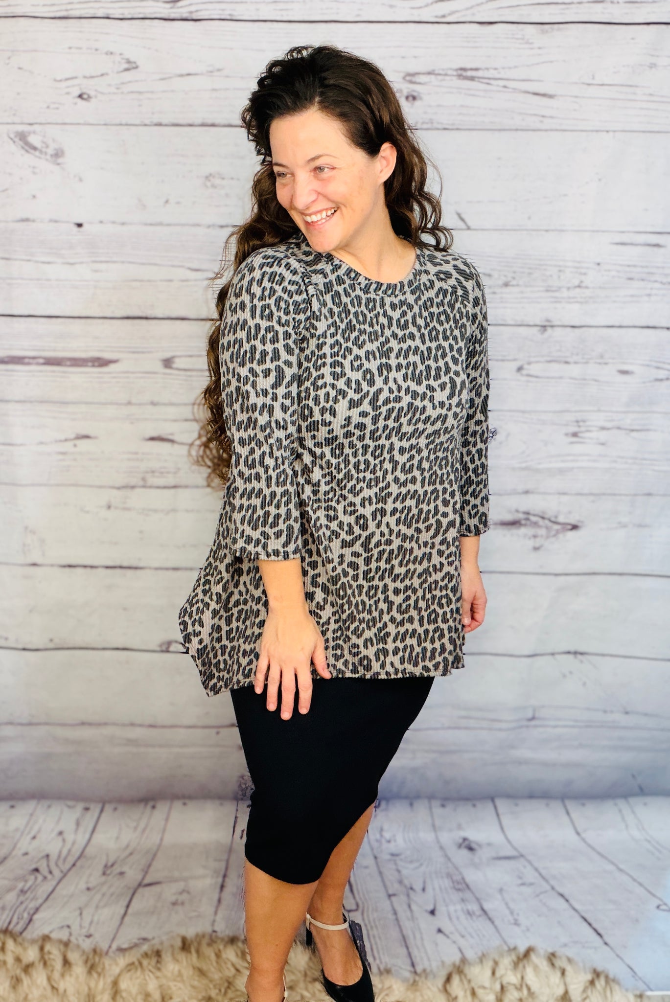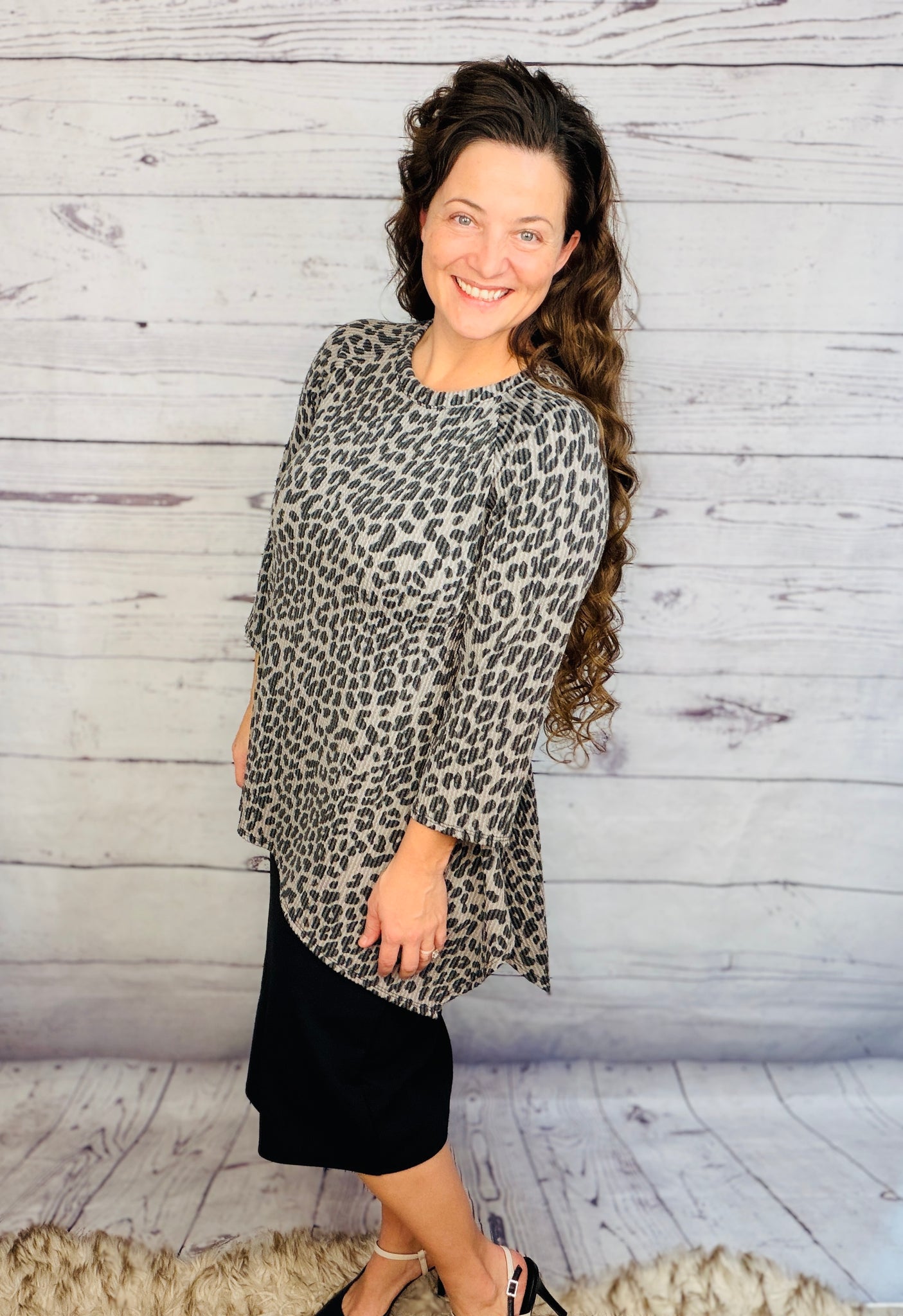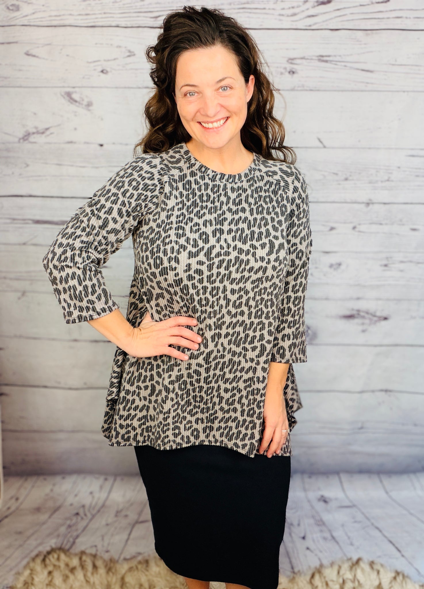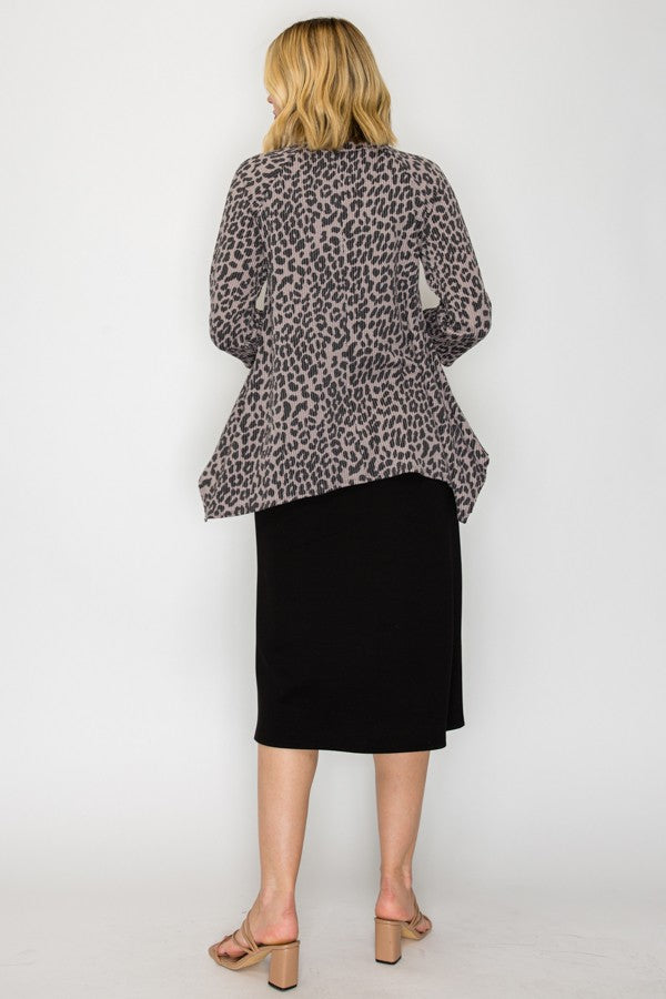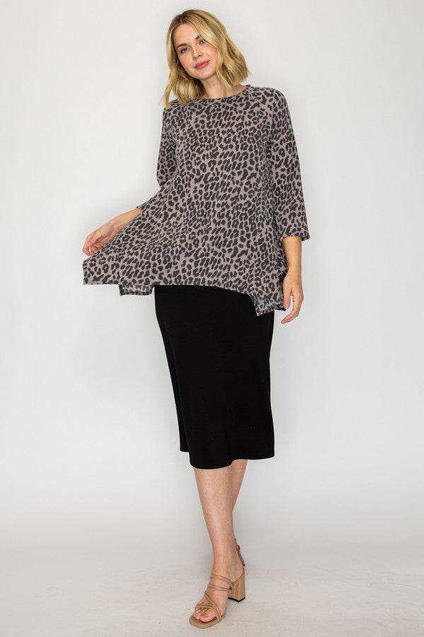 This tunic offers style and practicality, with a beautiful ribbed wrinkle free finish and stretchy polyester and spandex blend fabric for a comfortable fit. This unique tunic is wash and wear and looks fantastic when paired with pencil skirts, making it a great choice for any wardrobe.