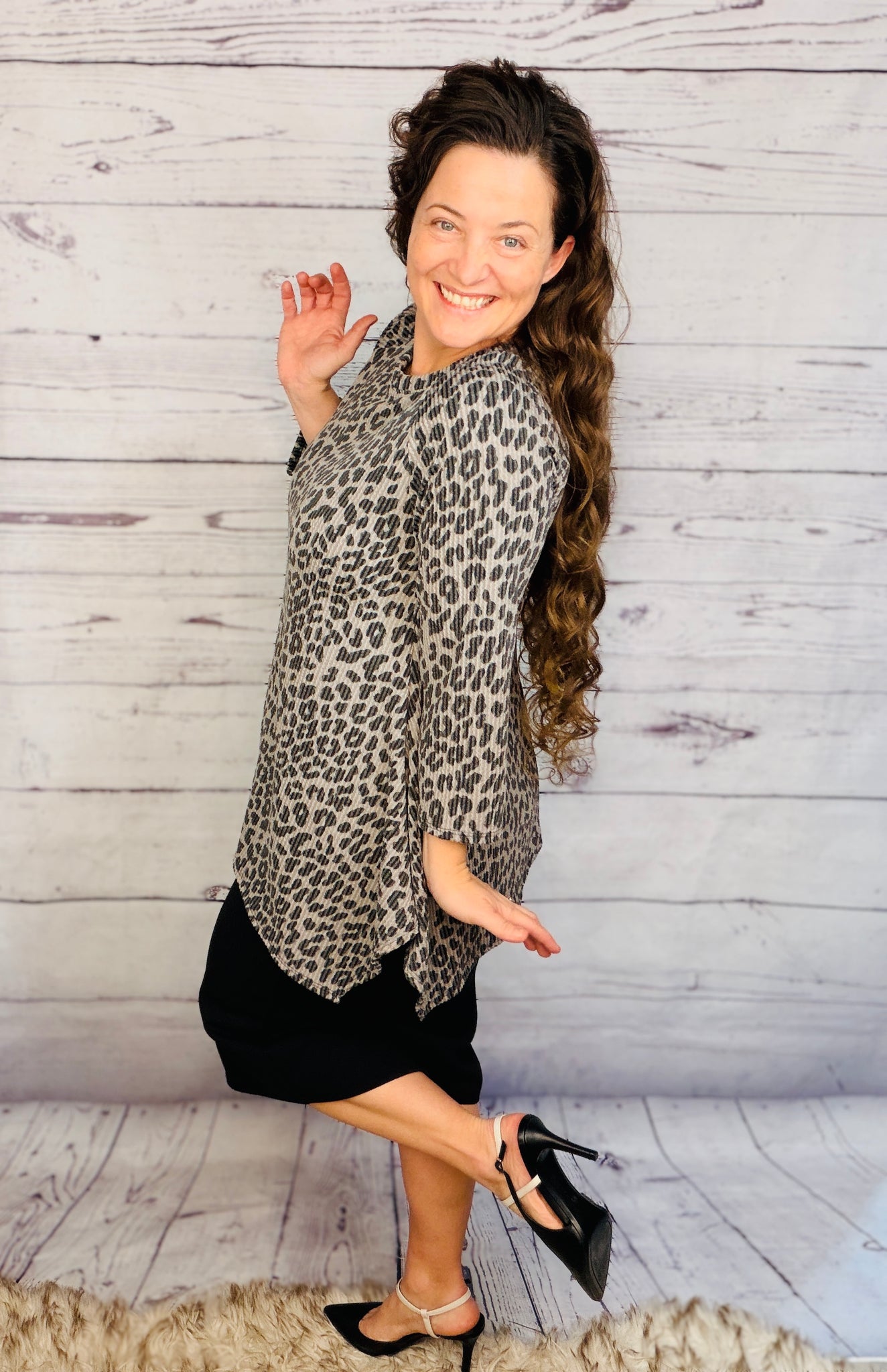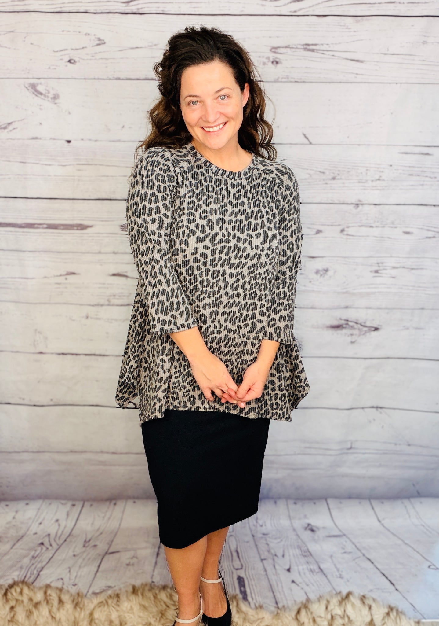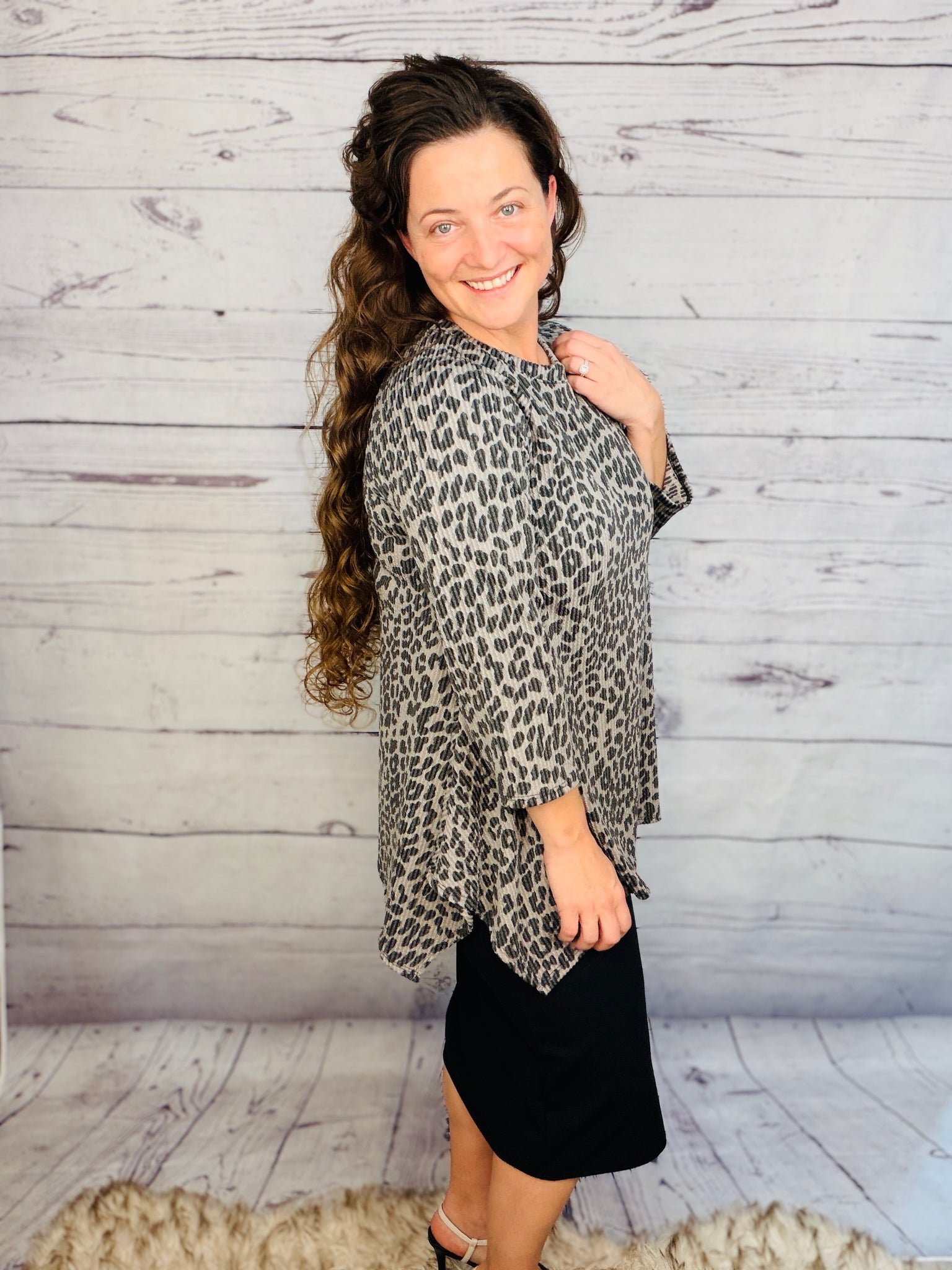 This tunic offers style and practicality, with a beautiful ribbed wrinkle free finish and stretchy polyester and spandex blend fabric for a comfortable fit. This unique tunic is wash and wear and looks fantastic when paired with pencil skirts, making it a great choice for any wardrobe.