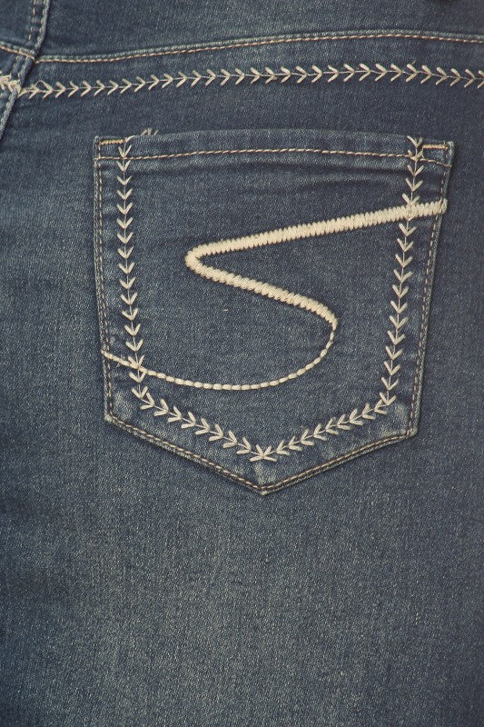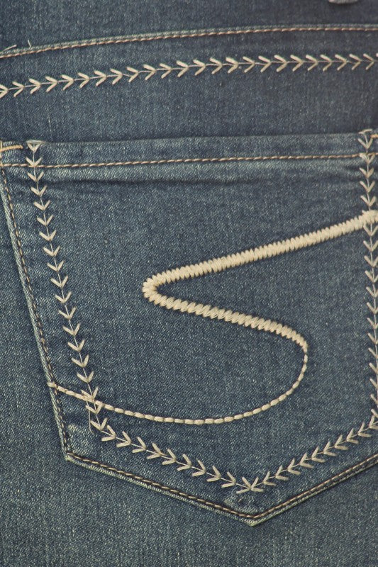 You will love this adorable Jean skirt with embroidery along the pockets and a fabulous fit. It is mid length and comes below the knee. It has a solid, yet stretchy form to it and fits wonderfully! This skirt measures true to size. Measures 28 inches in length