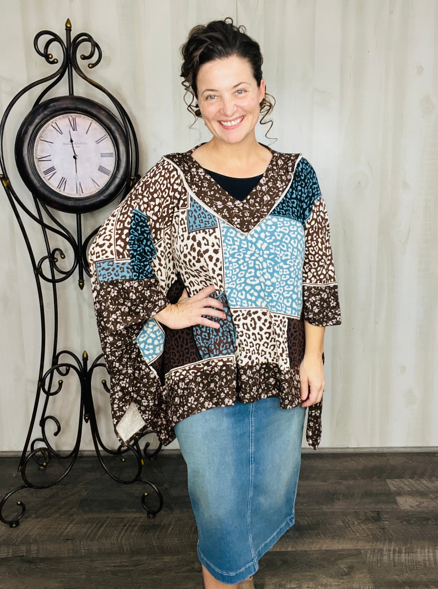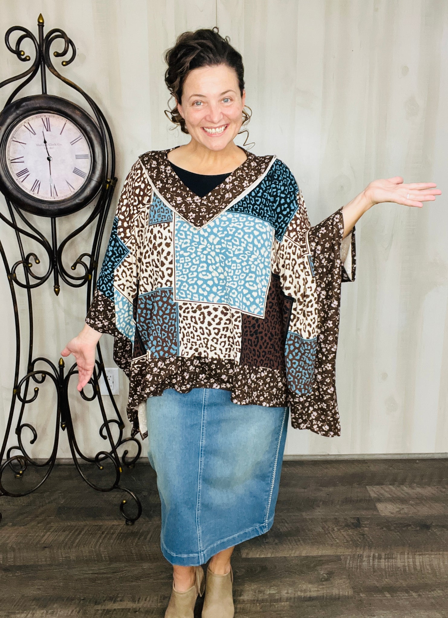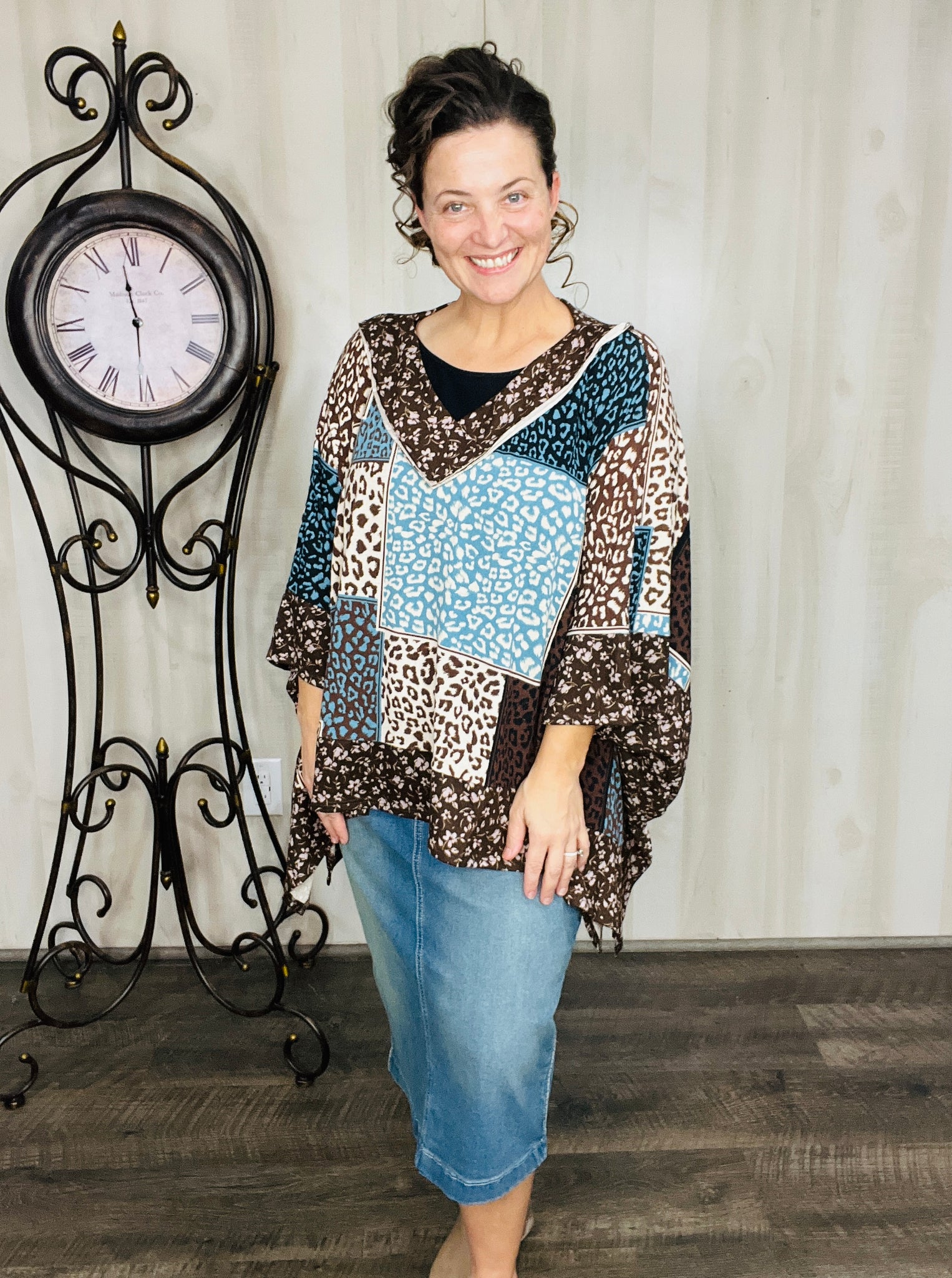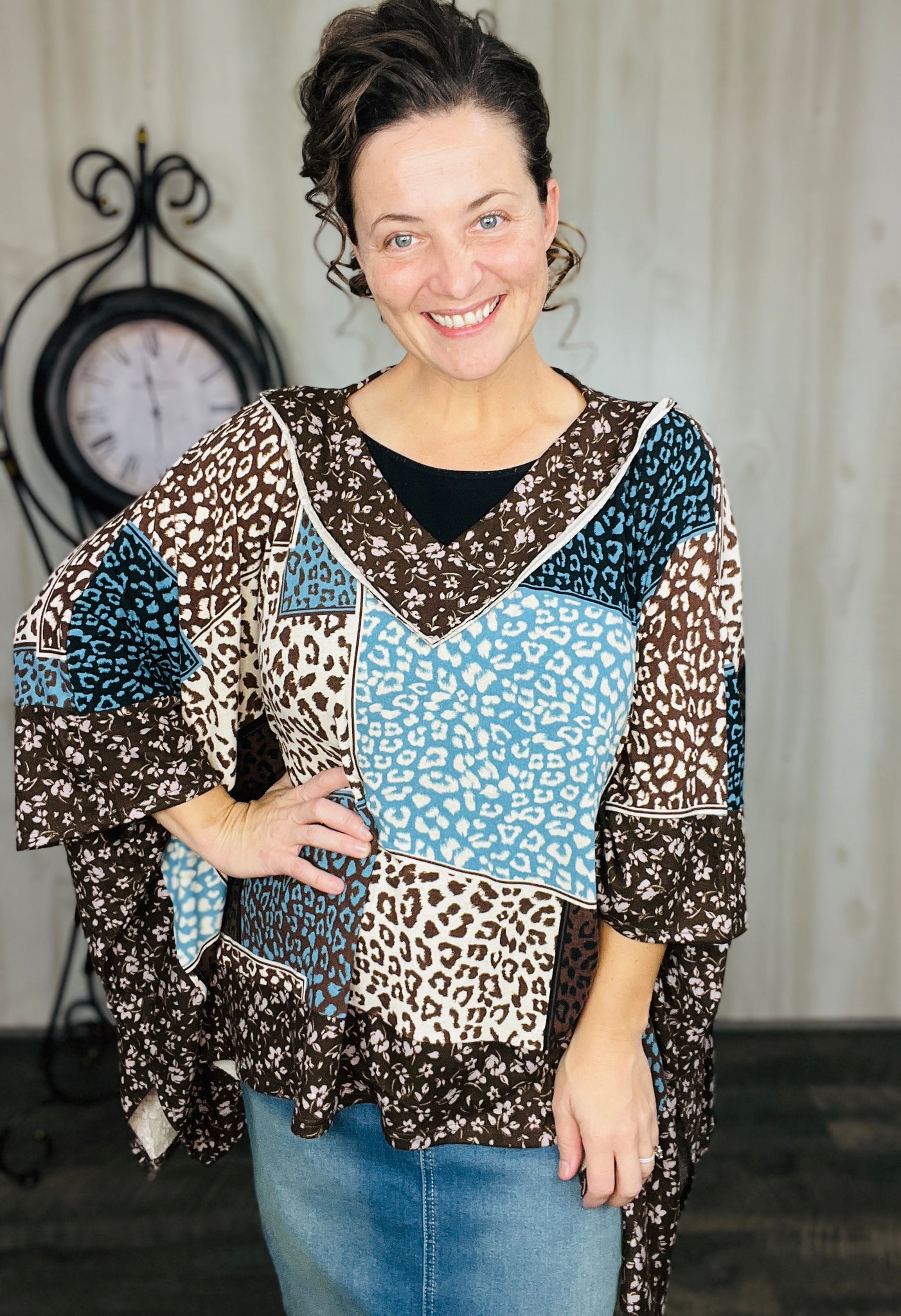 Teal Animal Print Poncho
